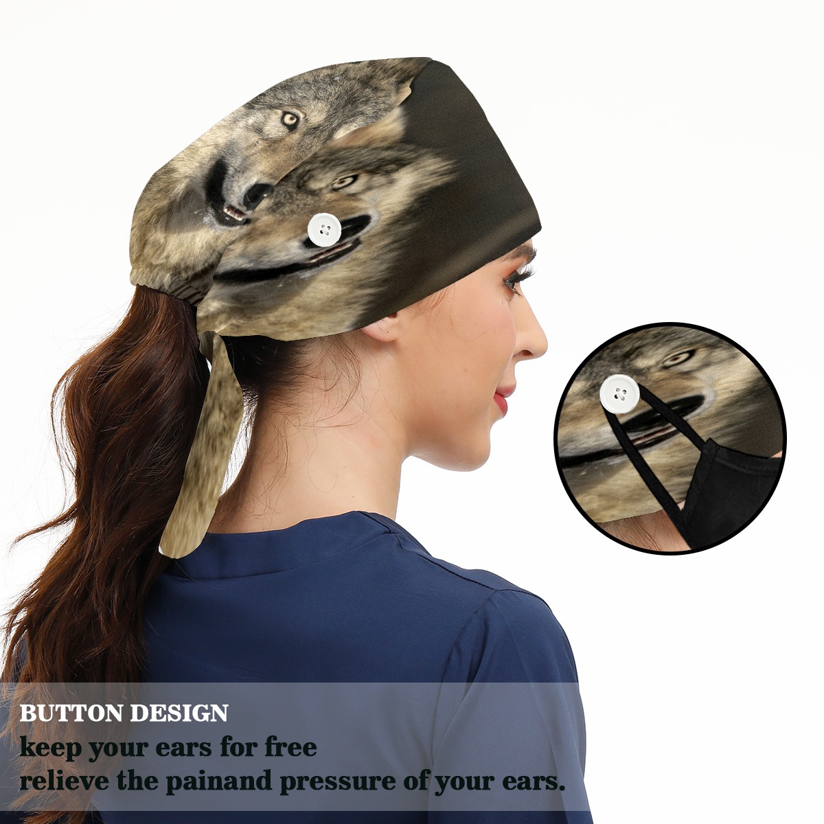 <p>Working cap with Sweatband and Button for Women Men</p><p>Material&nbsp;: 50% cotton+50% polyester</p><p>Size:&nbsp;One size fits most,&nbsp;suitable for both men and women.</p><p>Working Cap with Buttons Design:special&nbsp;design with buttons to protect ears for those who are wearing ma-sk. These new styles hats will allow you to put the straps around the buttons instead of your ears, make you feel more comfortable.</p><p>Sweat-absorbent towel cloth inside: Built-in&nbsp;100% cotton sweatband, keep the forehead clean after long time working.</p><p>Widely occasion: Widely used in beauty spa, house cleaning, cooking, sleeping, or for cos-play&nbsp;party.</p><p>Lovely pattern: lovely&nbsp;3D printed&nbsp;pattern,&nbsp;it's perfect for gift to you family&nbsp;and friends.</p>