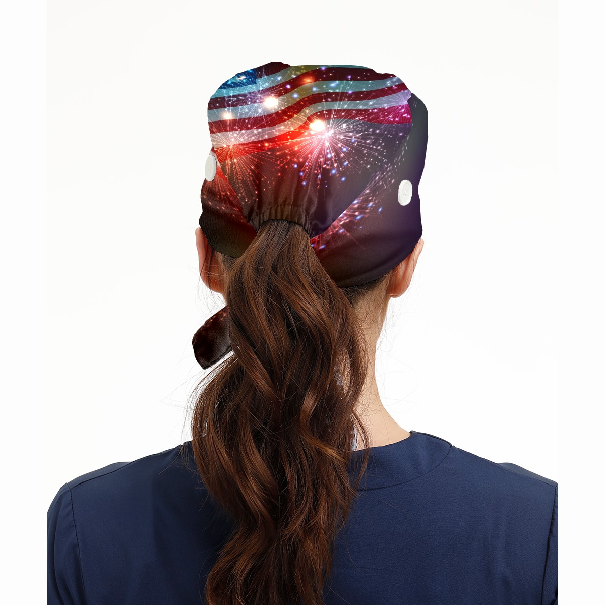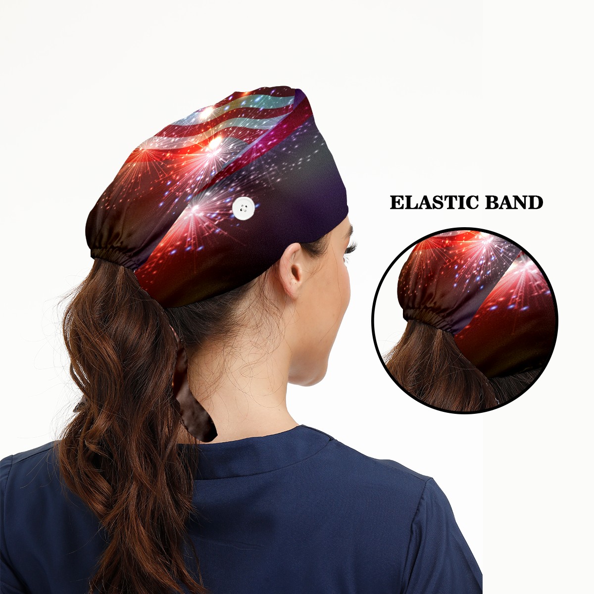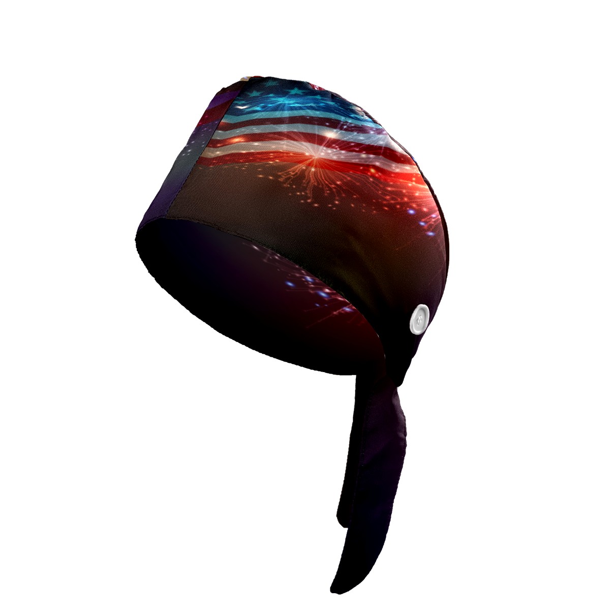 American Flag Firework 4Th Of July Working Cap Button and Sweatband Adjustable Elastic Head Cover Hair Tie Back Work Hats for Women Men