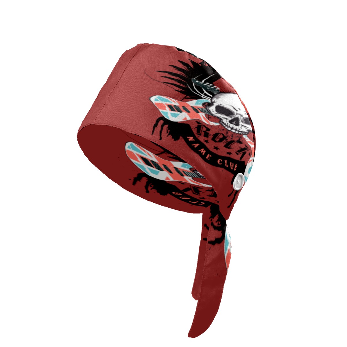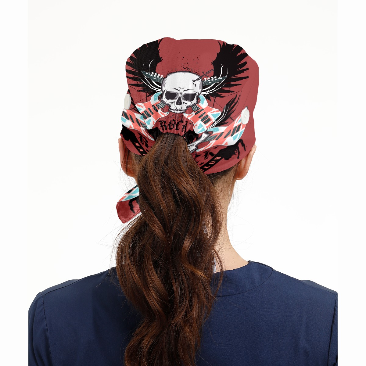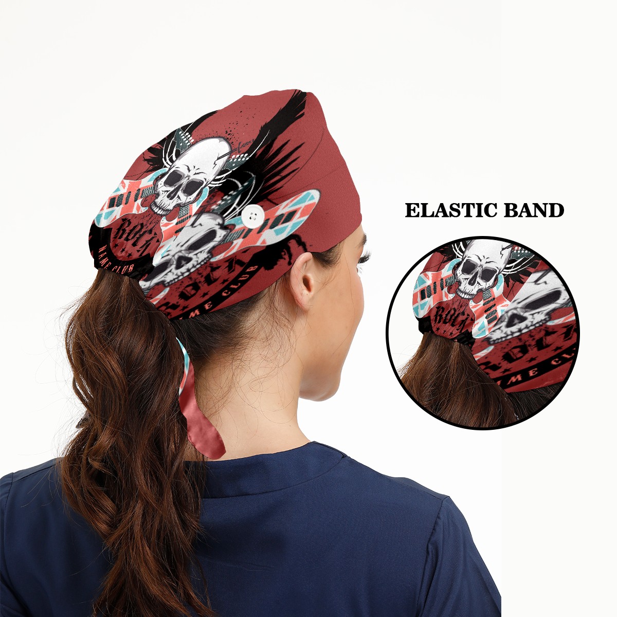 Musical Skull Rock Guitar Disig Working Cap Button and Sweatband Adjustable Elastic Head Cover Hair Tie Back Work Hats for Women Men