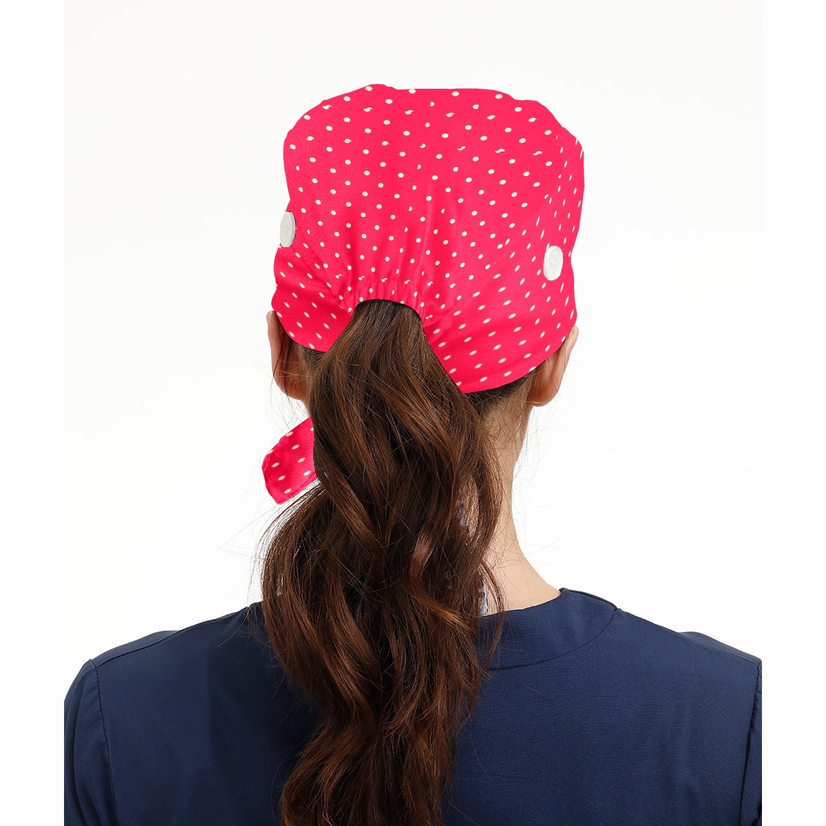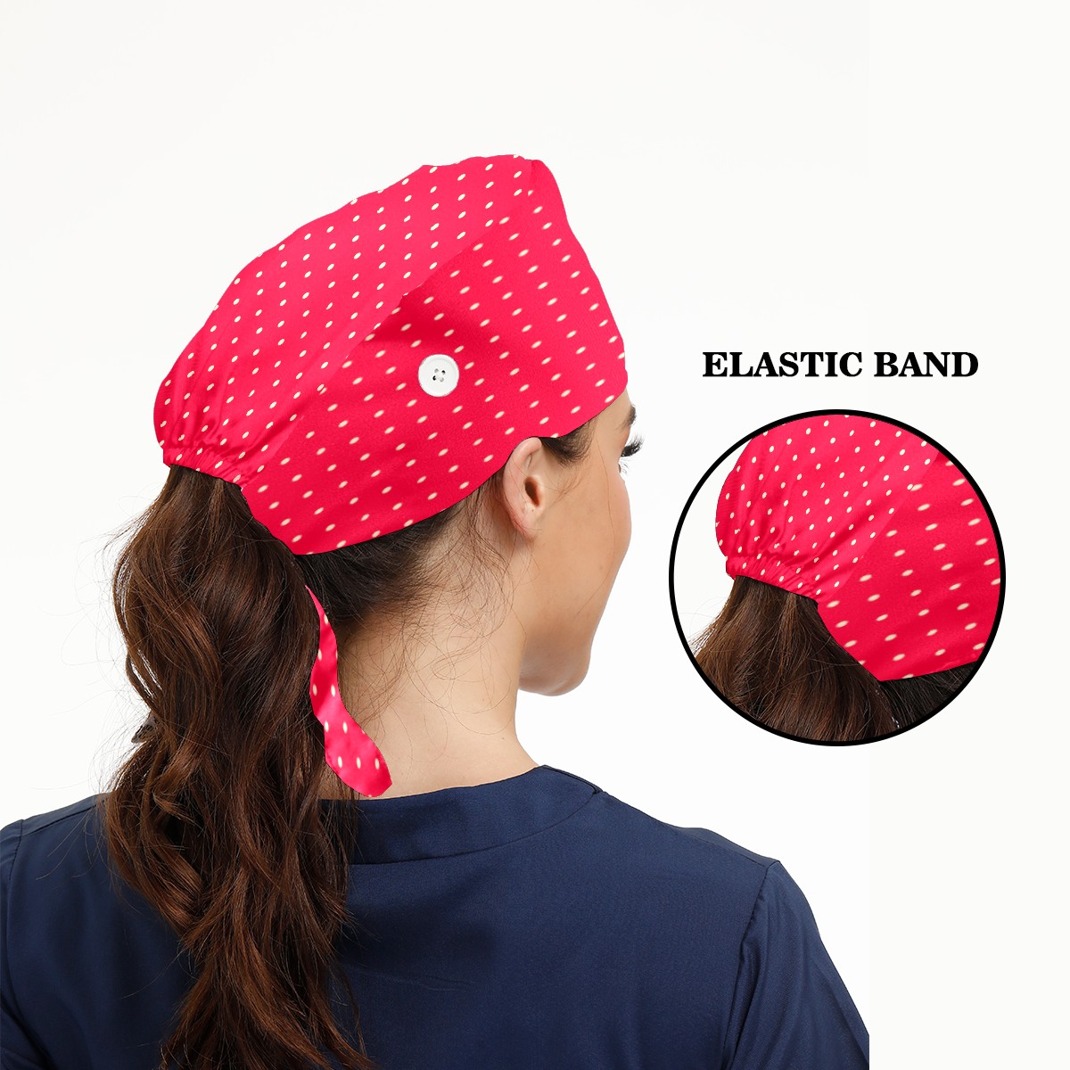 Reto Red White Polka Dot Working Cap Button and Sweatband Adjustable Elastic Head Cover Hair Tie Back Work Hats for Women Men
