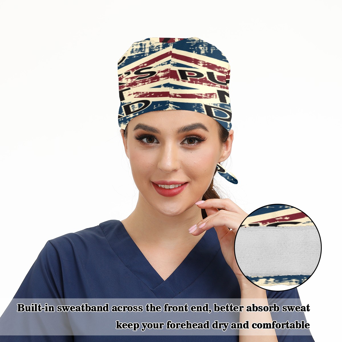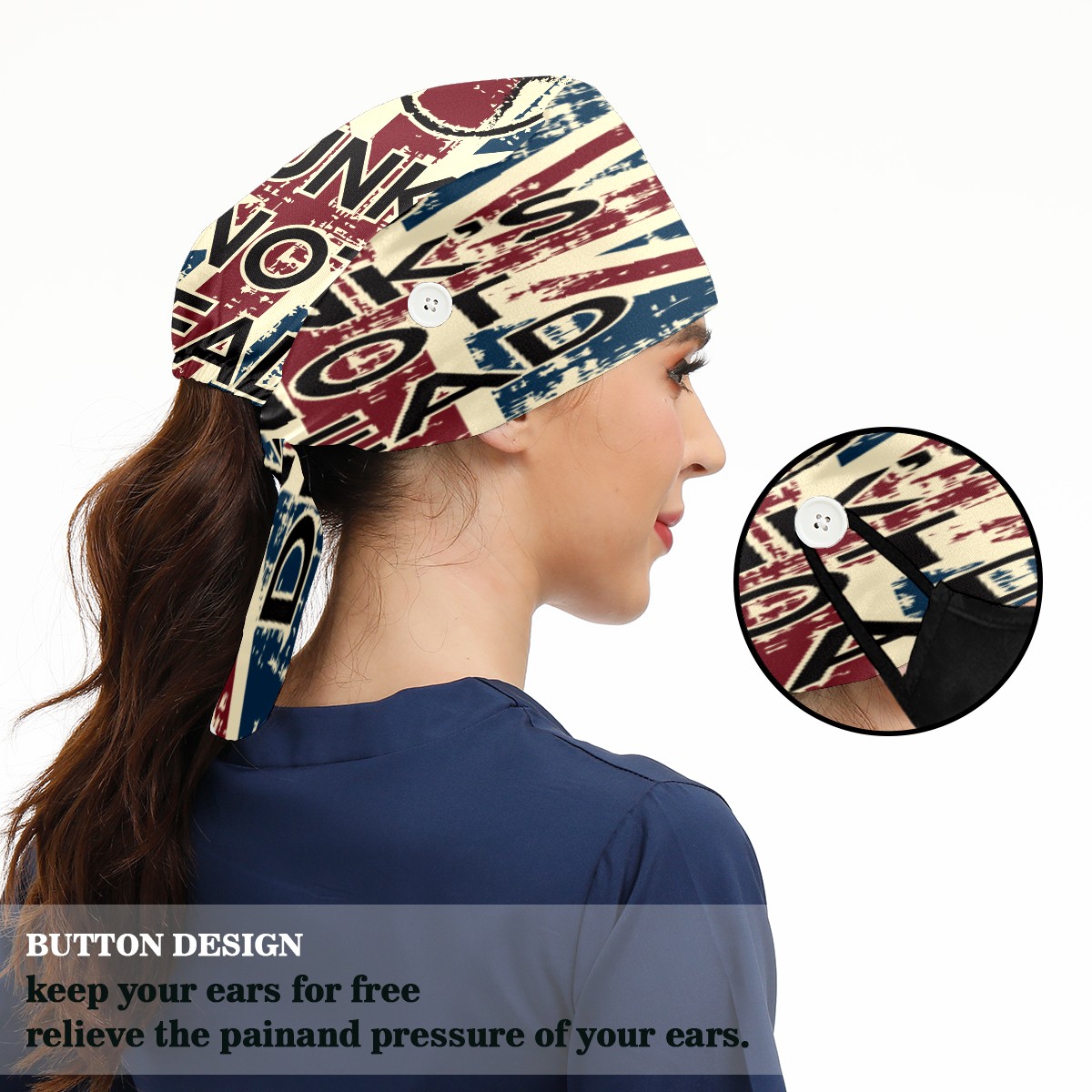 <p>Working cap with Sweatband and Button for Women Men</p><p>Material&nbsp;: 50% cotton+50% polyester</p><p>Size:&nbsp;One size fits most,&nbsp;suitable for both men and women.</p><p>Working Cap with Buttons Design:special&nbsp;design with buttons to protect ears for those who are wearing ma-sk. These new styles hats will allow you to put the straps around the buttons instead of your ears, make you feel more comfortable.</p><p>Sweat-absorbent towel cloth inside: Built-in&nbsp;100% cotton sweatband, keep the forehead clean after long time working.</p><p>Widely occasion: Widely used in beauty spa, house cleaning, cooking, sleeping, or for cos-play&nbsp;party.</p><p>Lovely pattern: lovely&nbsp;3D printed&nbsp;pattern,&nbsp;it's perfect for gift to you family&nbsp;and friends.</p>