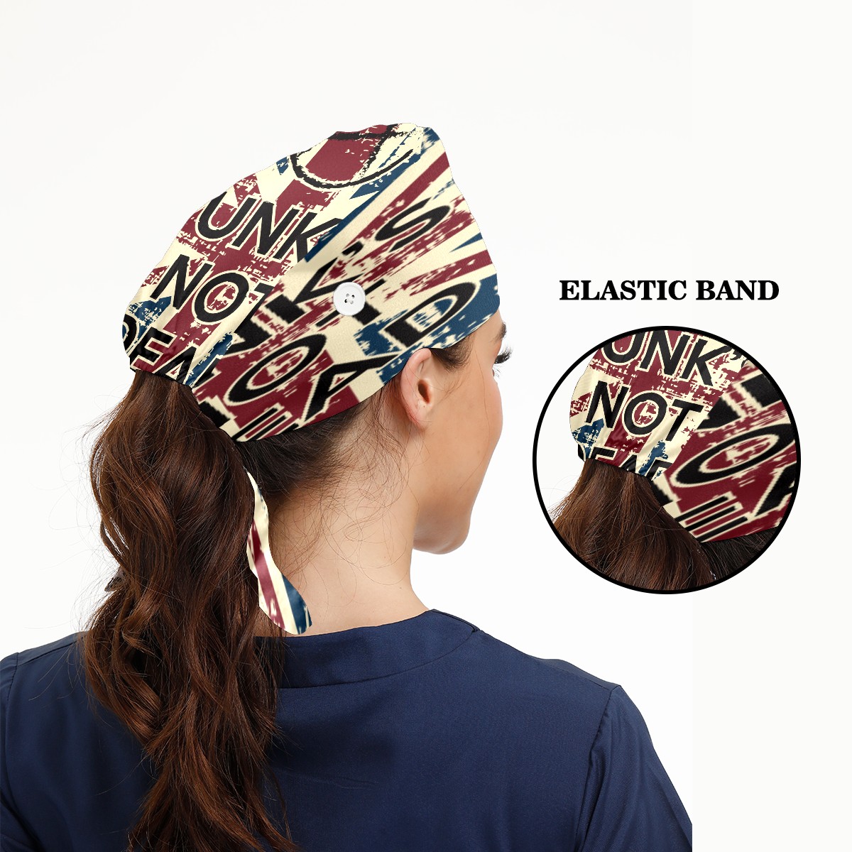 Punk Is Not Dead Retro UK England Flag Working Cap Button and Sweatband Adjustable Elastic Head Cover Hair Tie Back Work Hats for Women Men