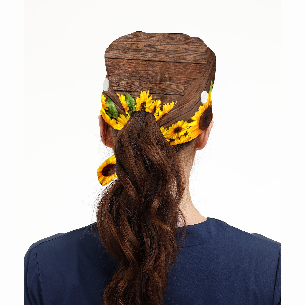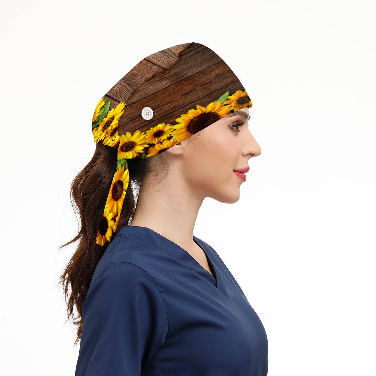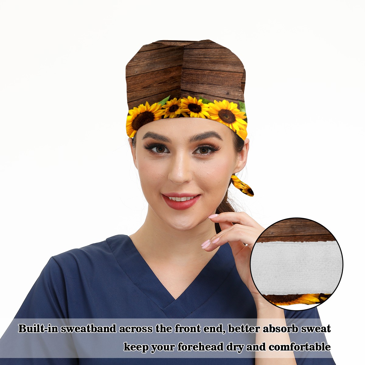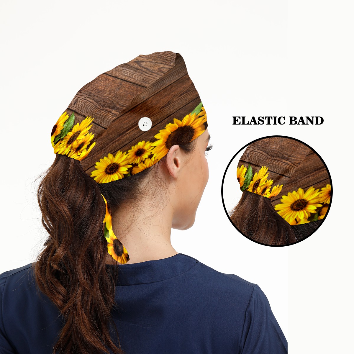 Sunflower Blooming Vintage Wood Working Cap Button and Sweatband Adjustable Elastic Head Cover Hair Tie Back Work Hats for Women Men