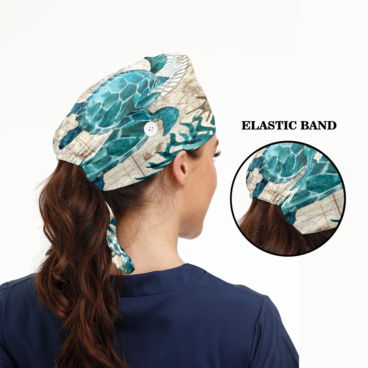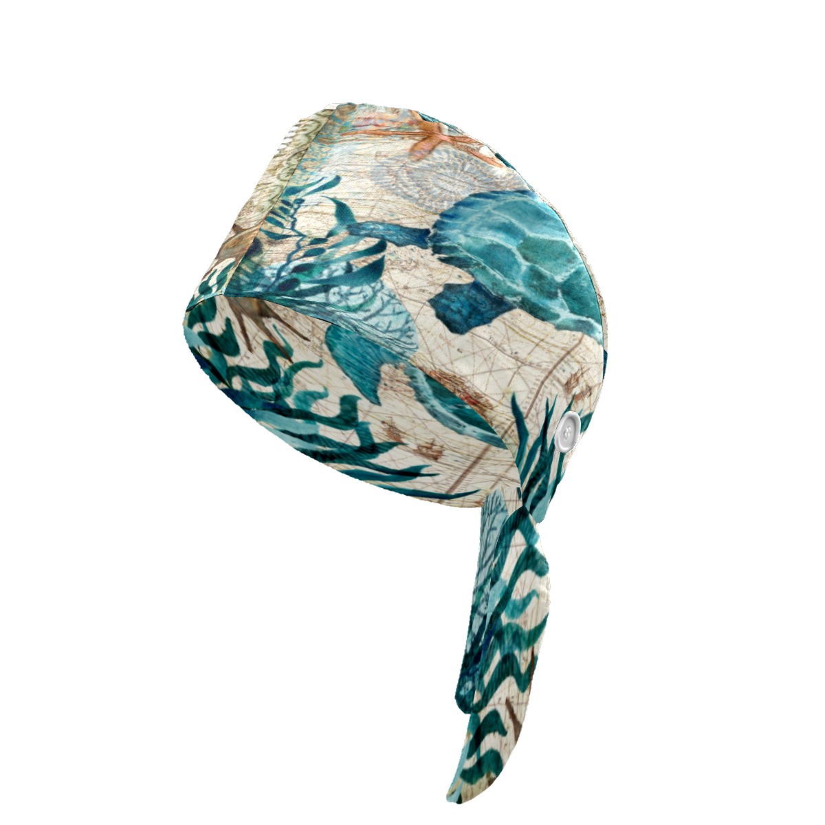 Retro Nautical Sea Turtle Working Cap Button and Sweatband Adjustable Elastic Head Cover Hair Tie Back Work Hats for Women Men