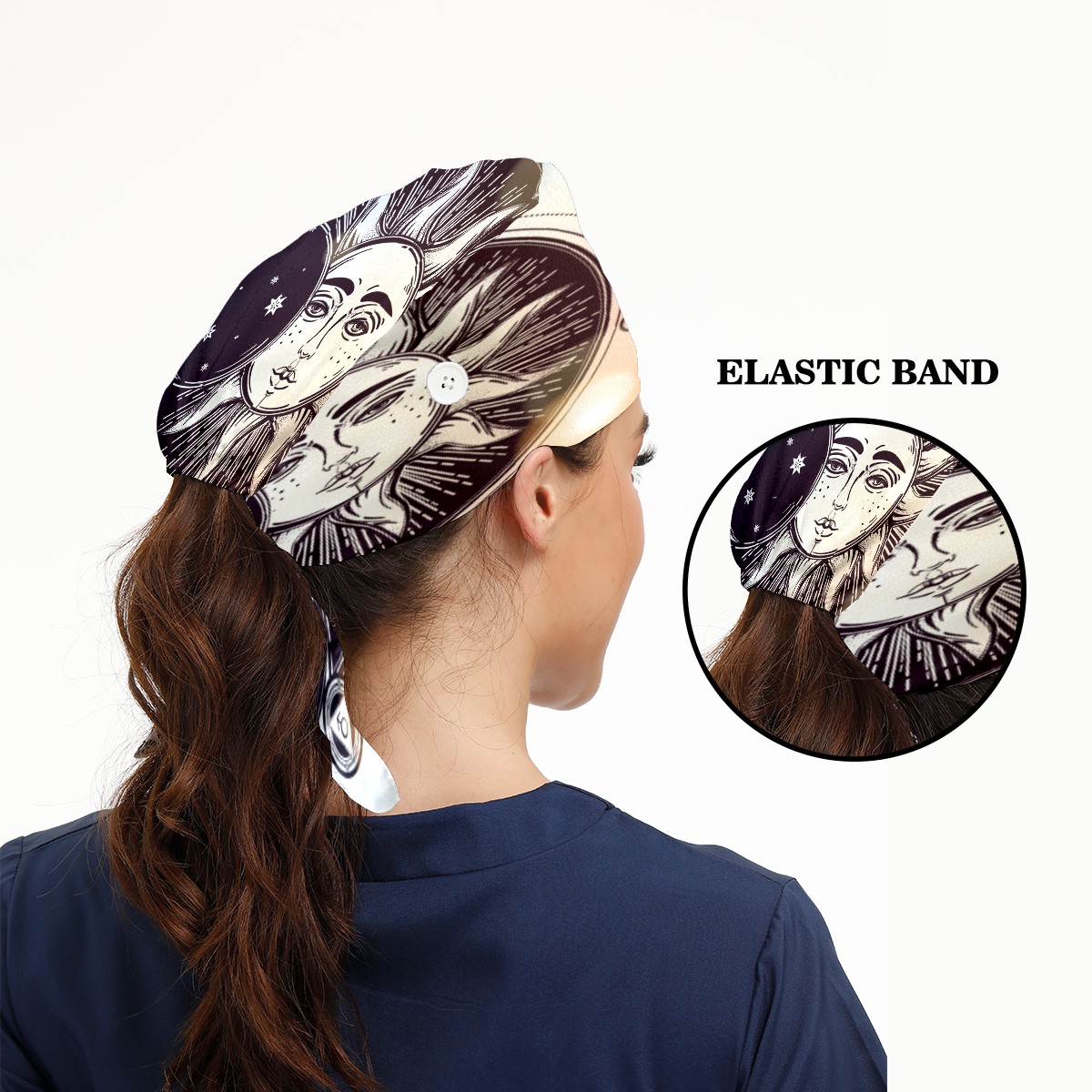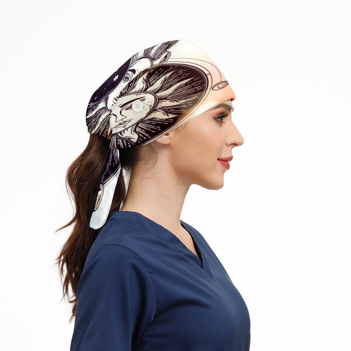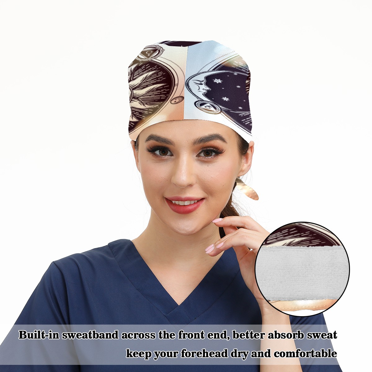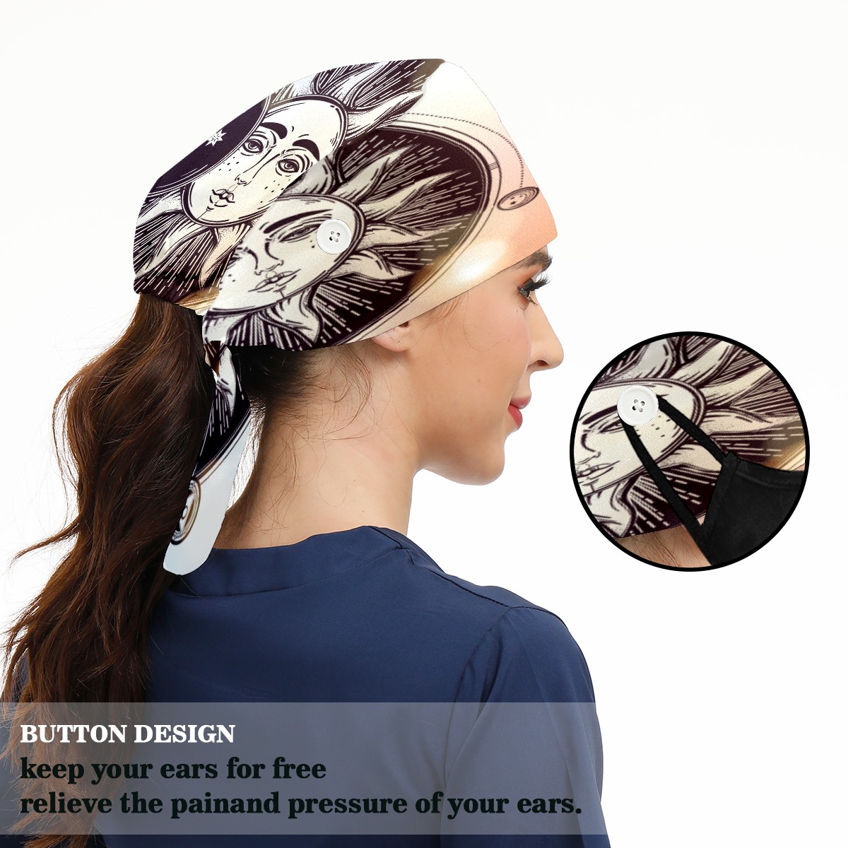 Retro Sun And Moon Working Cap Button and Sweatband Adjustable Elastic Head Cover Hair Tie Back Work Hats for Women Men