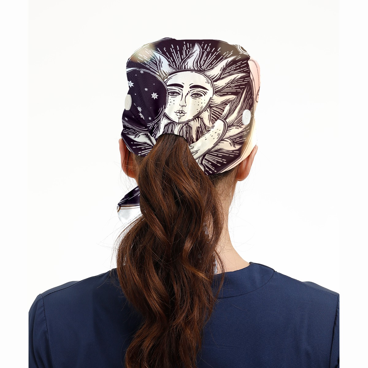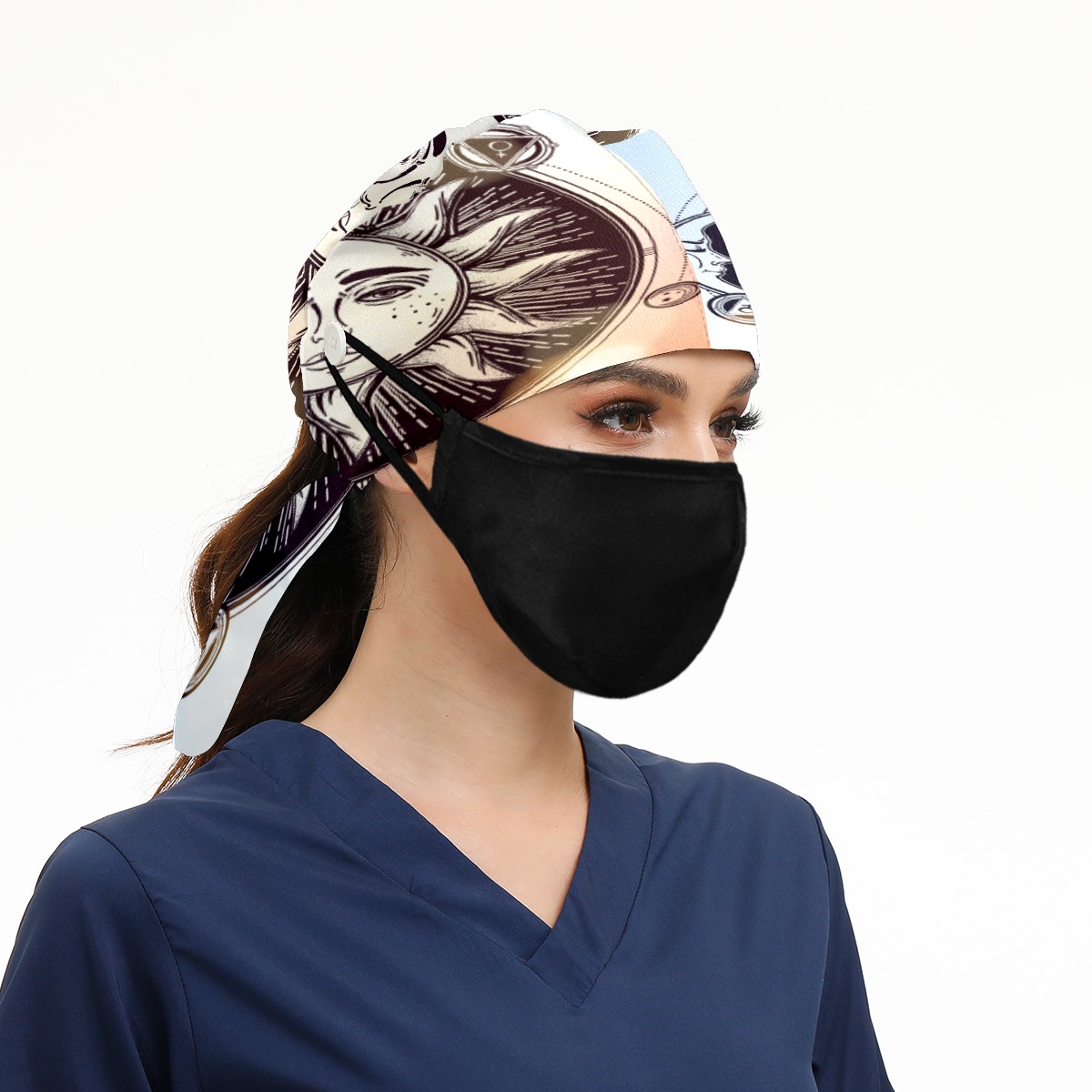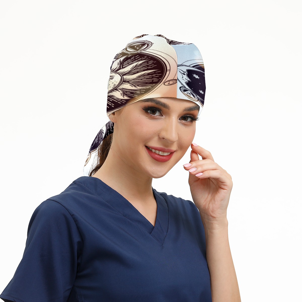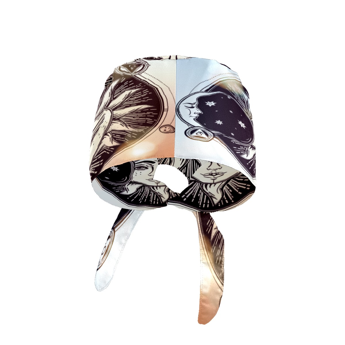 Retro Sun And Moon Working Cap Button and Sweatband Adjustable Elastic Head Cover Hair Tie Back Work Hats for Women Men