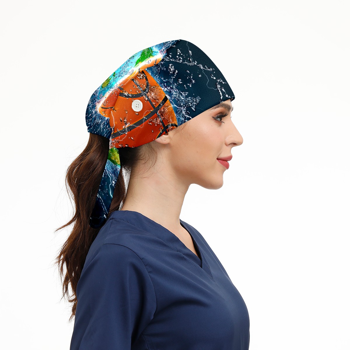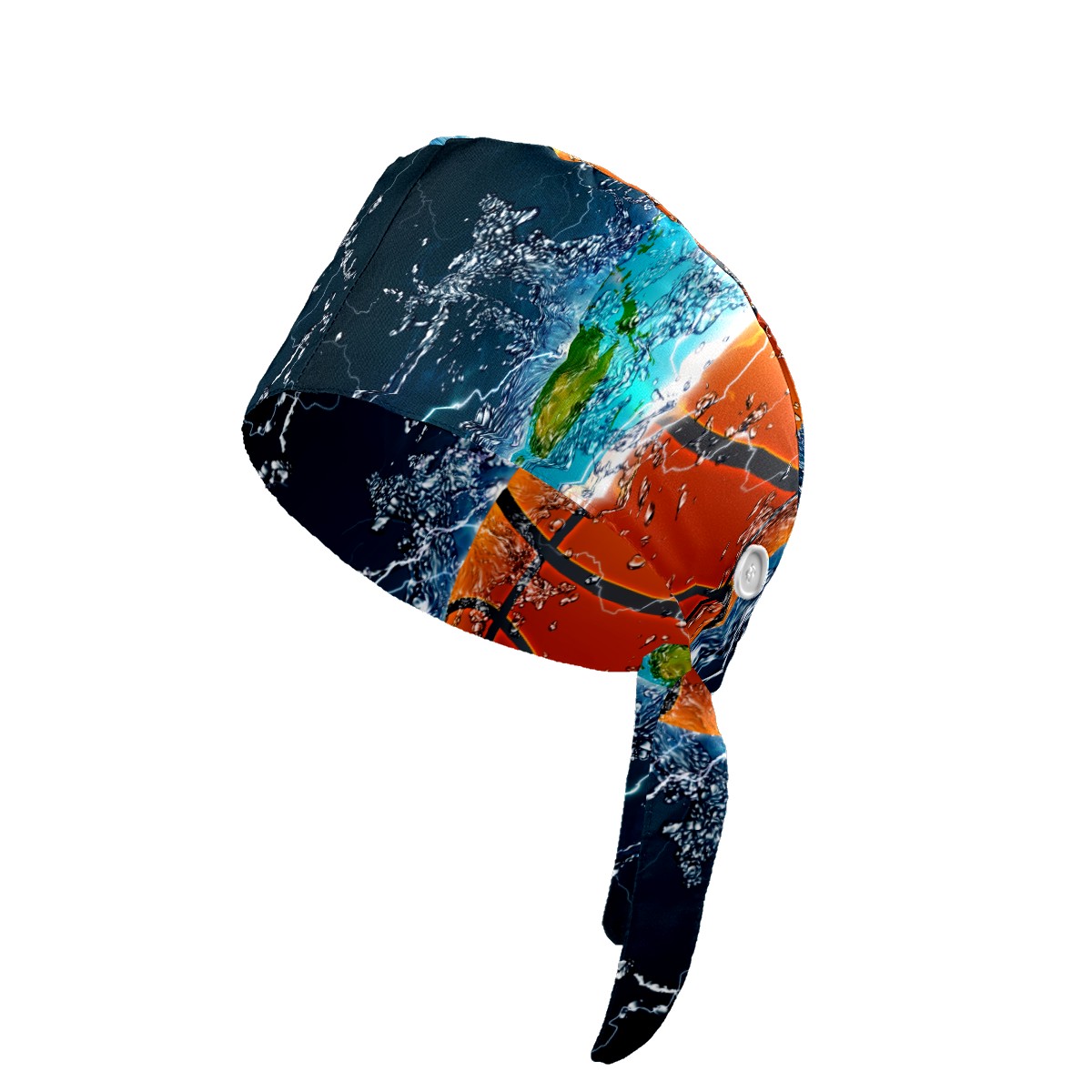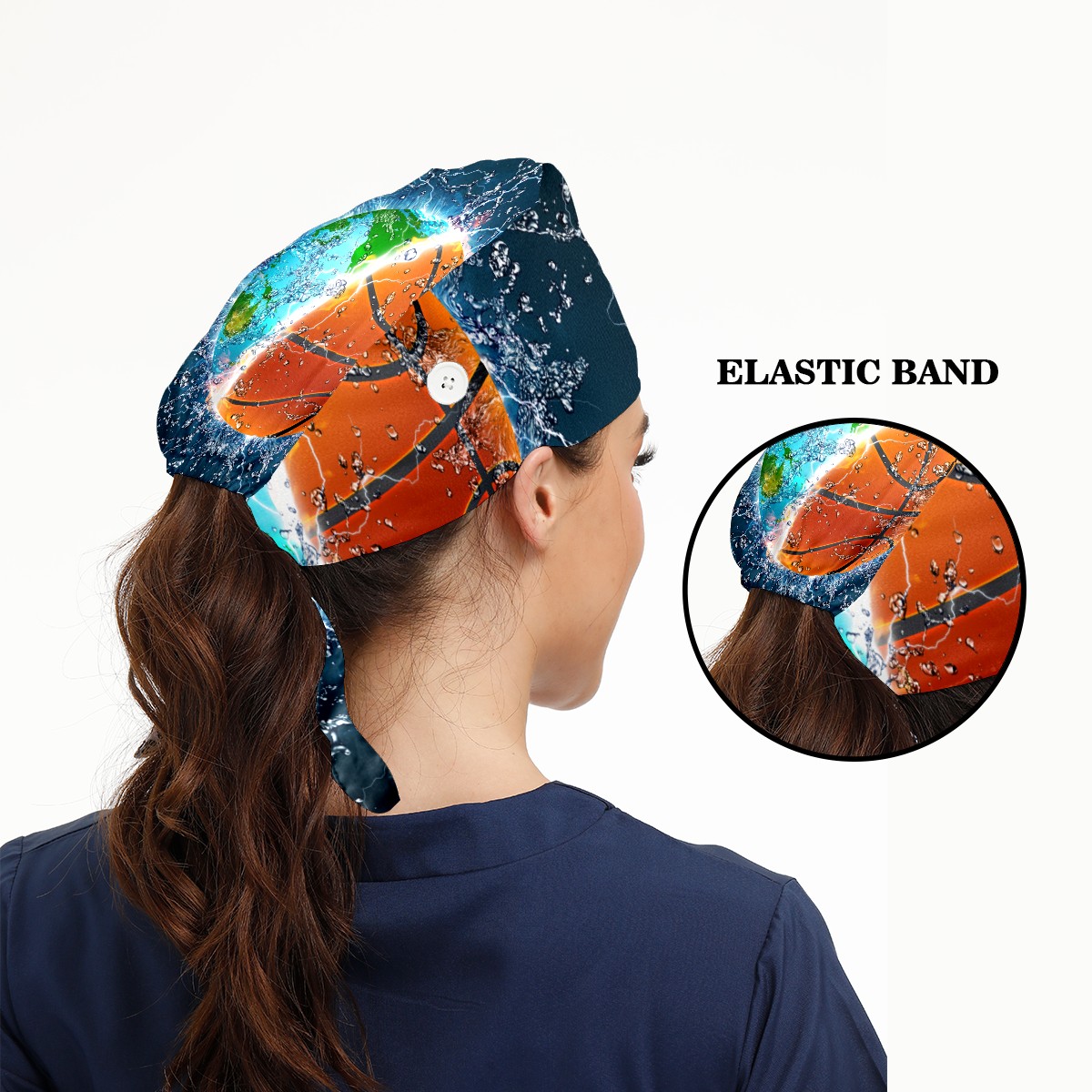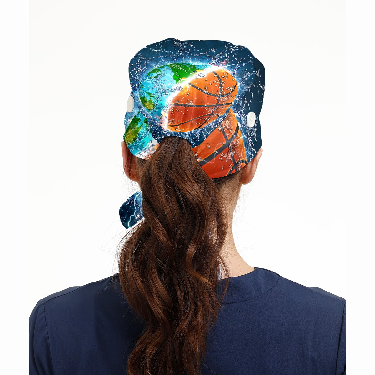 Water Basketball Map Earth Working Cap Button and Sweatband Adjustable Elastic Head Cover Hair Tie Back Work Hats for Women Men