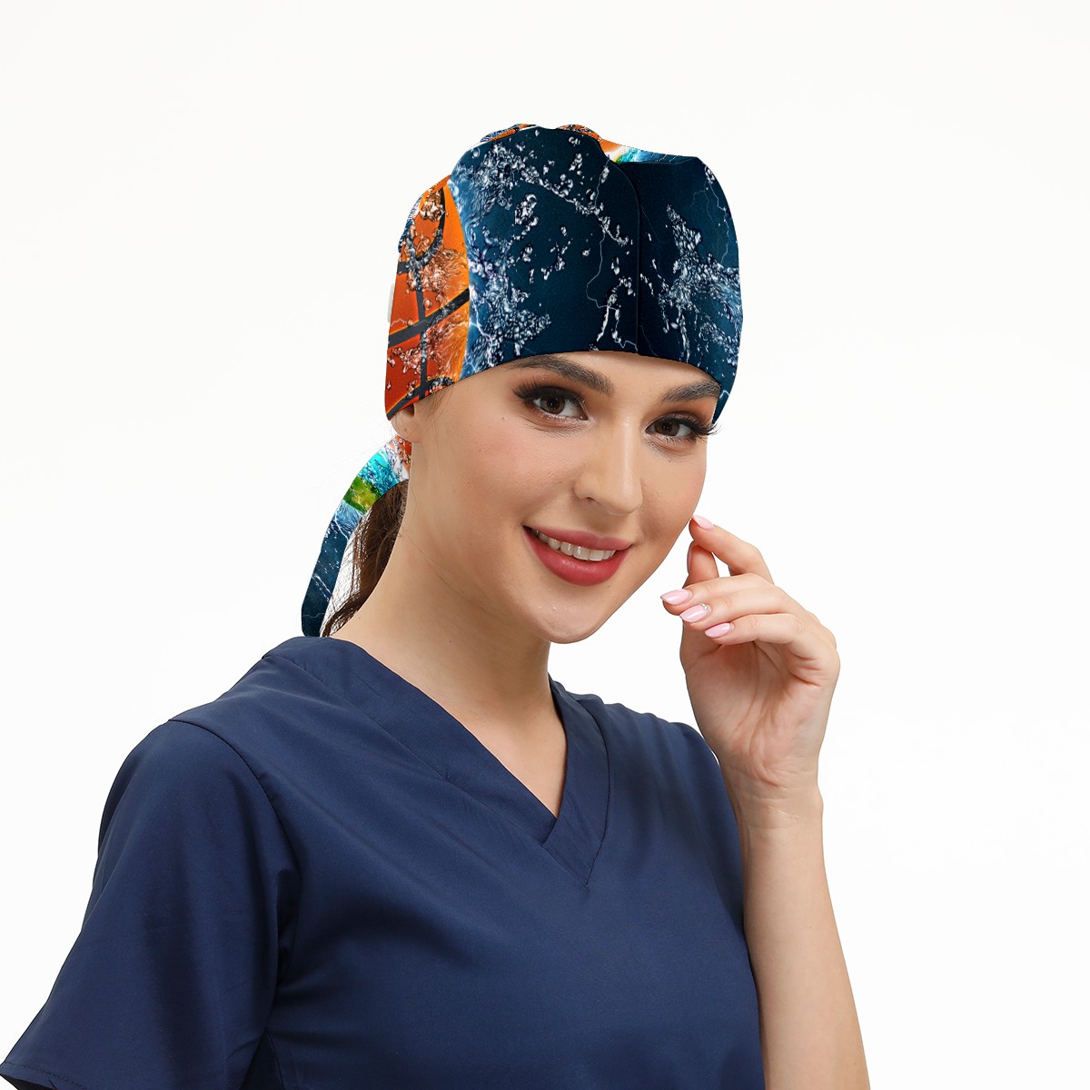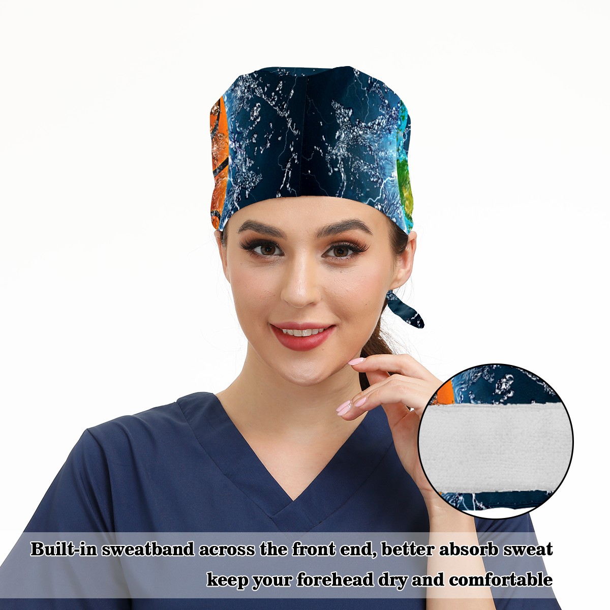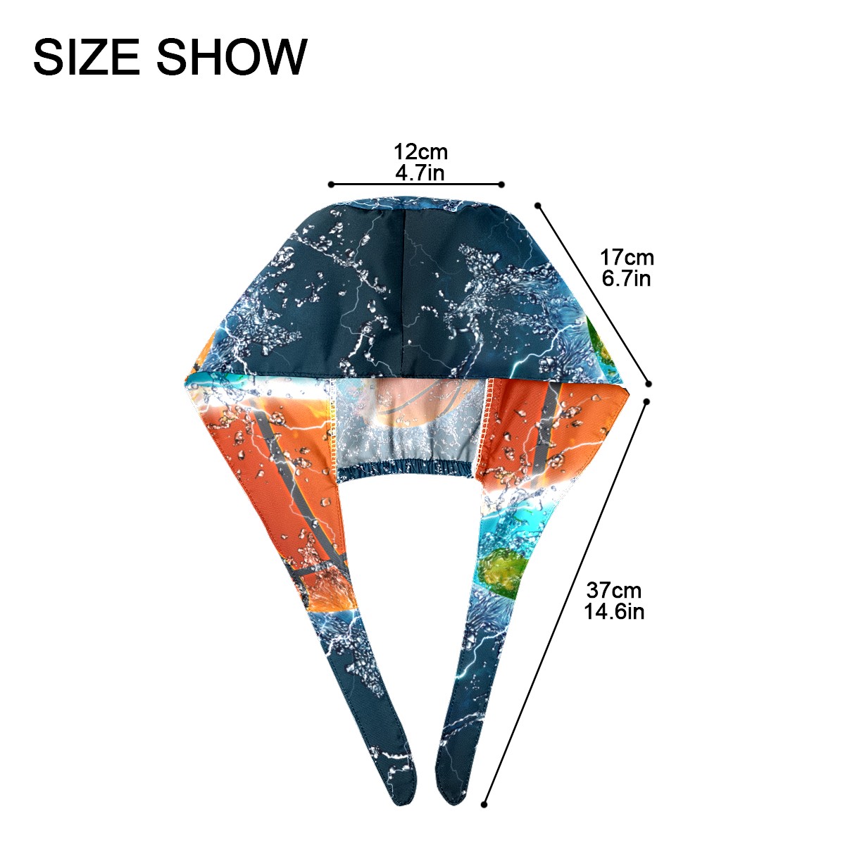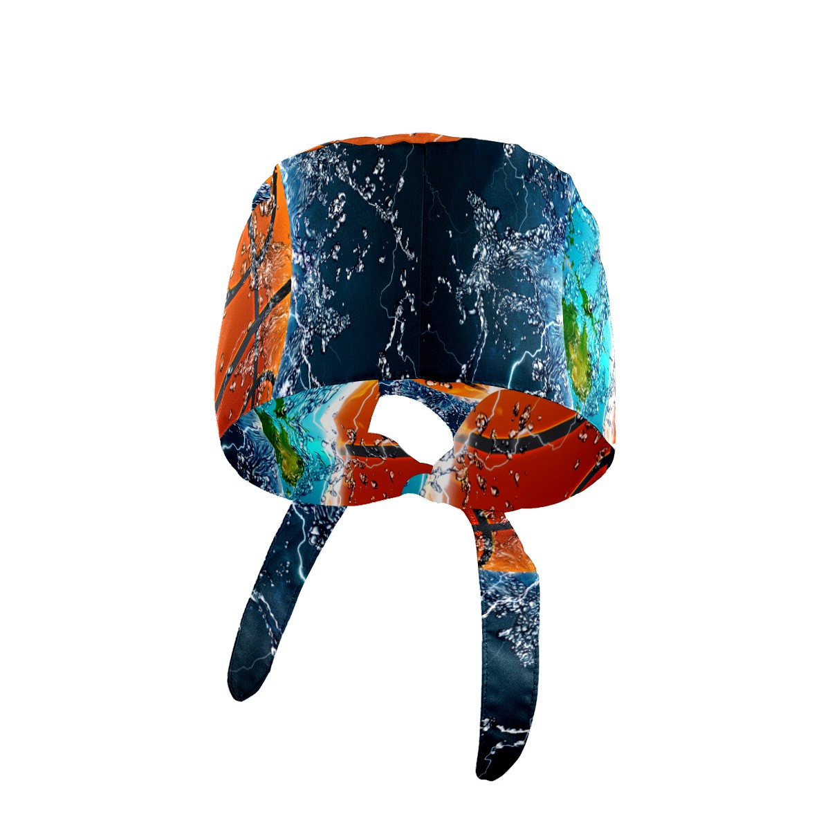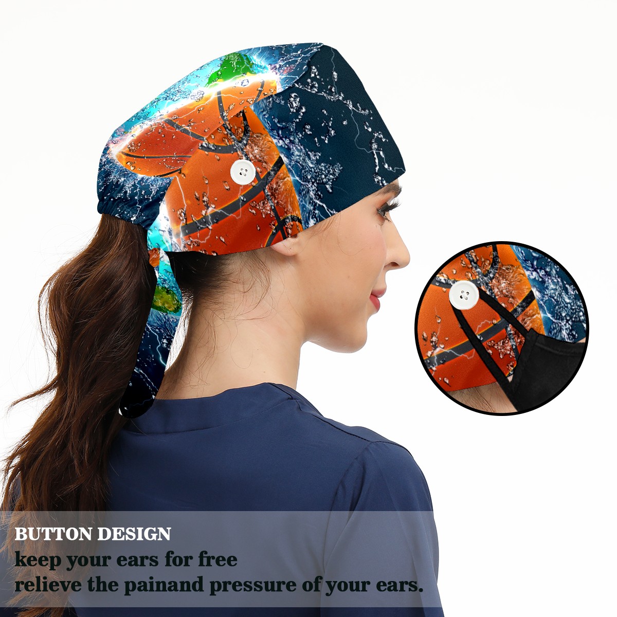 Water Basketball Map Earth Working Cap Button and Sweatband Adjustable Elastic Head Cover Hair Tie Back Work Hats for Women Men