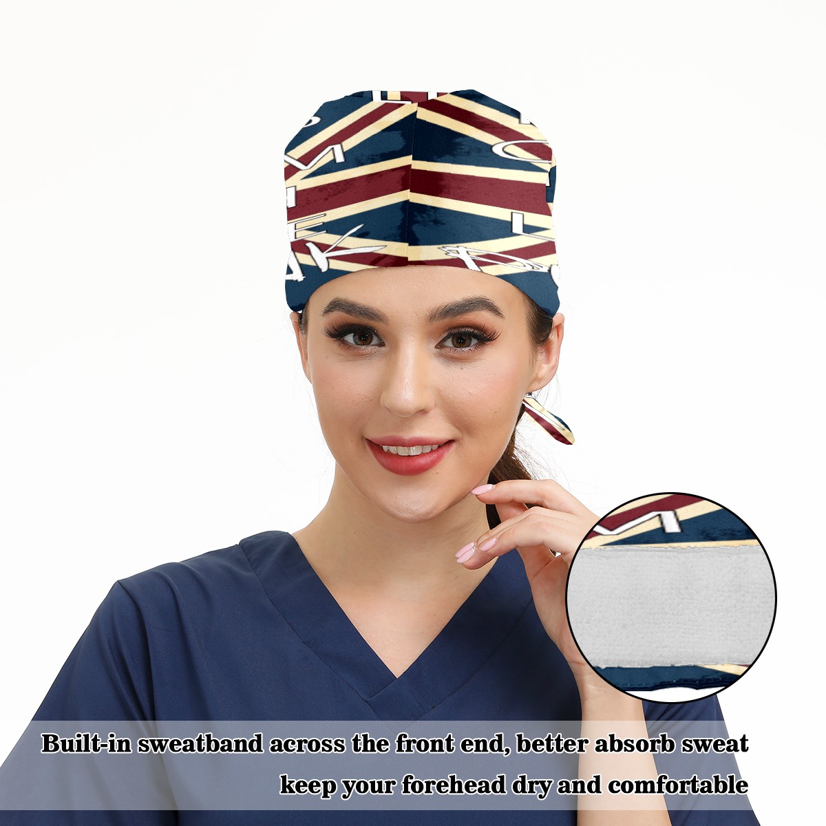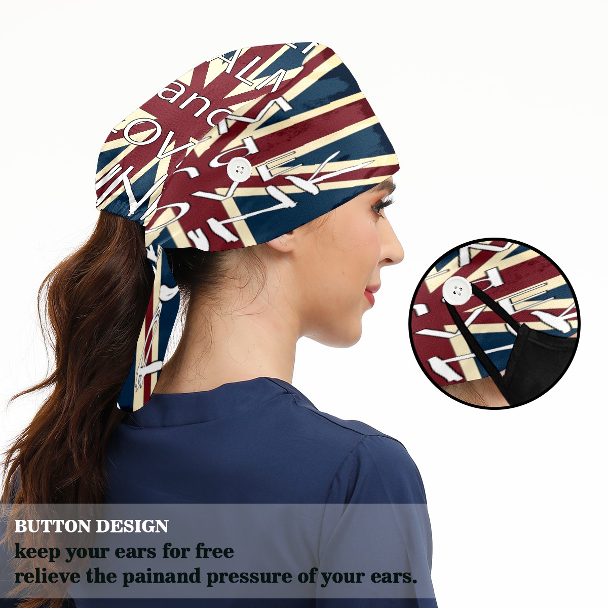 <p>Working cap with Sweatband and Button for Women Men</p><p>Material&nbsp;: 50% cotton+50% polyester</p><p>Size:&nbsp;One size fits most,&nbsp;suitable for both men and women.</p><p>Working Cap with Buttons Design:special&nbsp;design with buttons to protect ears for those who are wearing ma-sk. These new styles hats will allow you to put the straps around the buttons instead of your ears, make you feel more comfortable.</p><p>Sweat-absorbent towel cloth inside: Built-in&nbsp;100% cotton sweatband, keep the forehead clean after long time working.</p><p>Widely occasion: Widely used in beauty spa, house cleaning, cooking, sleeping, or for cos-play&nbsp;party.</p><p>Lovely pattern: lovely&nbsp;3D printed&nbsp;pattern,&nbsp;it's perfect for gift to you family&nbsp;and friends.</p>