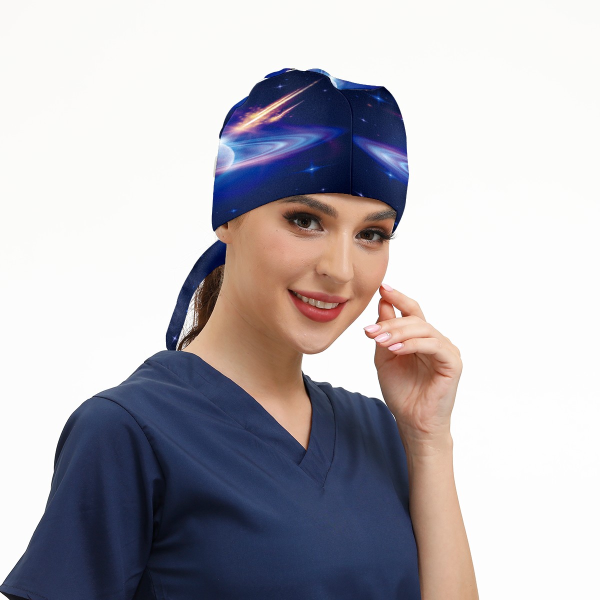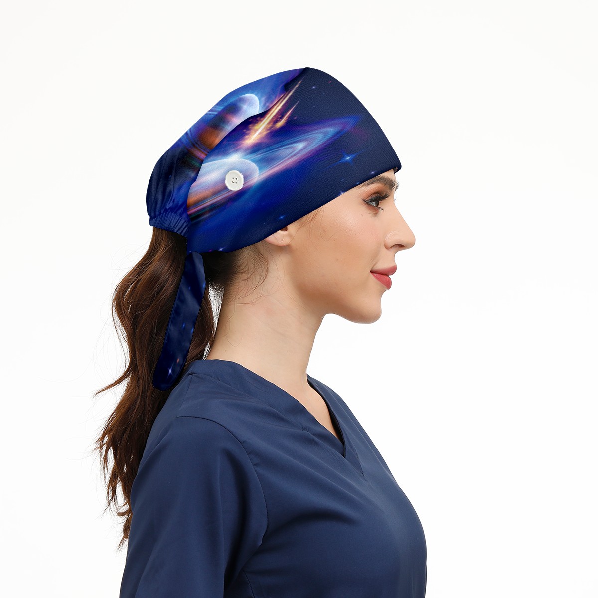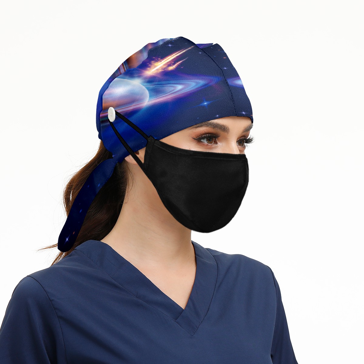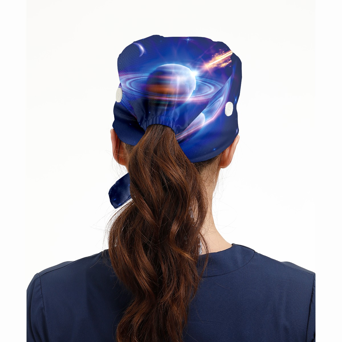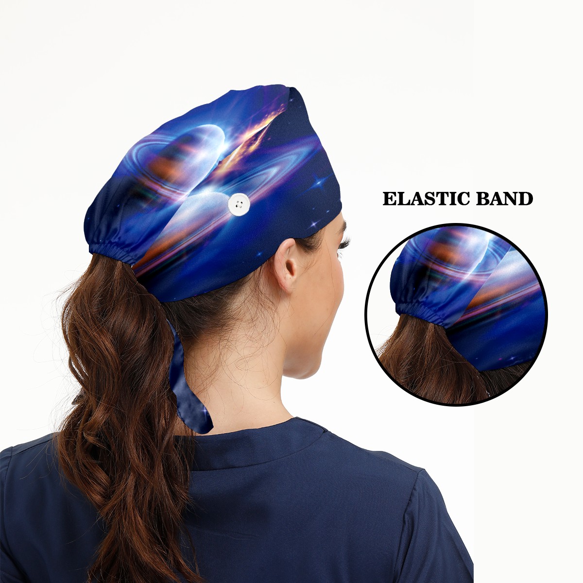 Space Starry Sky Galaxy Planet Working Cap Button and Sweatband Adjustable Elastic Head Cover Hair Tie Back Work Hats for Women Men