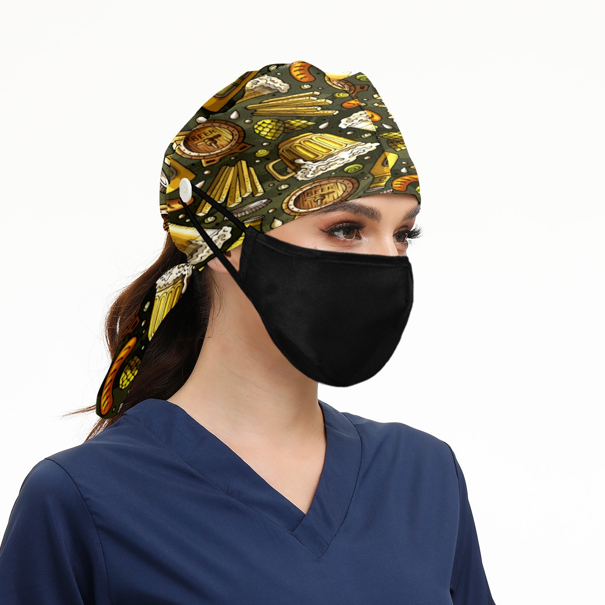 <p>Working cap with Sweatband and Button for Women Men</p><p>Material&nbsp;: 50% cotton+50% polyester</p><p>Size:&nbsp;One size fits most,&nbsp;suitable for both men and women.</p><p>Working Cap with Buttons Design:special&nbsp;design with buttons to protect ears for those who are wearing ma-sk. These new styles hats will allow you to put the straps around the buttons instead of your ears, make you feel more comfortable.</p><p>Sweat-absorbent towel cloth inside: Built-in&nbsp;100% cotton sweatband, keep the forehead clean after long time working.</p><p>Widely occasion: Widely used in beauty spa, house cleaning, cooking, sleeping, or for cos-play&nbsp;party.</p><p>Lovely pattern: lovely&nbsp;3D printed&nbsp;pattern,&nbsp;it's perfect for gift to you family&nbsp;and friends.</p>