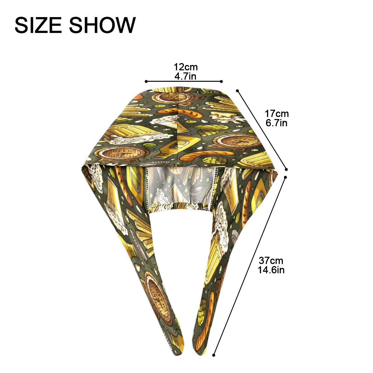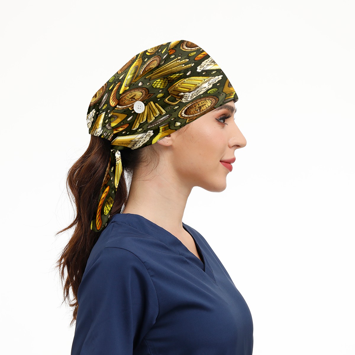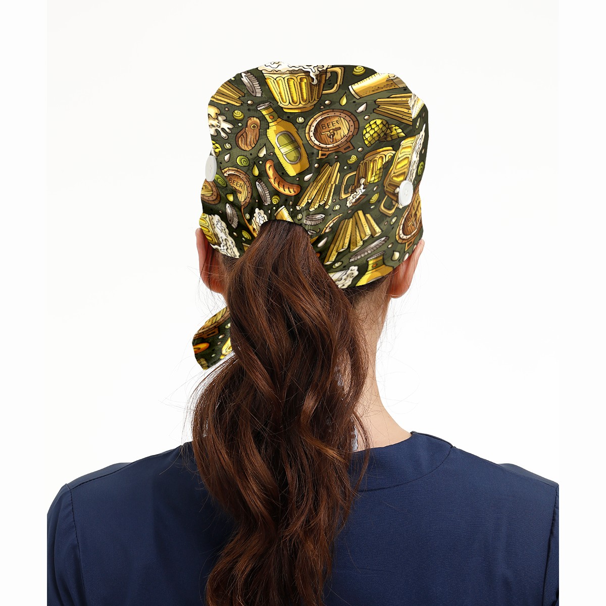 Summer Beer Print Working Cap Button and Sweatband Adjustable Elastic Head Cover Hair Tie Back Work Hats for Women Men