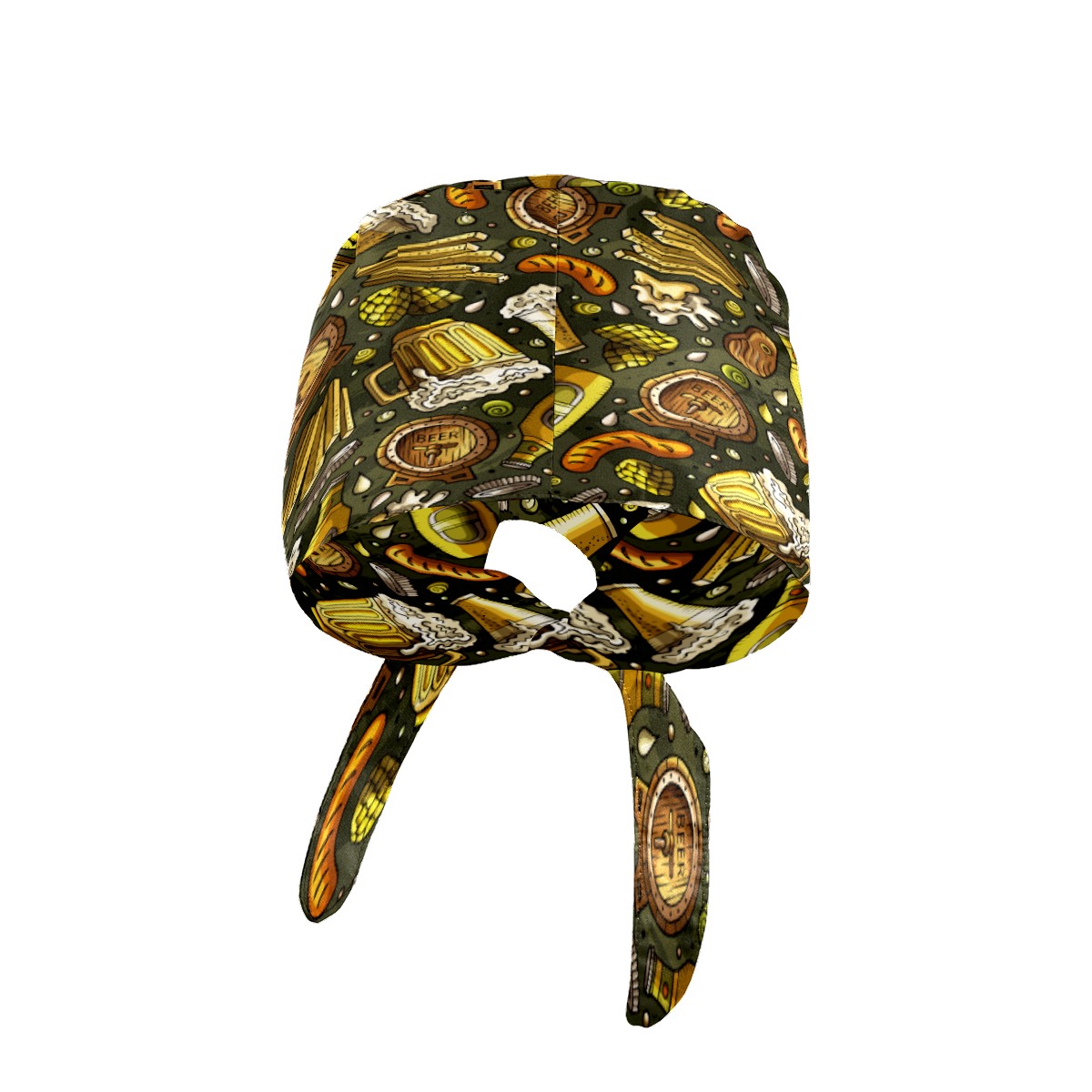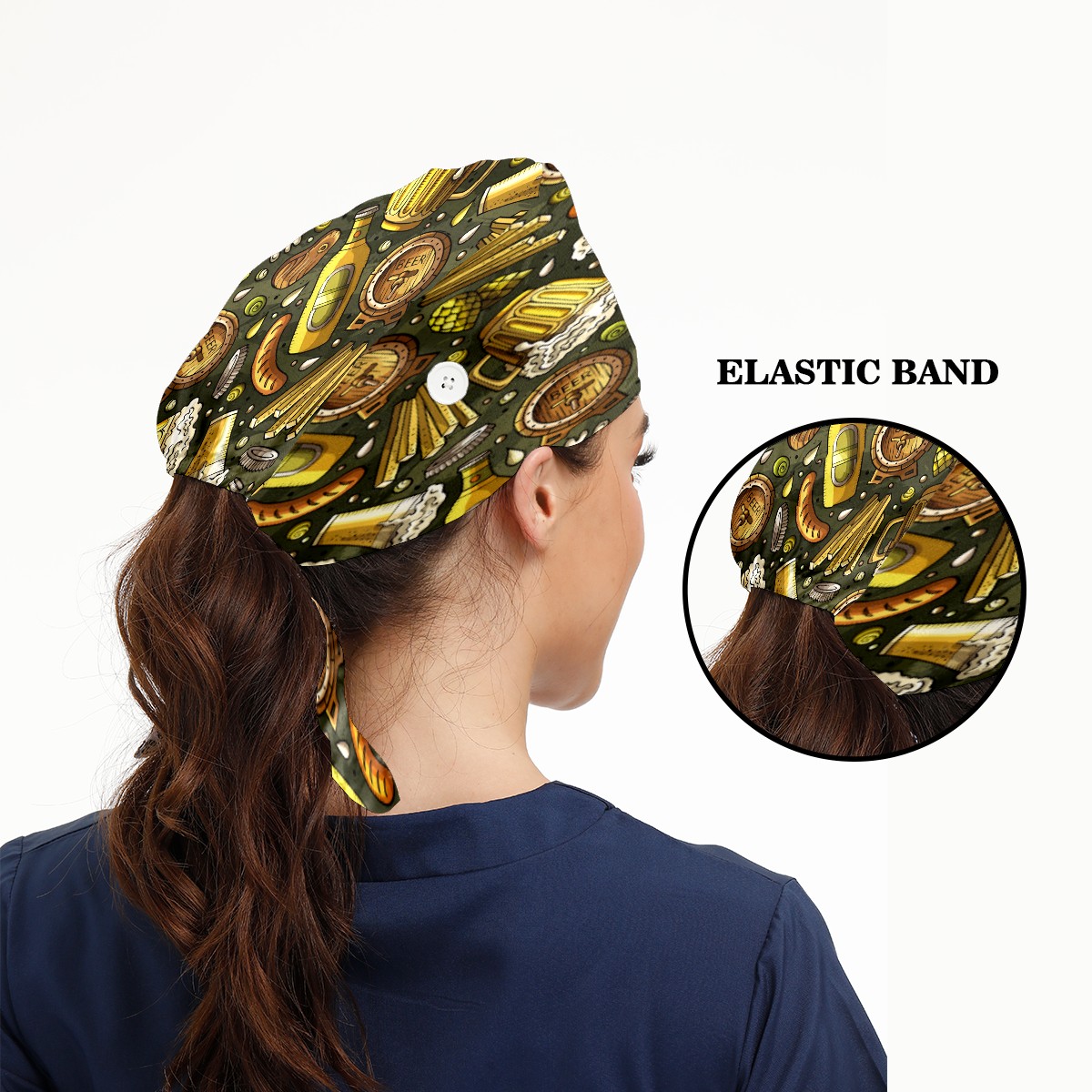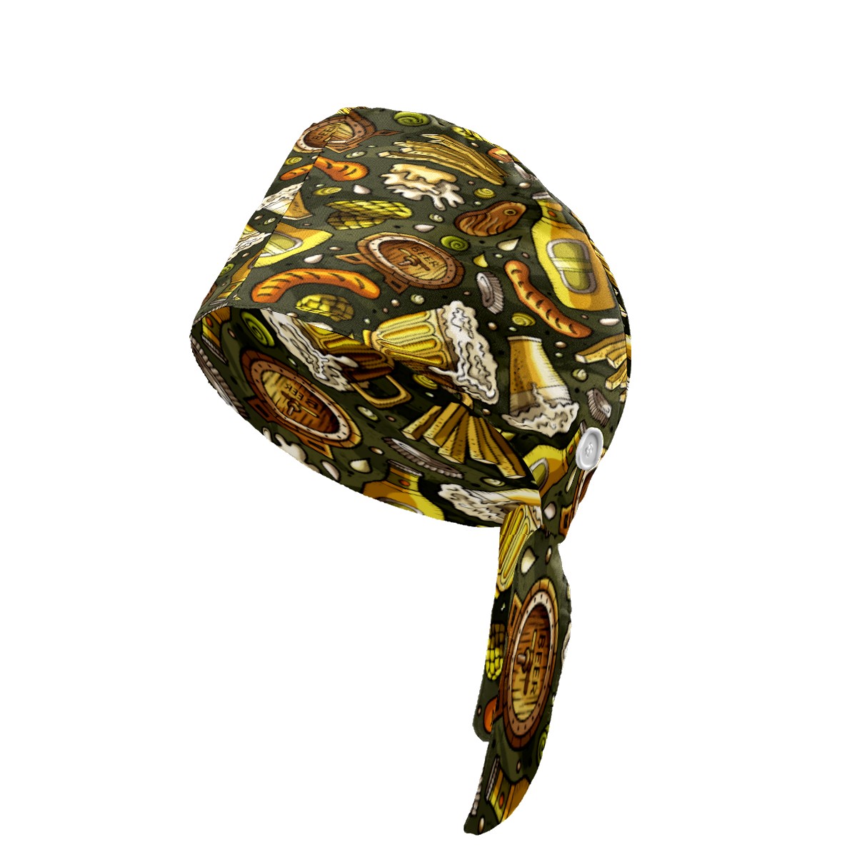 Summer Beer Print Working Cap Button and Sweatband Adjustable Elastic Head Cover Hair Tie Back Work Hats for Women Men