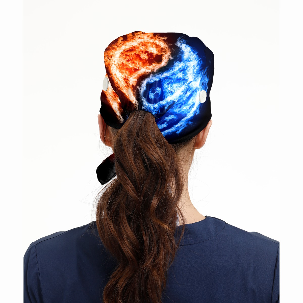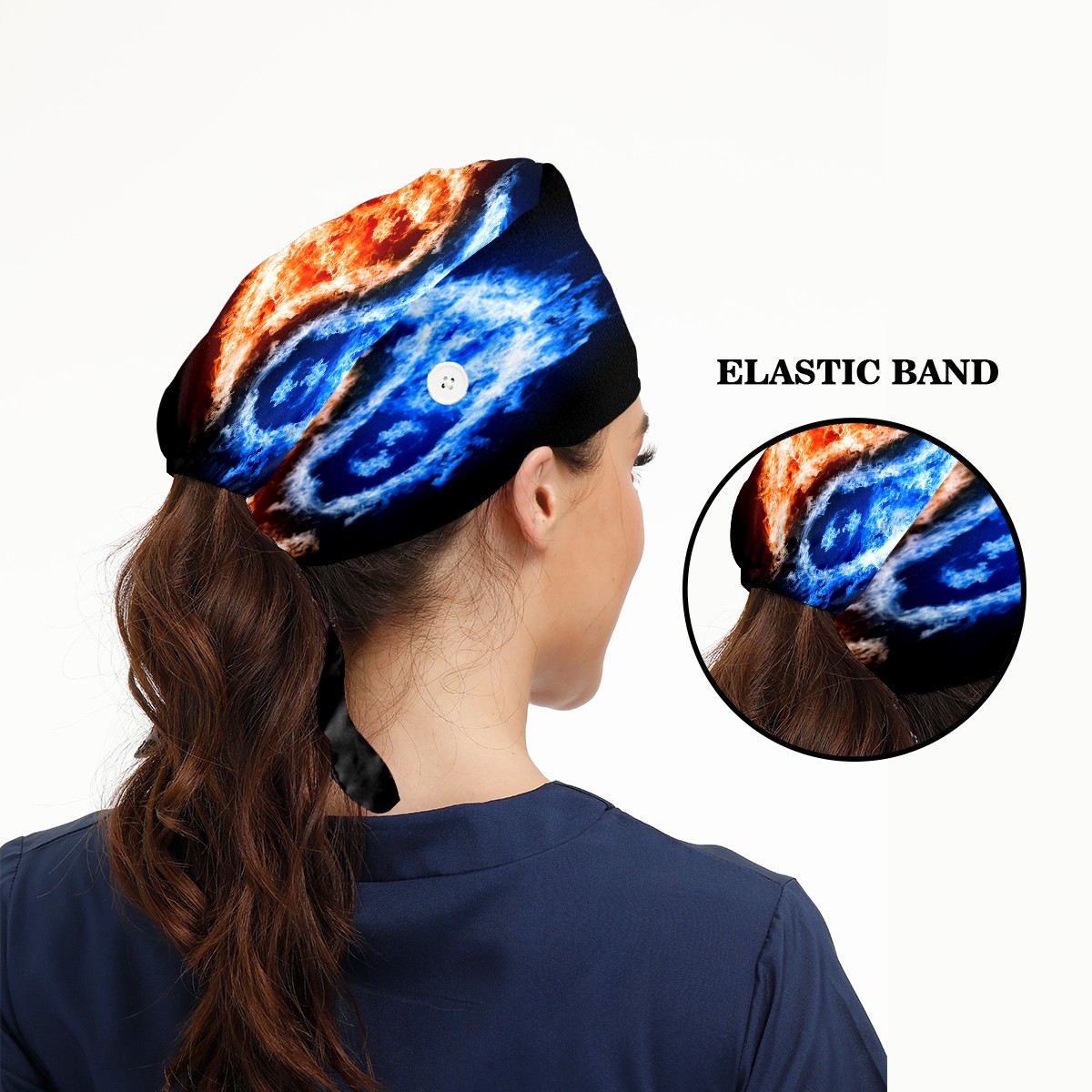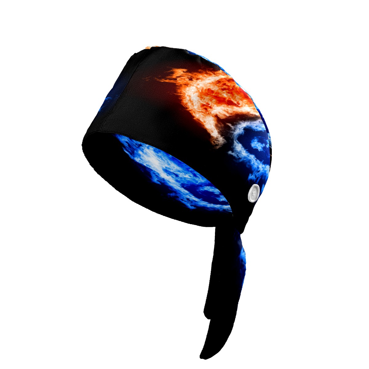 Retro Fire Water Chinese Yin Yang Working Cap Button and Sweatband Adjustable Elastic Head Cover Hair Tie Back Work Hats for Women Men