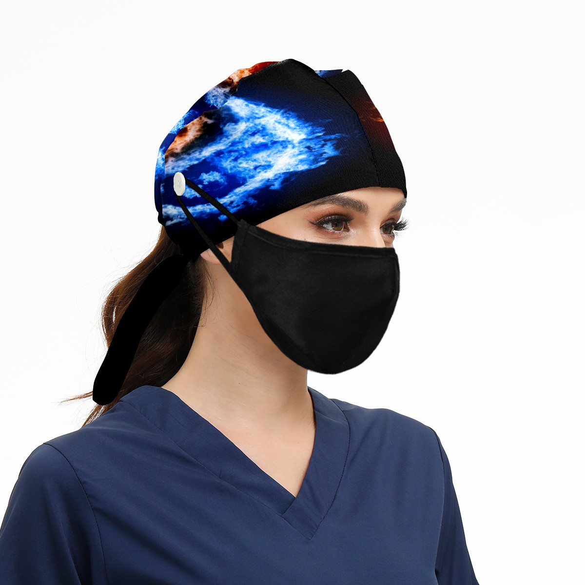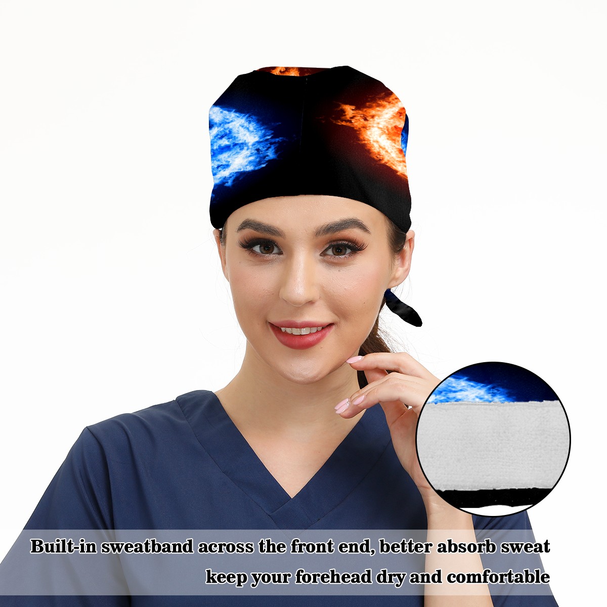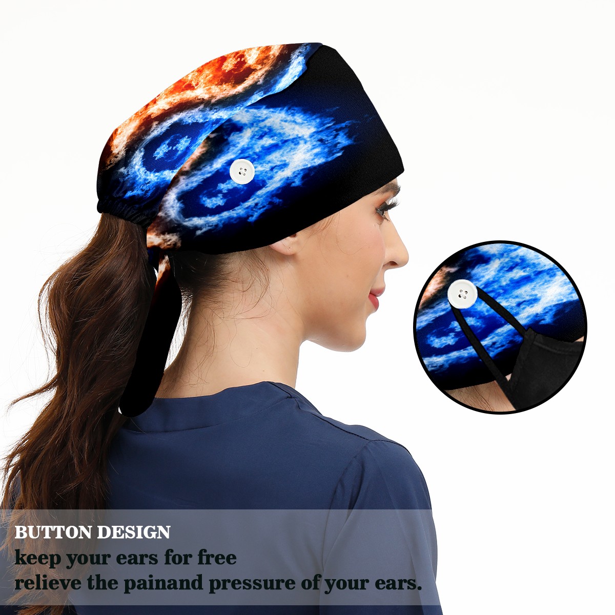 <p>Working cap with Sweatband and Button for Women Men</p><p>Material&nbsp;: 50% cotton+50% polyester</p><p>Size:&nbsp;One size fits most,&nbsp;suitable for both men and women.</p><p>Working Cap with Buttons Design:special&nbsp;design with buttons to protect ears for those who are wearing ma-sk. These new styles hats will allow you to put the straps around the buttons instead of your ears, make you feel more comfortable.</p><p>Sweat-absorbent towel cloth inside: Built-in&nbsp;100% cotton sweatband, keep the forehead clean after long time working.</p><p>Widely occasion: Widely used in beauty spa, house cleaning, cooking, sleeping, or for cos-play&nbsp;party.</p><p>Lovely pattern: lovely&nbsp;3D printed&nbsp;pattern,&nbsp;it's perfect for gift to you family&nbsp;and friends.</p>