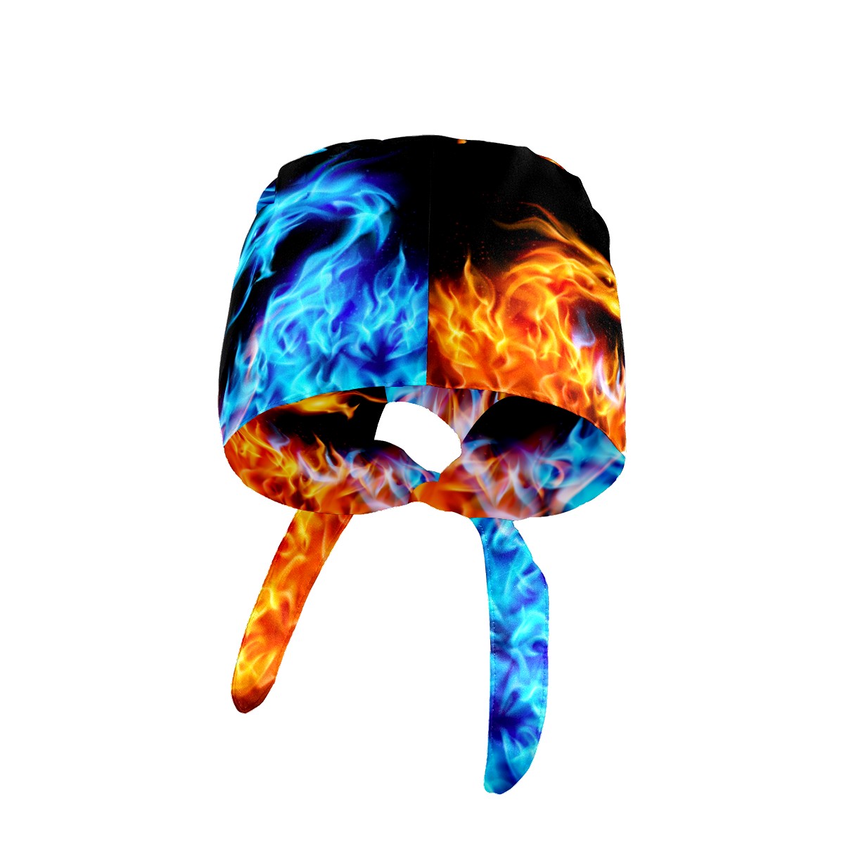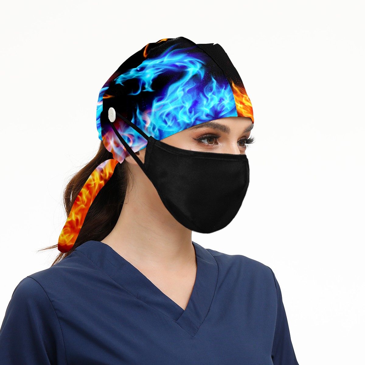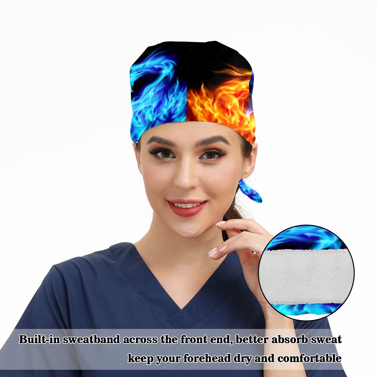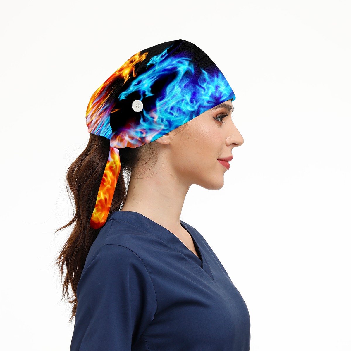 Red Blue Fire Dragon Working Cap Button and Sweatband Adjustable Elastic Head Cover Hair Tie Back Work Hats for Women Men