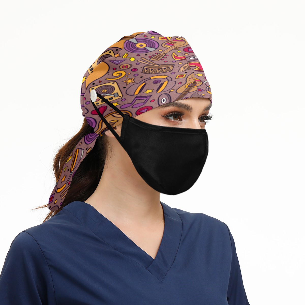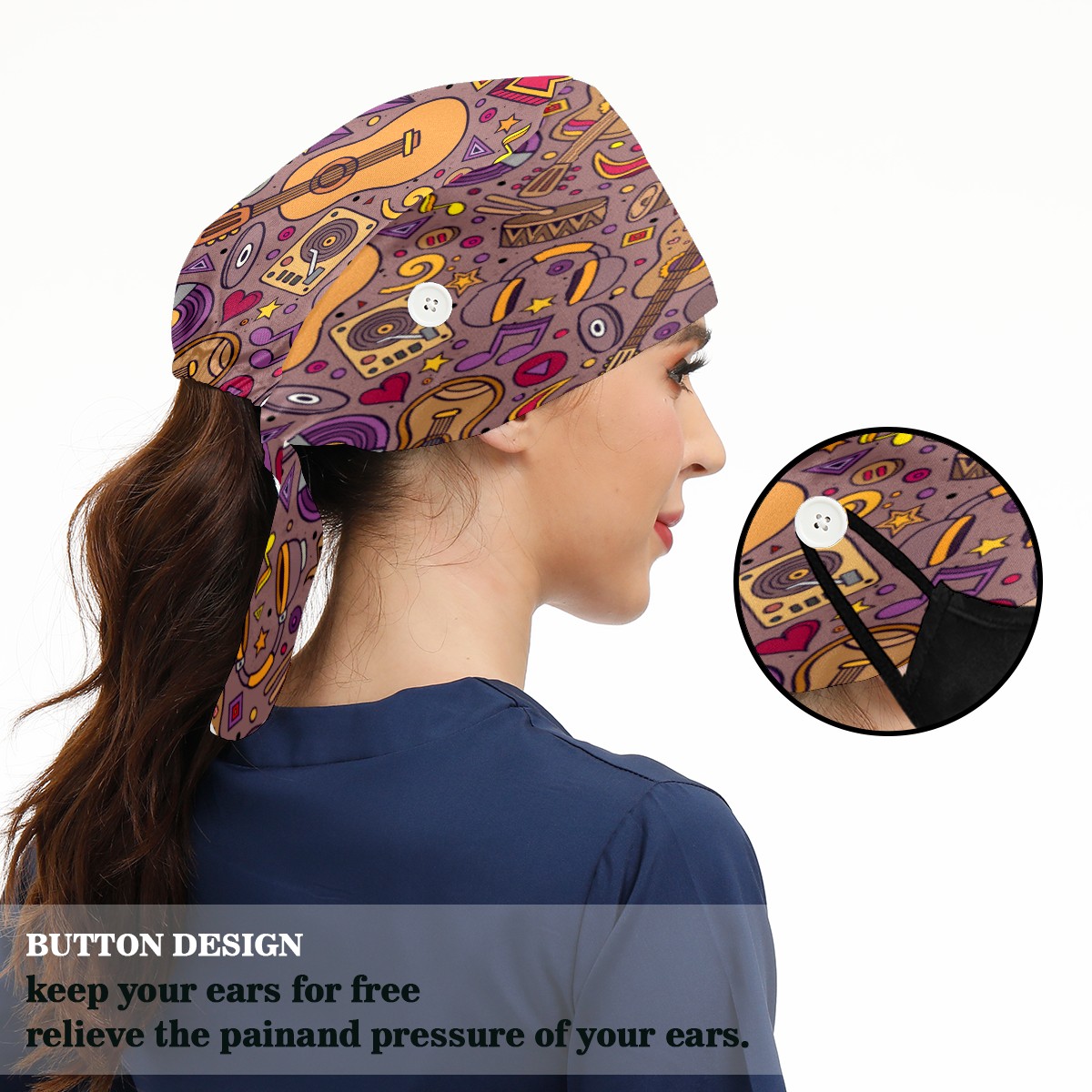 <p>Working cap with Sweatband and Button for Women Men</p><p>Material&nbsp;: 50% cotton+50% polyester</p><p>Size:&nbsp;One size fits most,&nbsp;suitable for both men and women.</p><p>Working Cap with Buttons Design:special&nbsp;design with buttons to protect ears for those who are wearing ma-sk. These new styles hats will allow you to put the straps around the buttons instead of your ears, make you feel more comfortable.</p><p>Sweat-absorbent towel cloth inside: Built-in&nbsp;100% cotton sweatband, keep the forehead clean after long time working.</p><p>Widely occasion: Widely used in beauty spa, house cleaning, cooking, sleeping, or for cos-play&nbsp;party.</p><p>Lovely pattern: lovely&nbsp;3D printed&nbsp;pattern,&nbsp;it's perfect for gift to you family&nbsp;and friends.</p>
