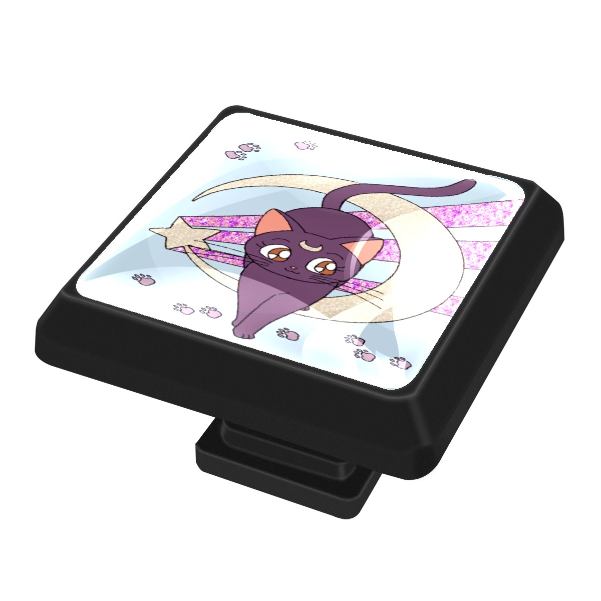 Cabinet Knobs Cute Anime Sailor Moon Cat Drawer Pulls Crystal Glass Square Furniture Door Cupboard Wardrobe Pull with Screws for Kitchen Home Office 3 Pack