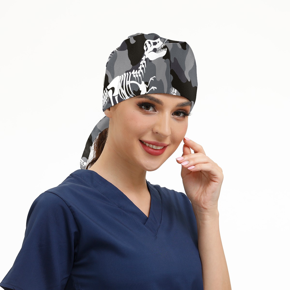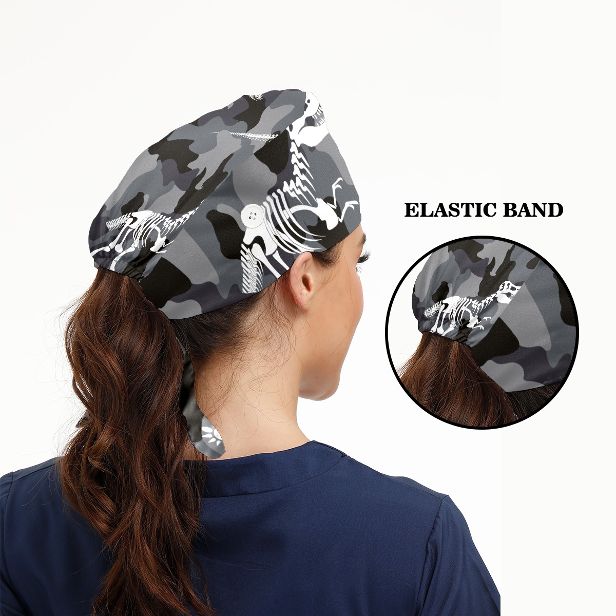 Camouflage Dinosaur Fossil Working Cap Button and Sweatband Adjustable Elastic Head Cover Hair Tie Back Work Hats for Women Men