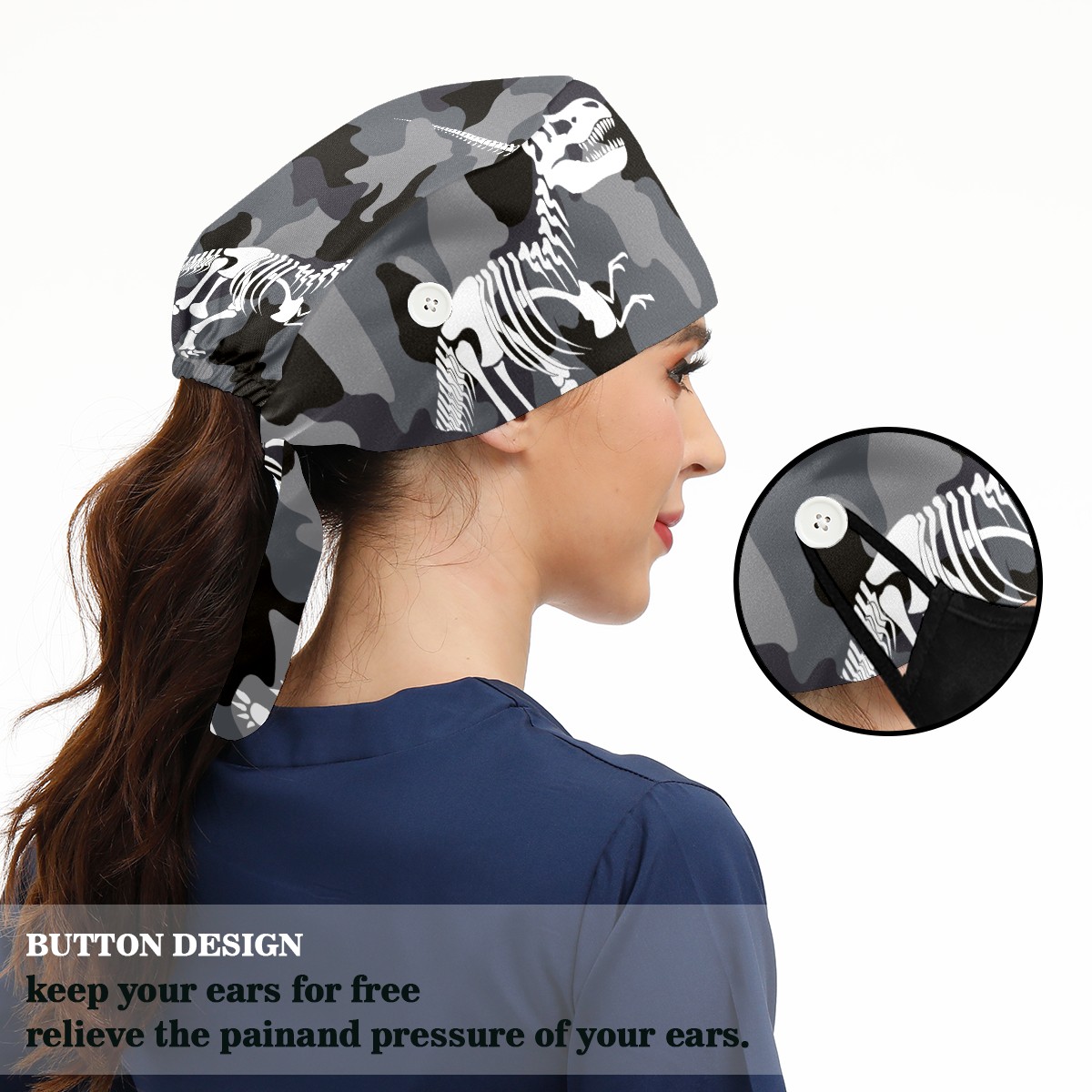 <p>Working cap with Sweatband and Button for Women Men</p><p>Material&nbsp;: 50% cotton+50% polyester</p><p>Size:&nbsp;One size fits most,&nbsp;suitable for both men and women.</p><p>Working Cap with Buttons Design:special&nbsp;design with buttons to protect ears for those who are wearing ma-sk. These new styles hats will allow you to put the straps around the buttons instead of your ears, make you feel more comfortable.</p><p>Sweat-absorbent towel cloth inside: Built-in&nbsp;100% cotton sweatband, keep the forehead clean after long time working.</p><p>Widely occasion: Widely used in beauty spa, house cleaning, cooking, sleeping, or for cos-play&nbsp;party.</p><p>Lovely pattern: lovely&nbsp;3D printed&nbsp;pattern,&nbsp;it's perfect for gift to you family&nbsp;and friends.</p>