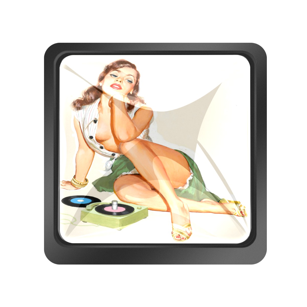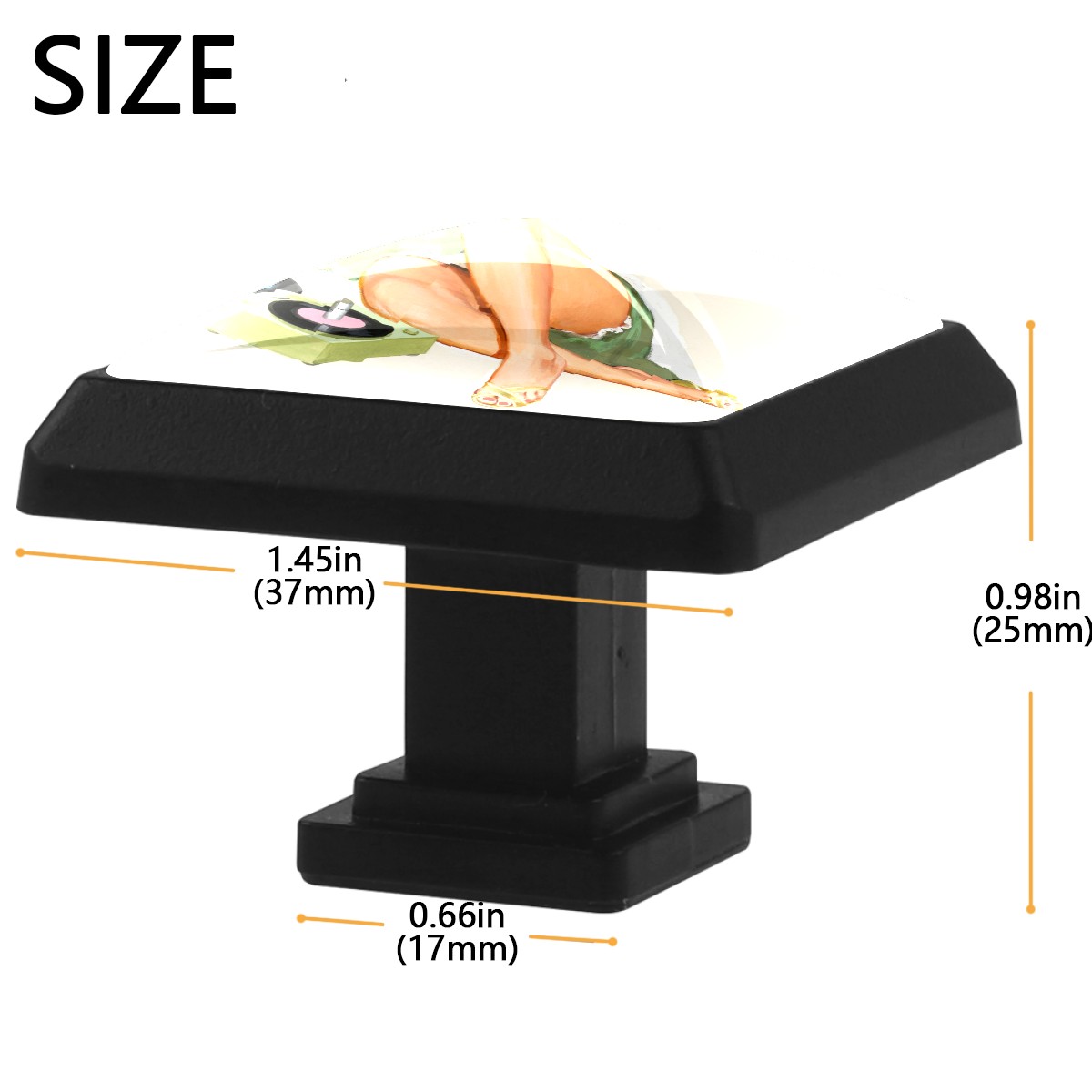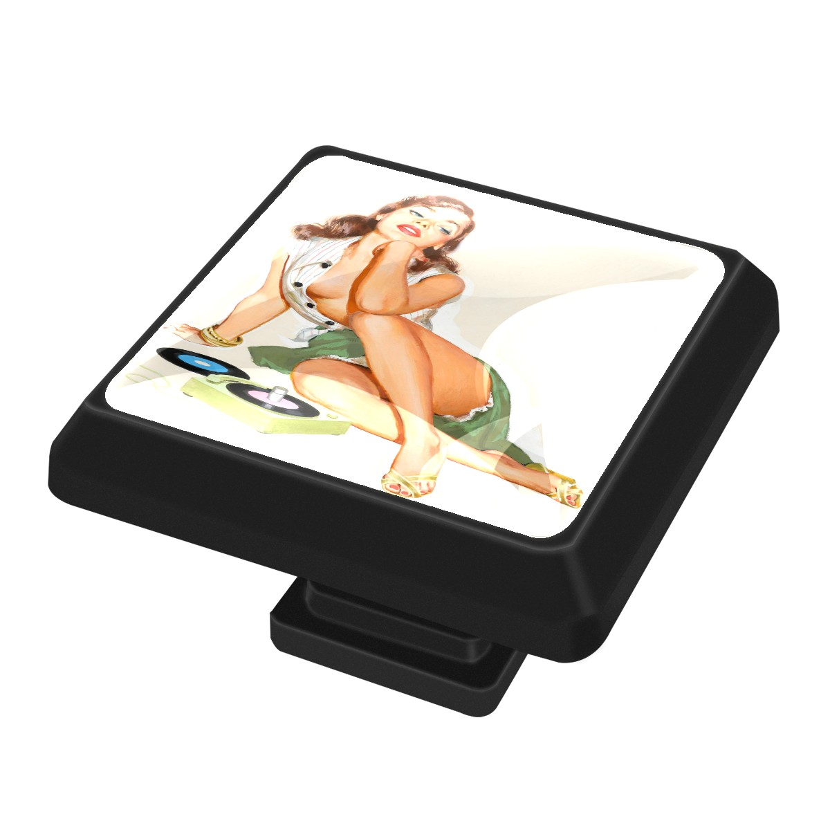 Cabinet Knobs Retro Pinup Girl Listening To Music Drawer Pulls Crystal Glass Square Furniture Door Cupboard Wardrobe Pull with Screws for Kitchen Home Office 3 Pack