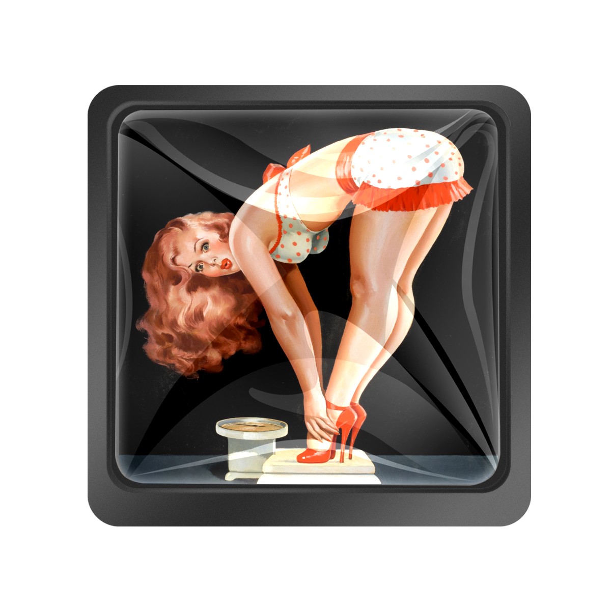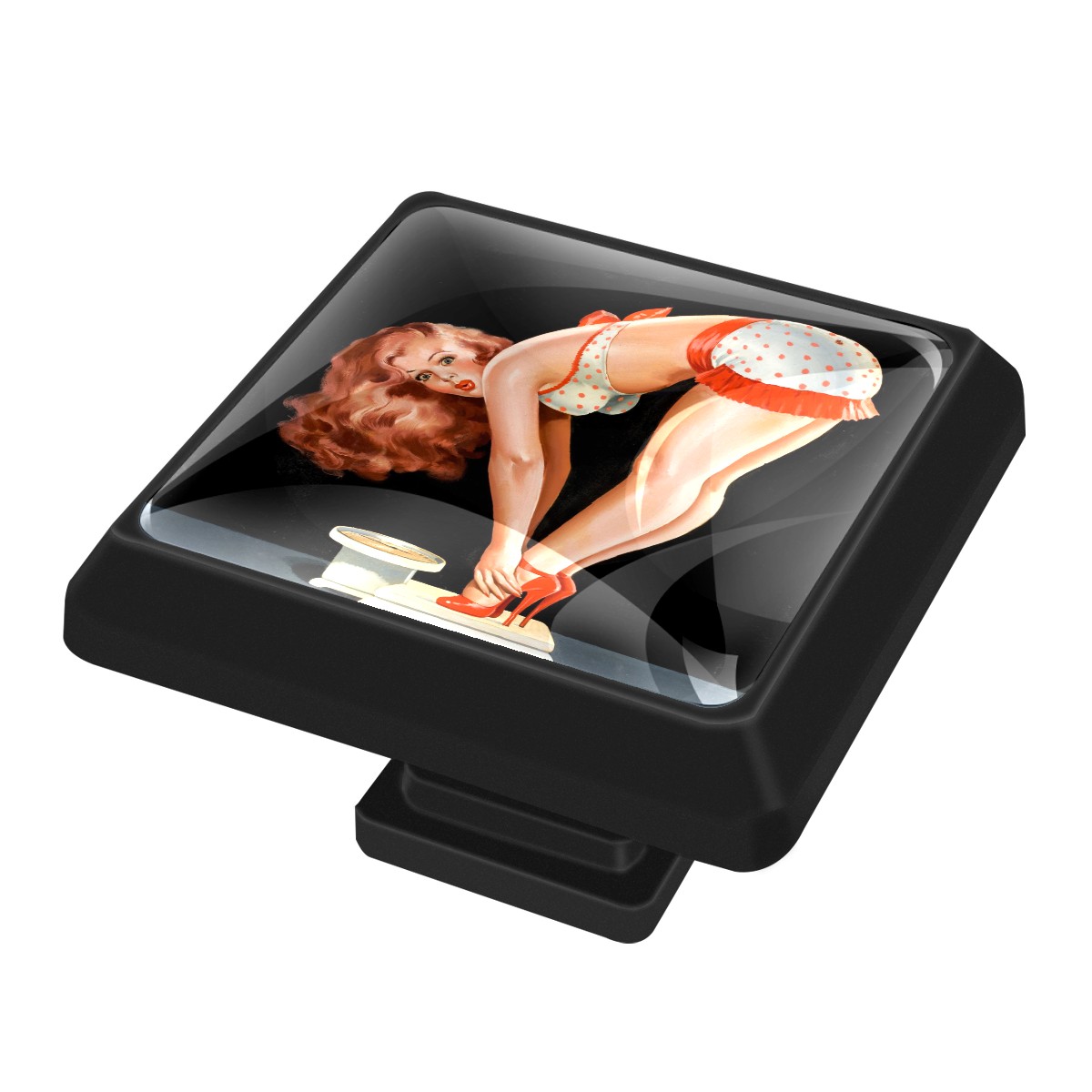 Cabinet Knobs Pin Up Girl On Scale 1955 Drawer Pulls Crystal Glass Square Furniture Door Cupboard Wardrobe Pull with Screws for Kitchen Home Office 3 Pack