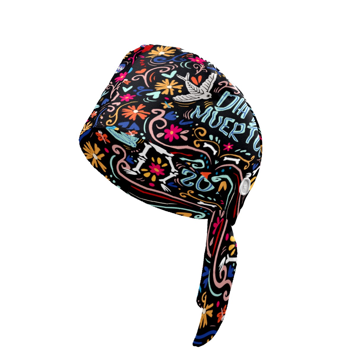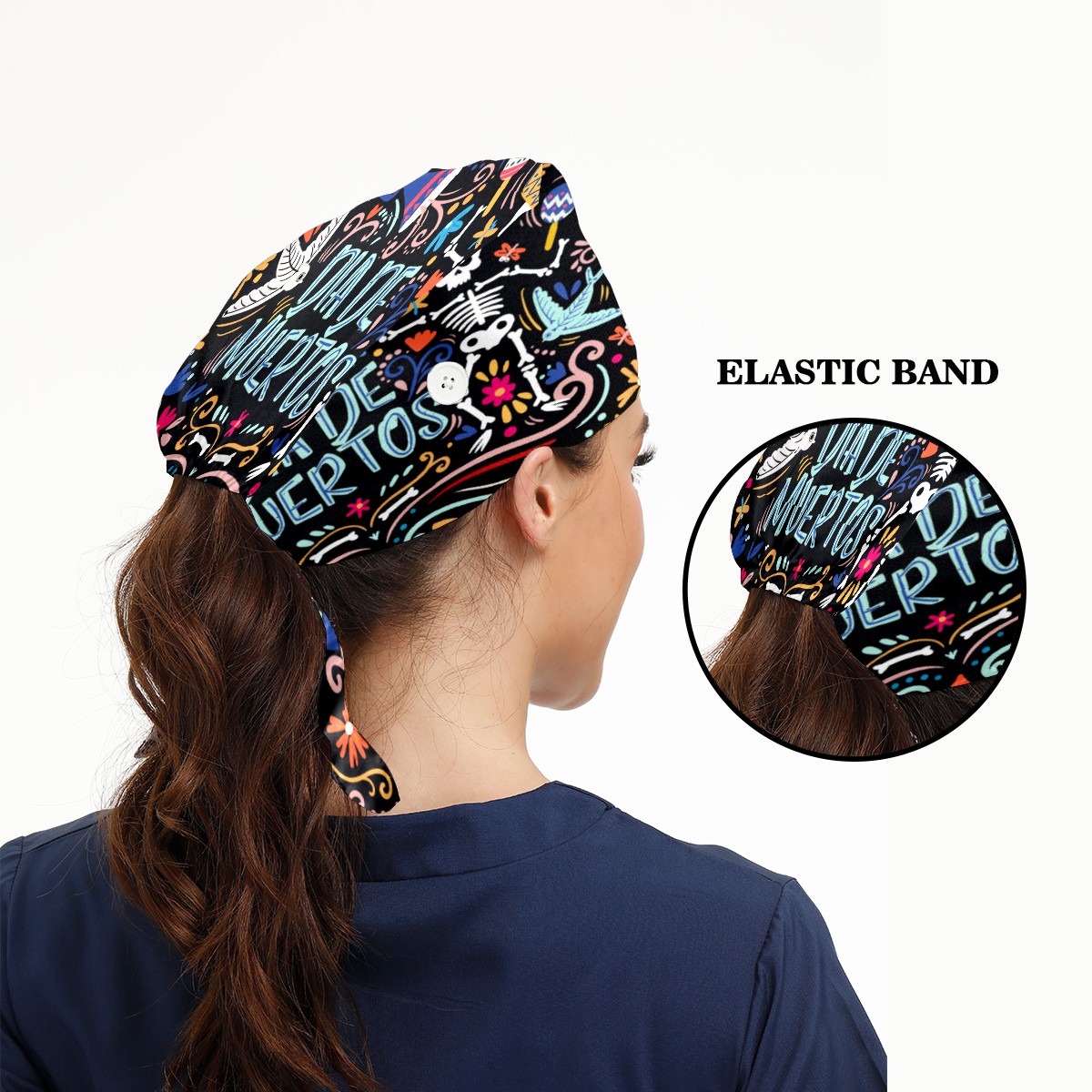Day Of The Dead Sugar Skull Bones Working Cap Button and Sweatband Adjustable Elastic Head Cover Hair Tie Back Work Hats for Women Men