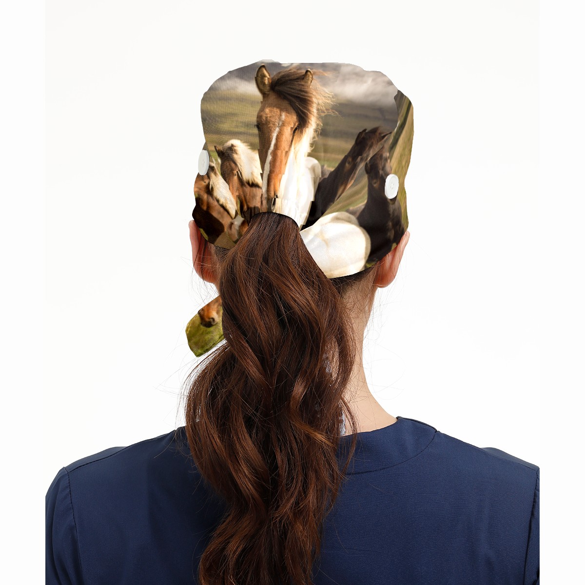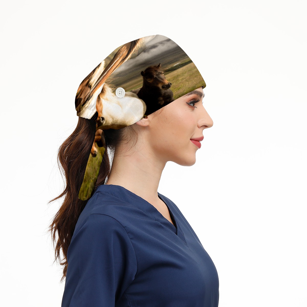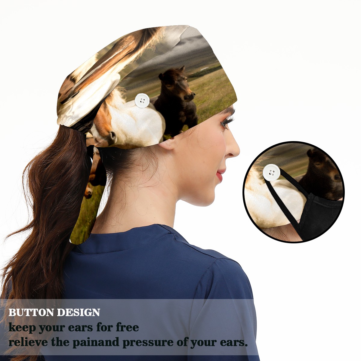 Three Horses Working Cap Button and Sweatband Adjustable Elastic Head Cover Hair Tie Back Work Hats for Women Men