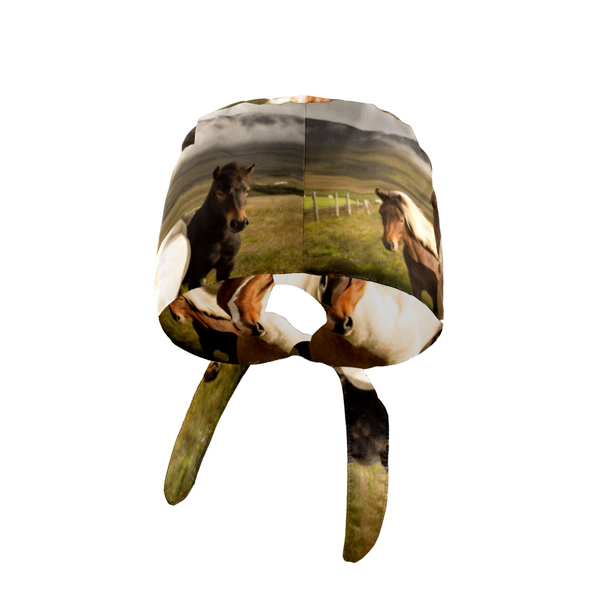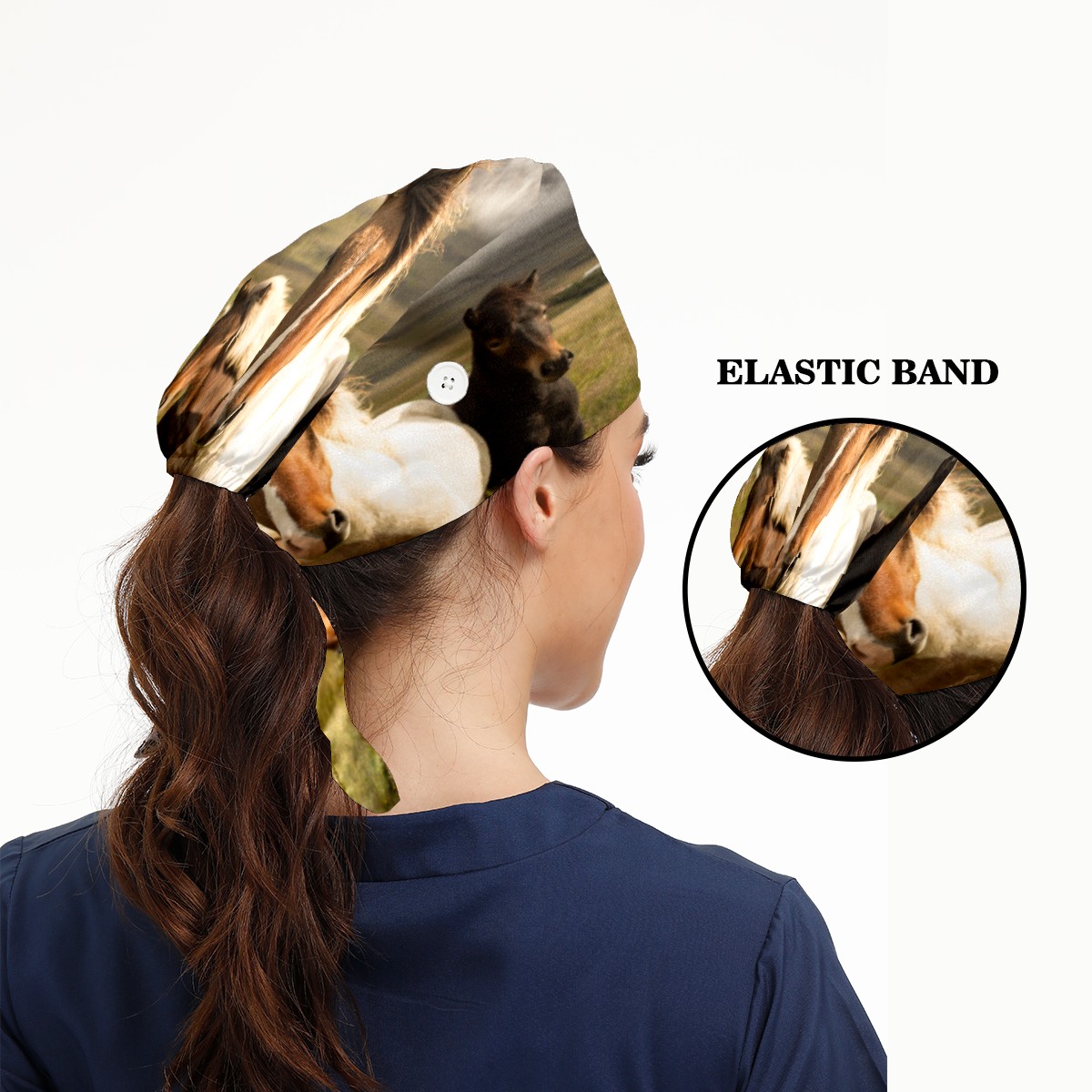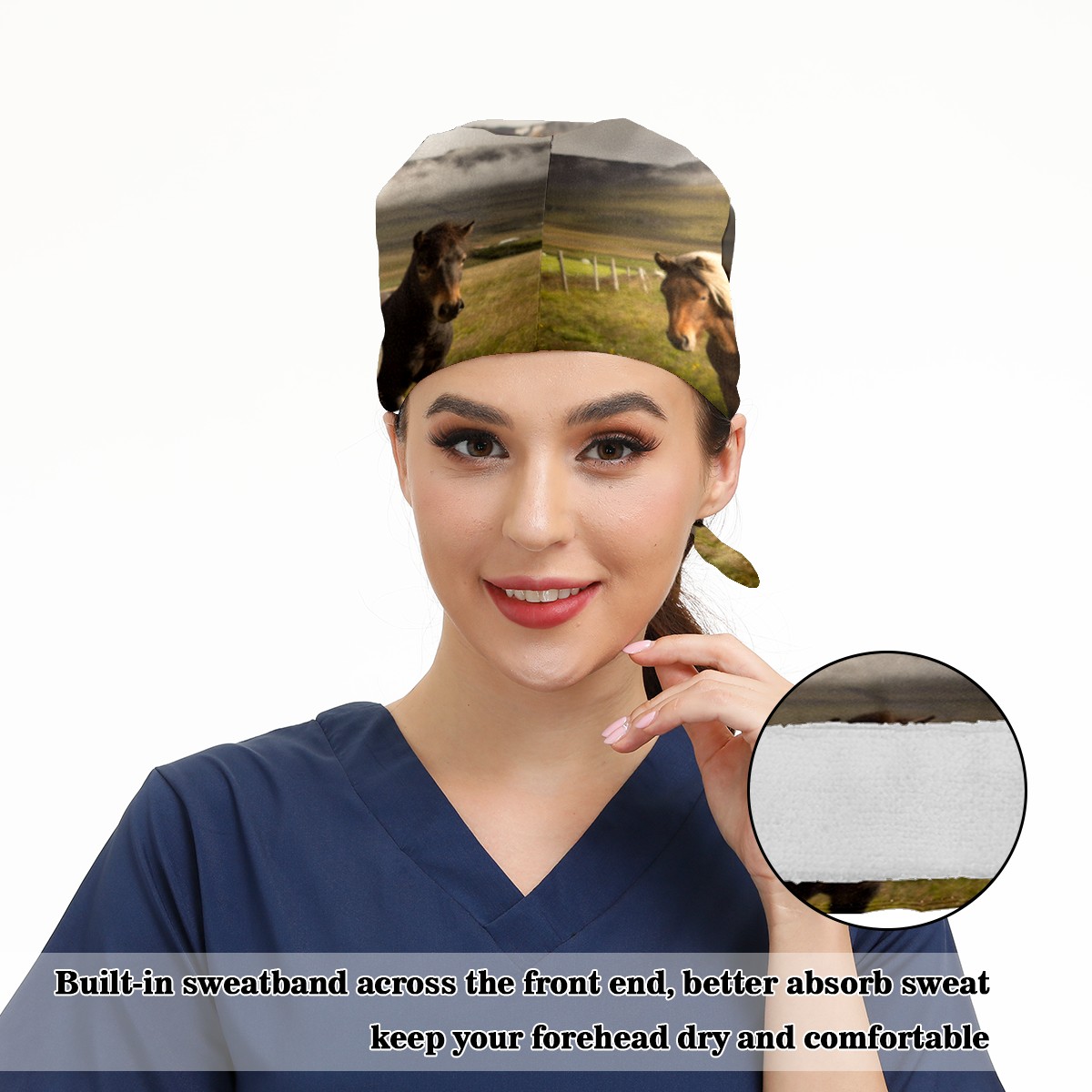 Three Horses Working Cap Button and Sweatband Adjustable Elastic Head Cover Hair Tie Back Work Hats for Women Men