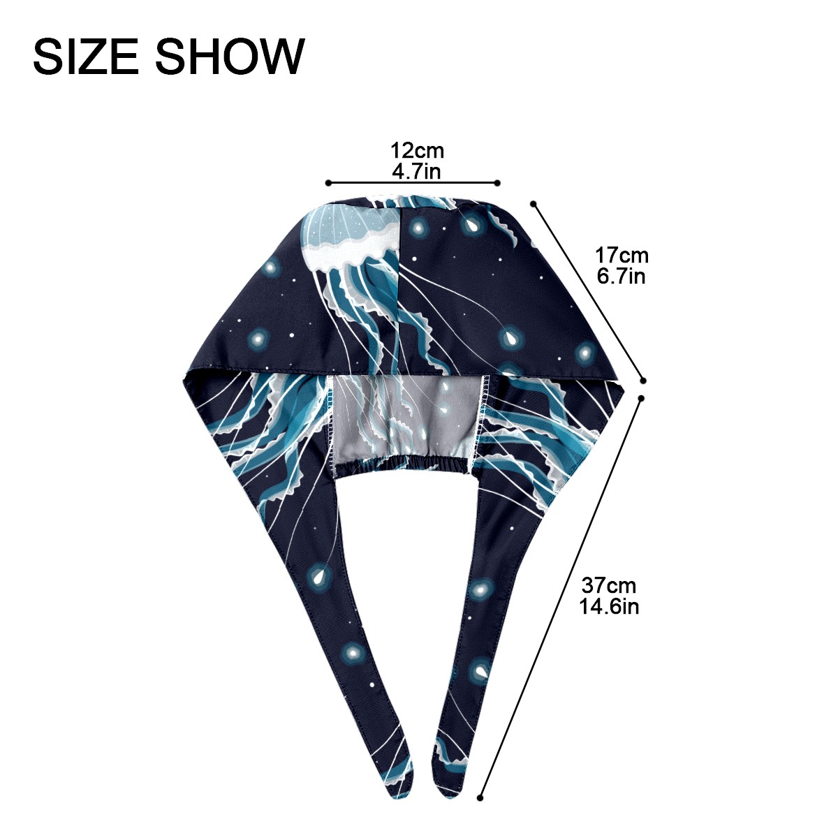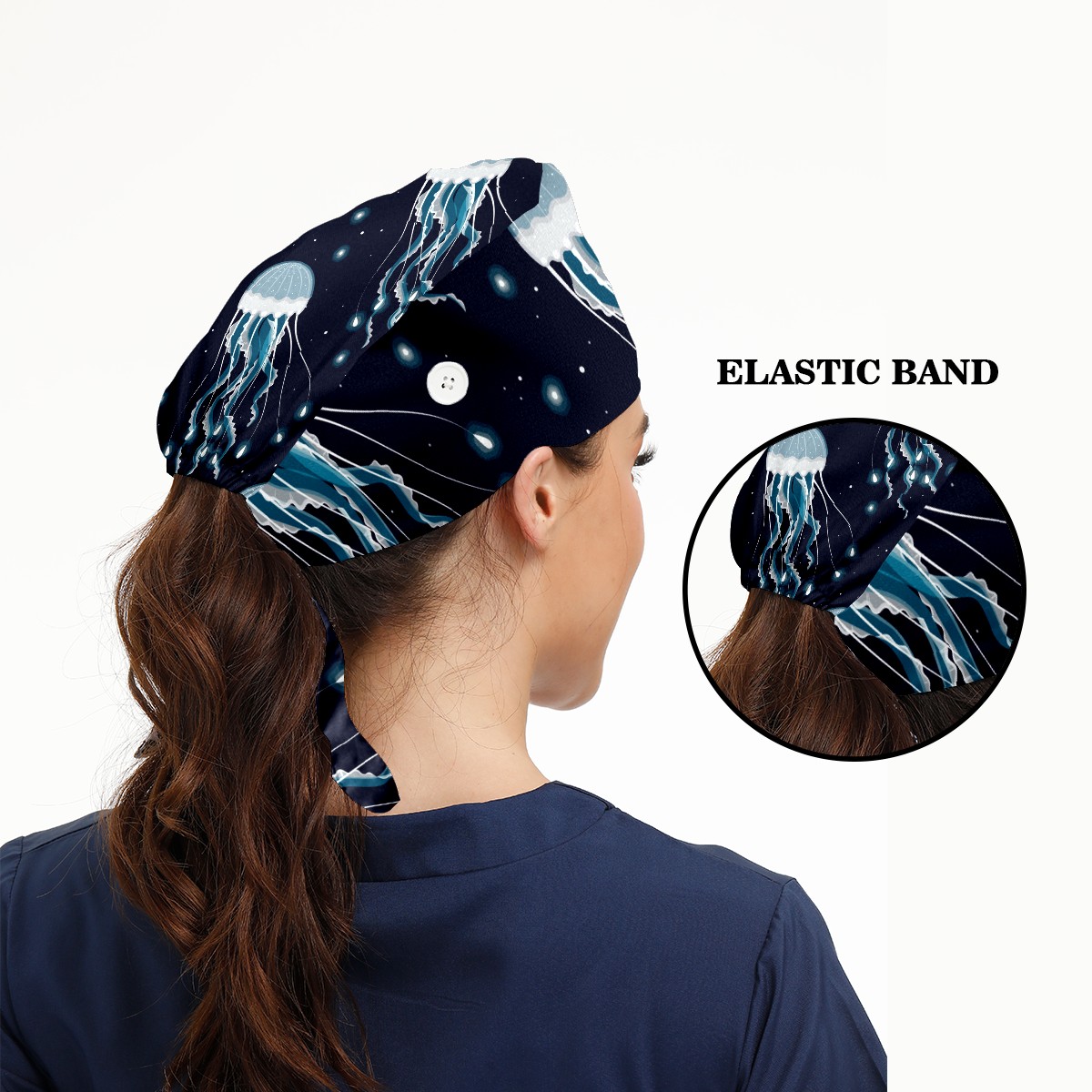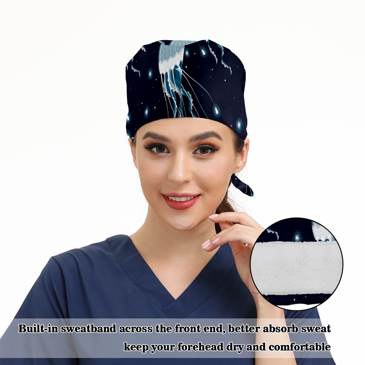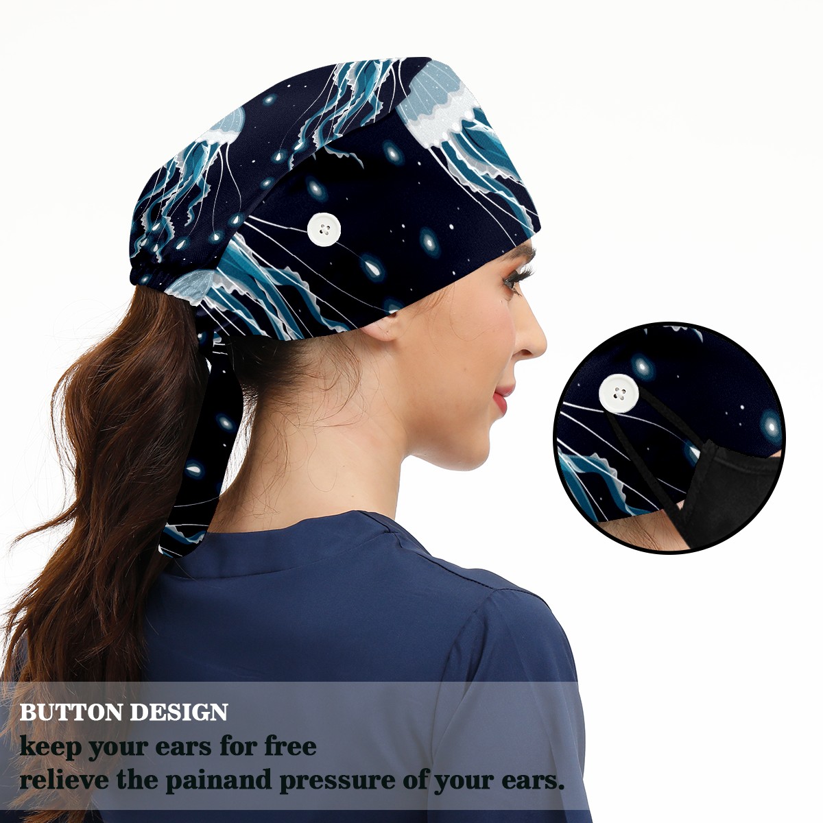 Light Blue Jellyfishes Pattern Navy Working Cap Button and Sweatband Adjustable Elastic Head Cover Hair Tie Back Work Hats for Women Men