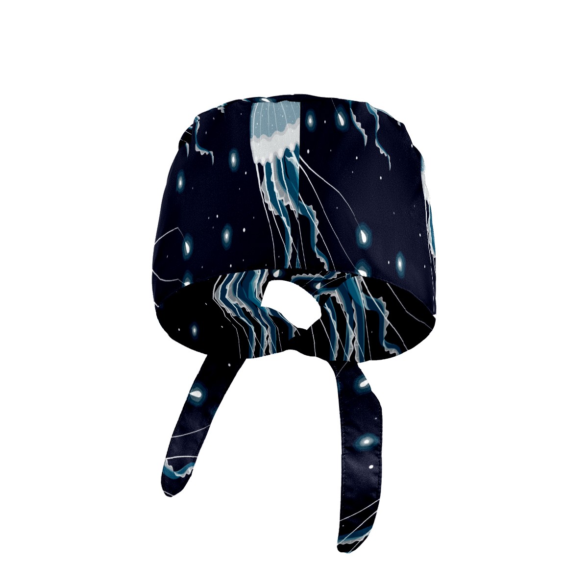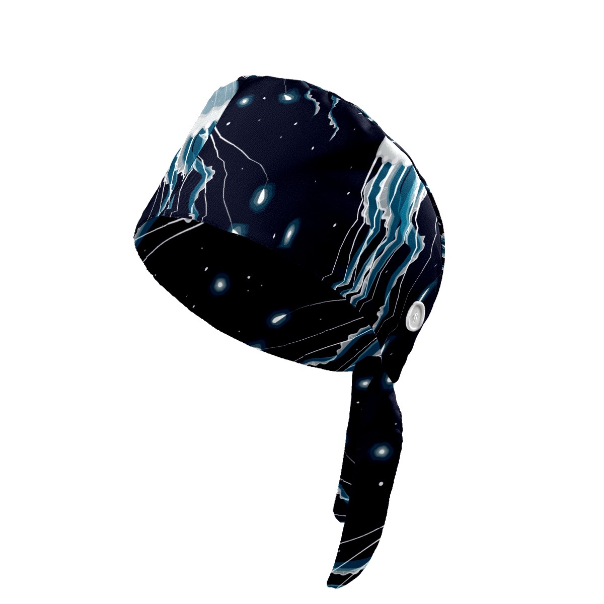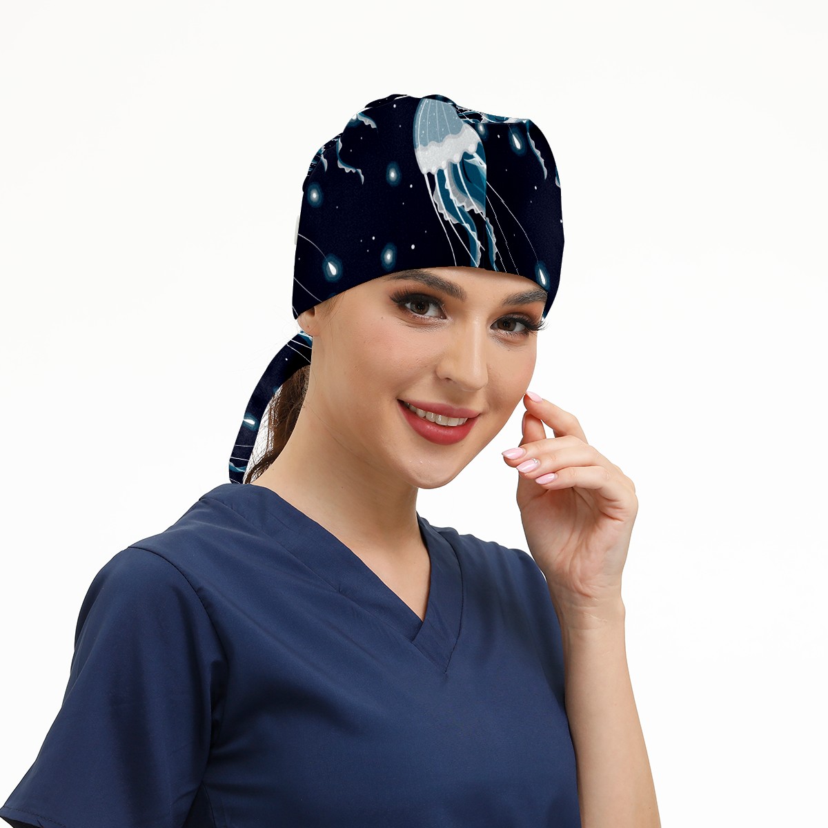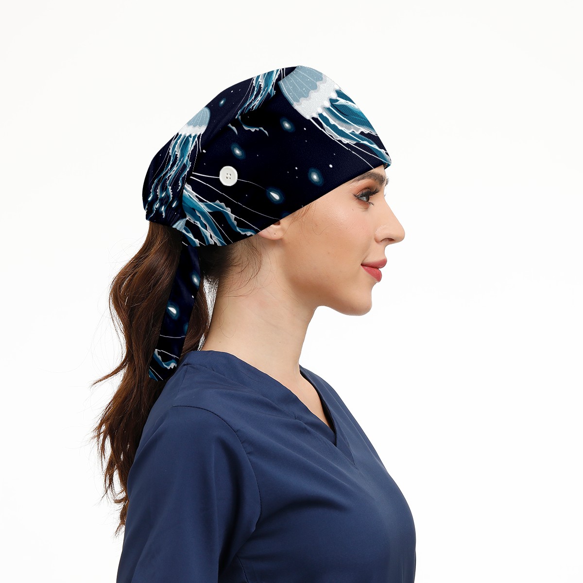 Light Blue Jellyfishes Pattern Navy Working Cap Button and Sweatband Adjustable Elastic Head Cover Hair Tie Back Work Hats for Women Men