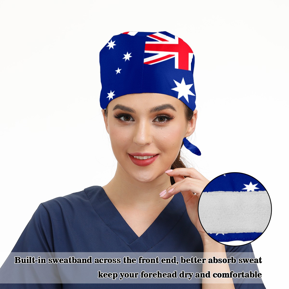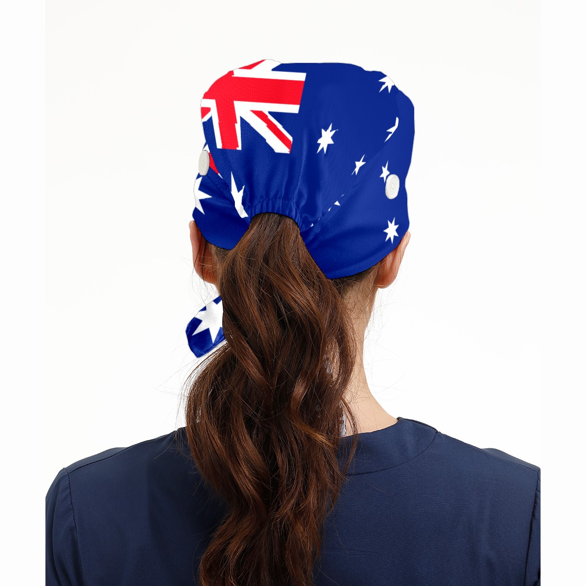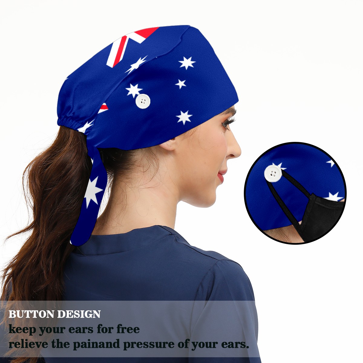 Australia Flag Working Cap Button and Sweatband Adjustable Elastic Head Cover Hair Tie Back Work Hats for Women Men