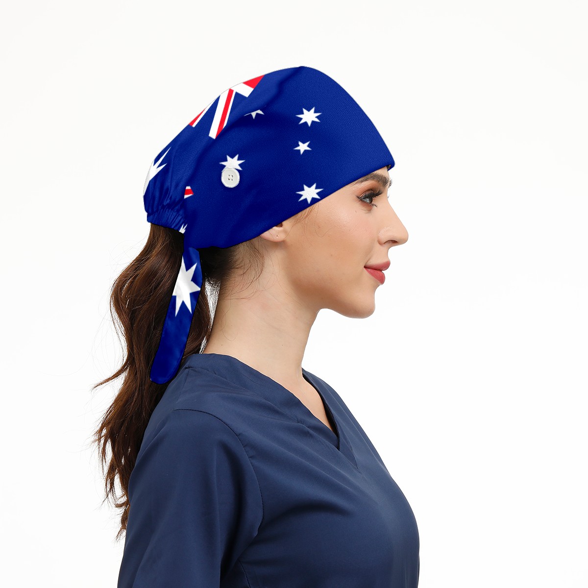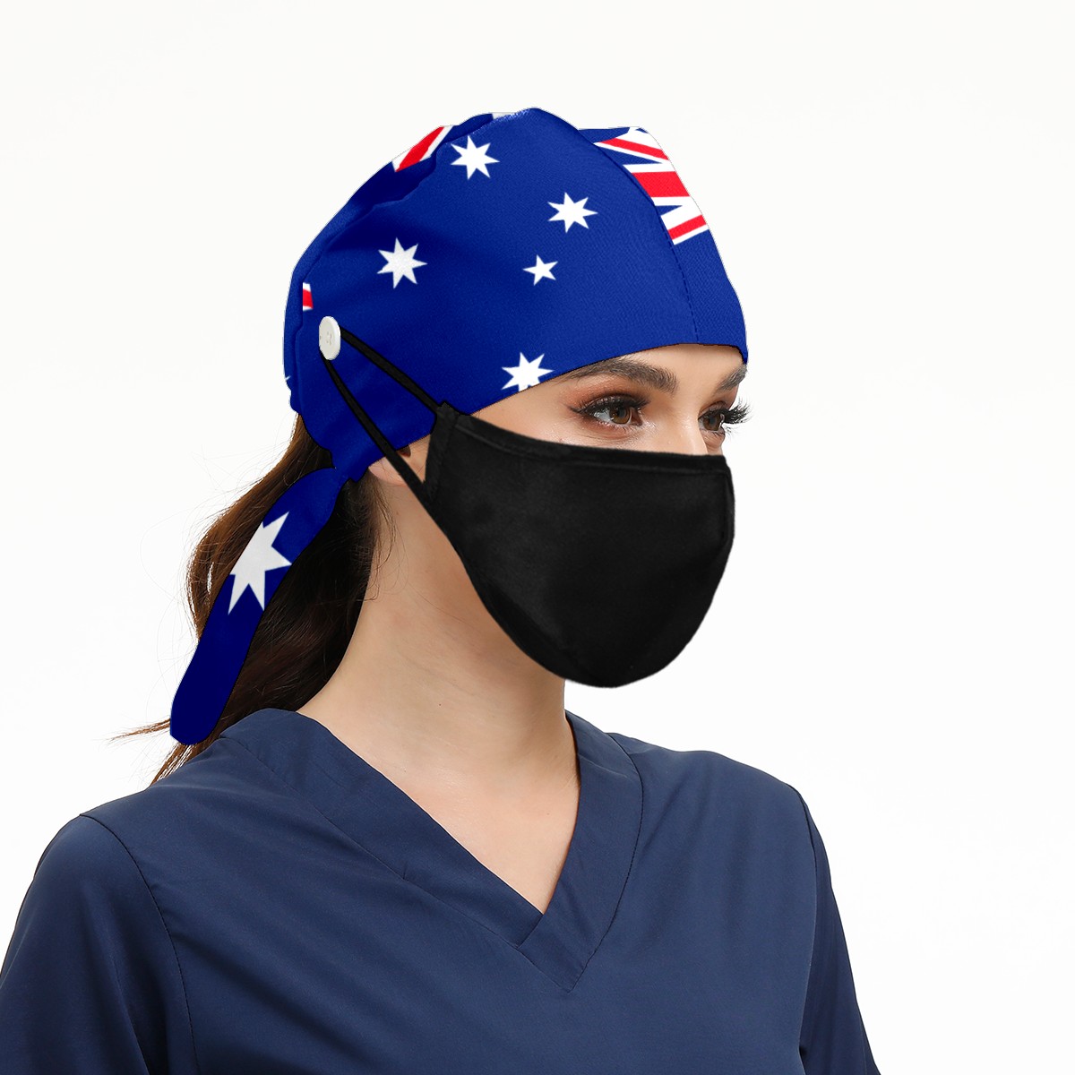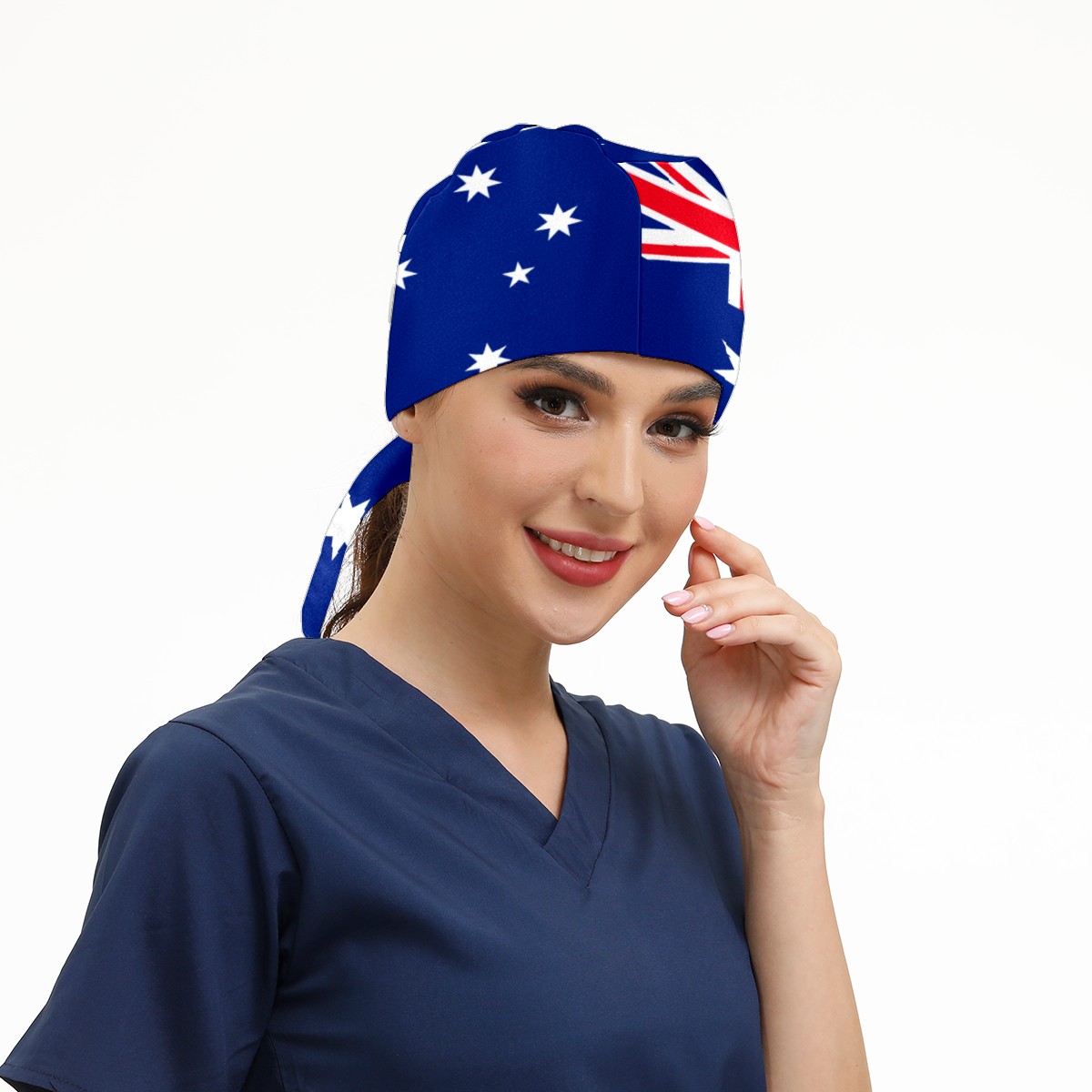 Australia Flag Working Cap Button and Sweatband Adjustable Elastic Head Cover Hair Tie Back Work Hats for Women Men