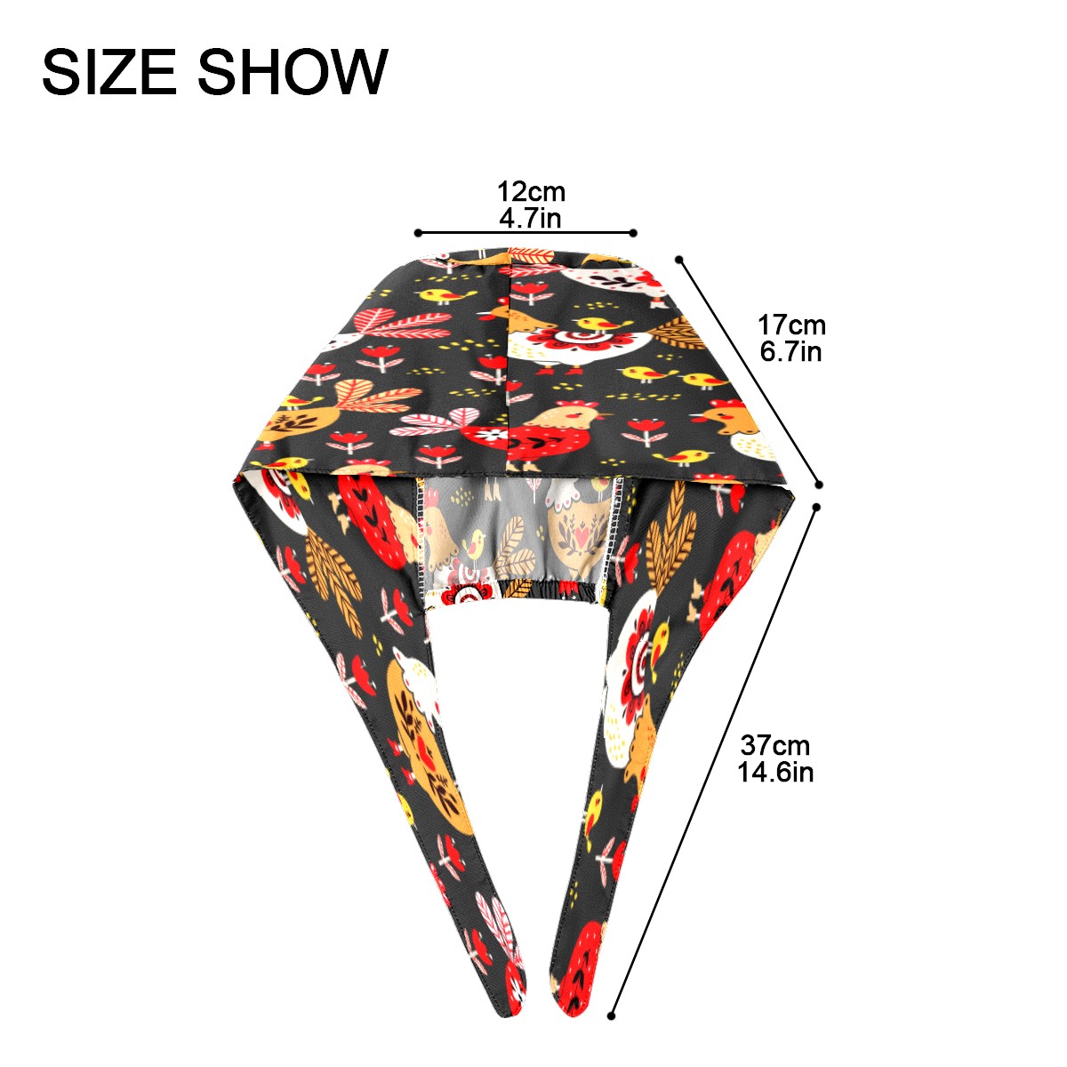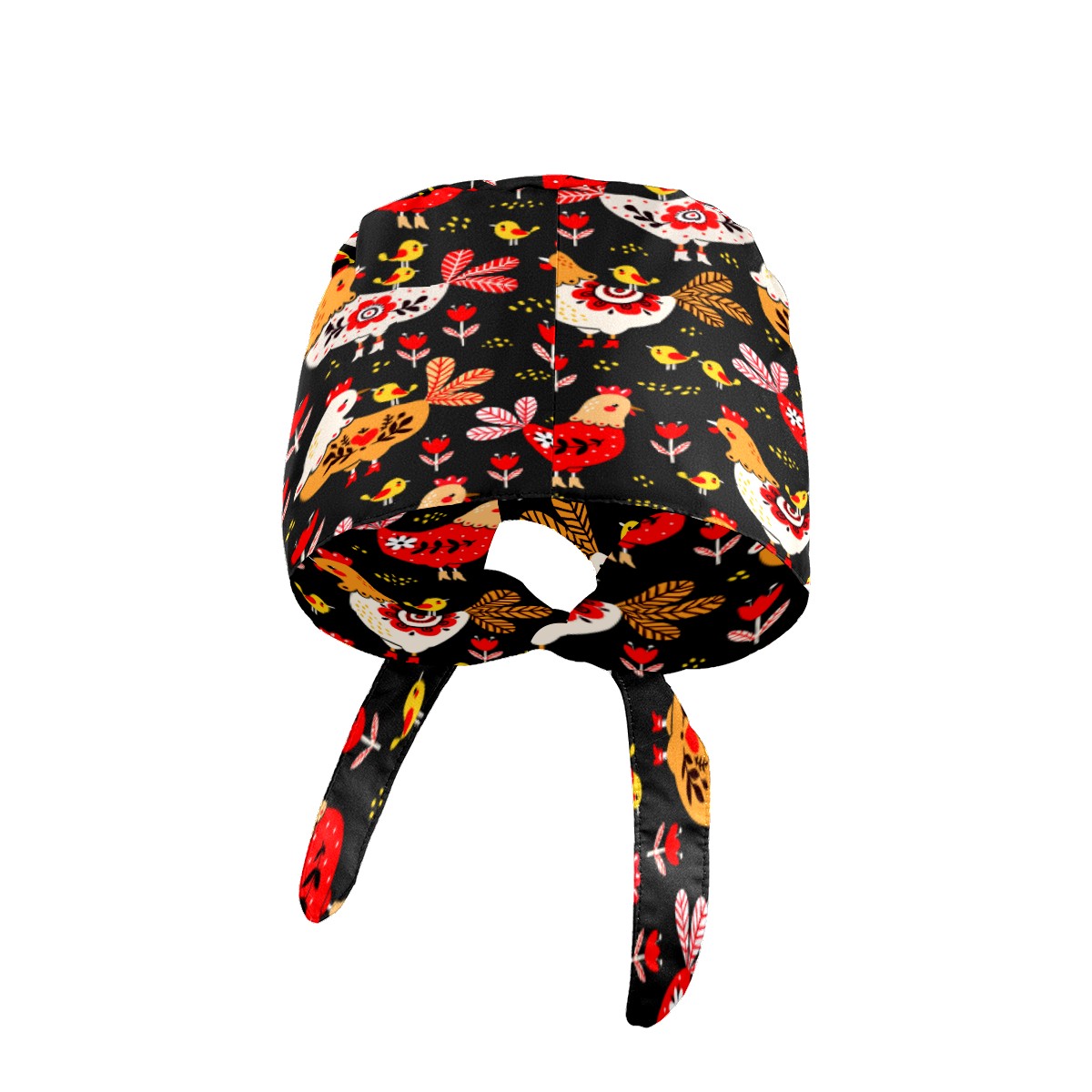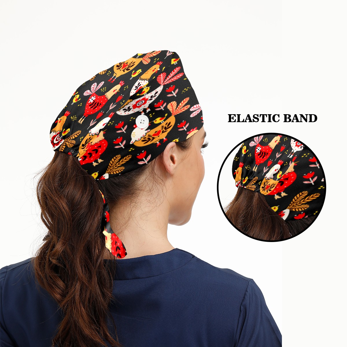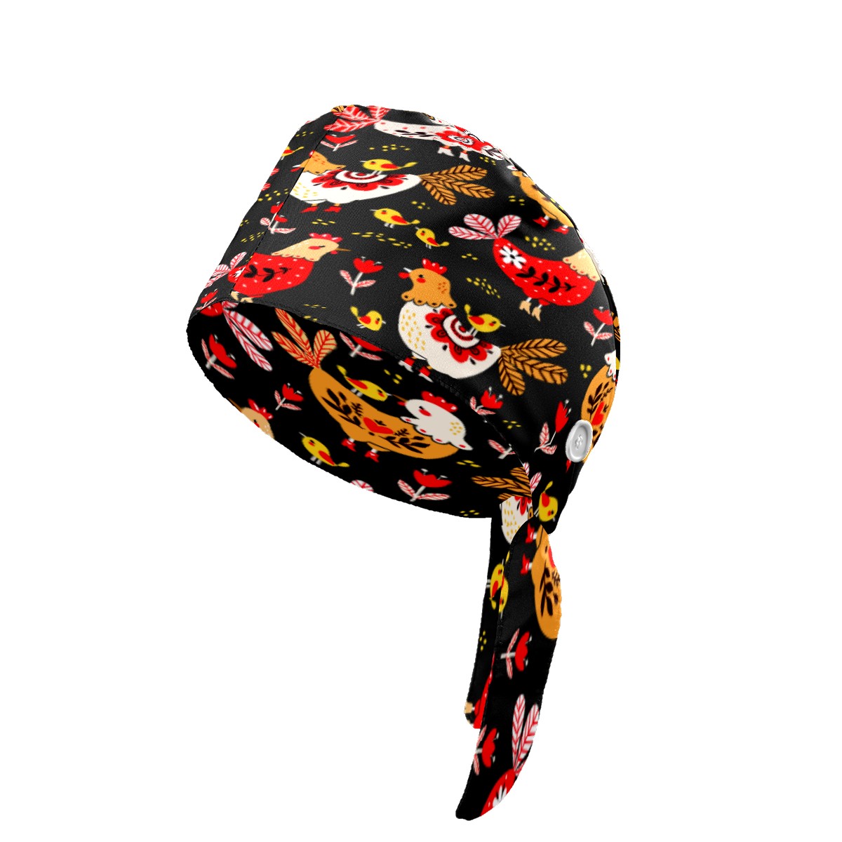 Colorful Rooster Chicken Floral Pattern Working Cap Button and Sweatband Adjustable Elastic Head Cover Hair Tie Back Work Hats for Women Men