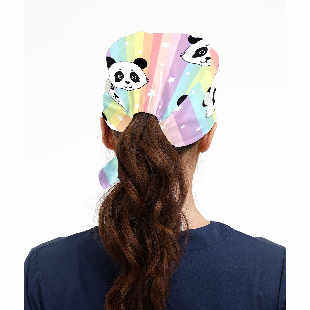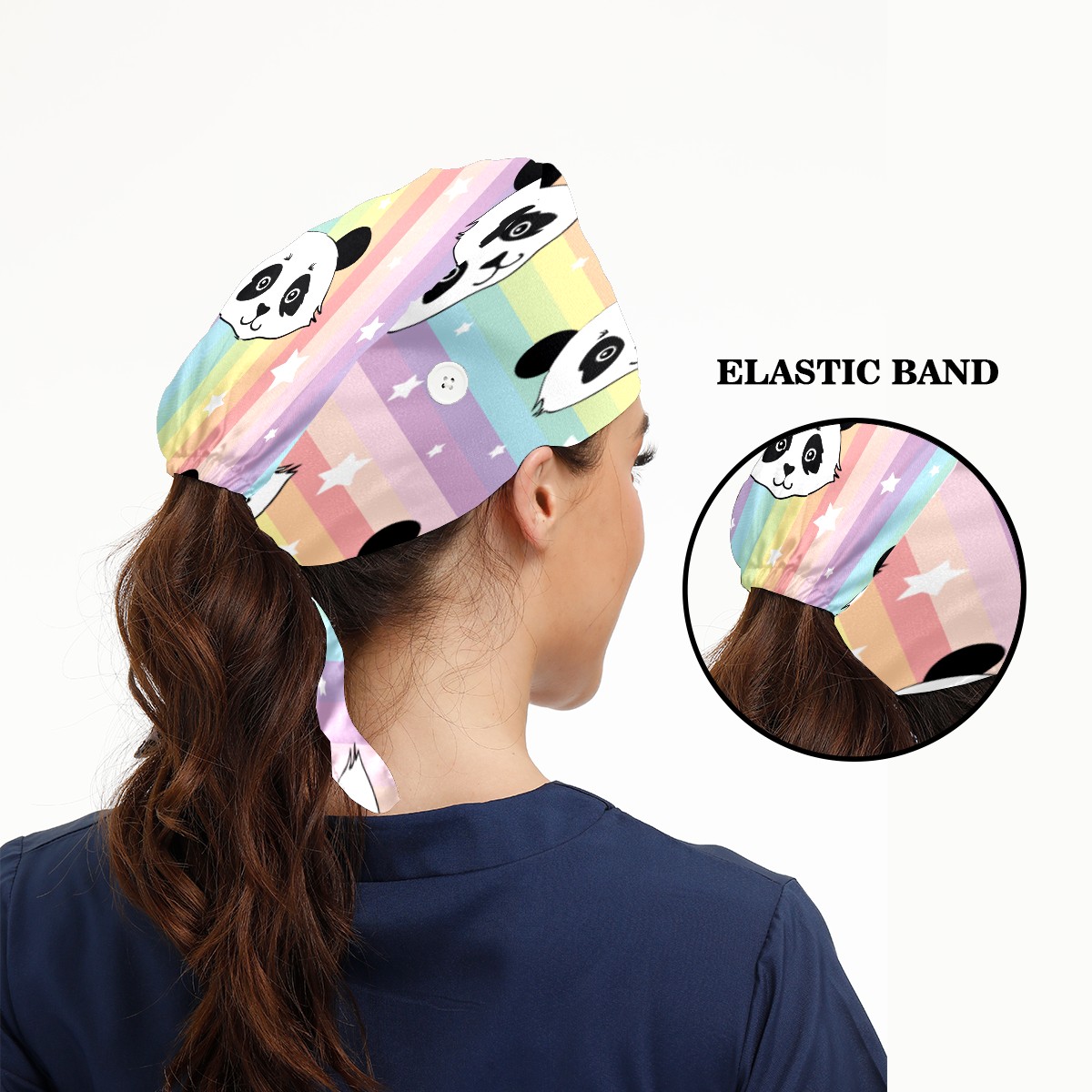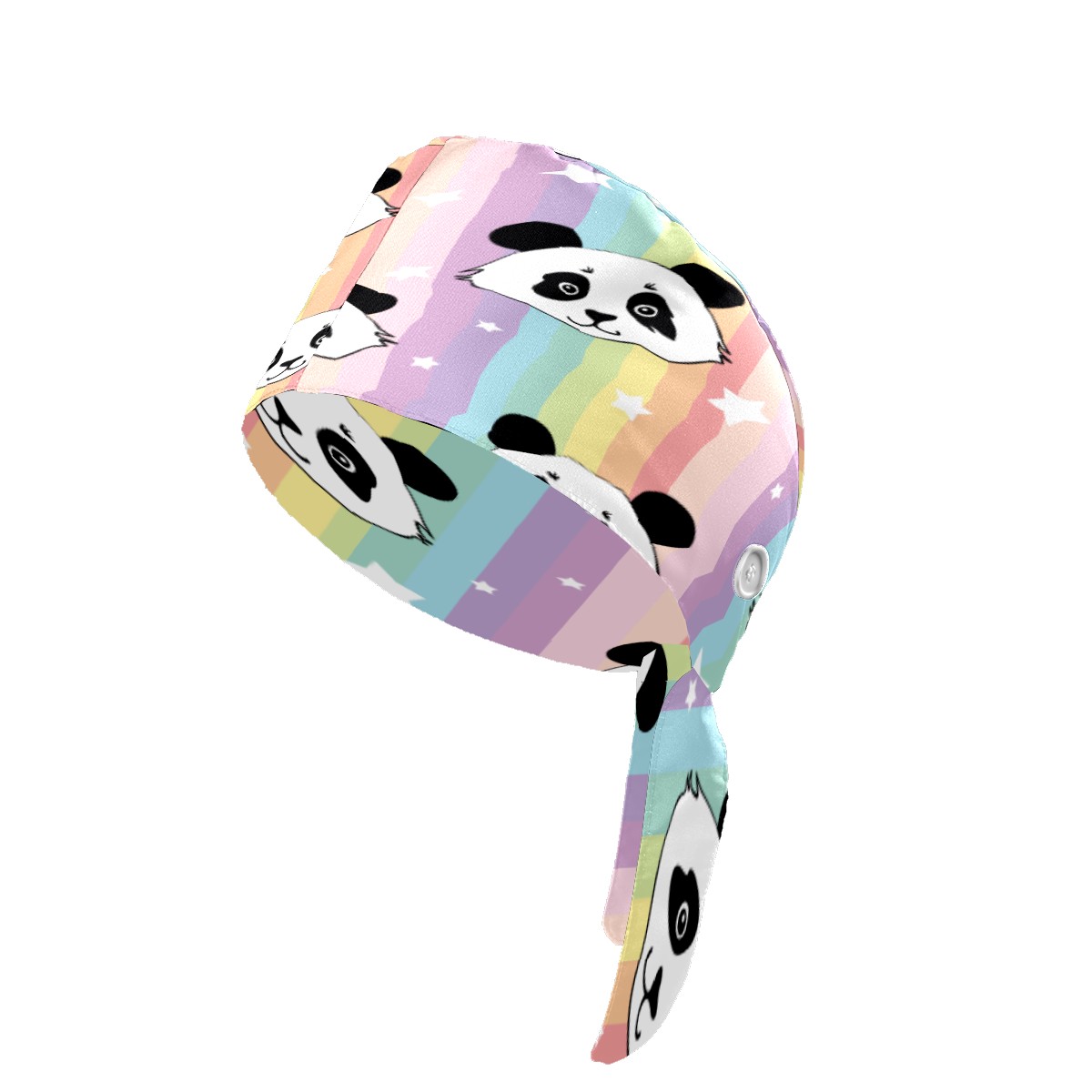 Colorful Stripes Panda Stars Pattern Working Cap Button and Sweatband Adjustable Elastic Head Cover Hair Tie Back Work Hats for Women Men