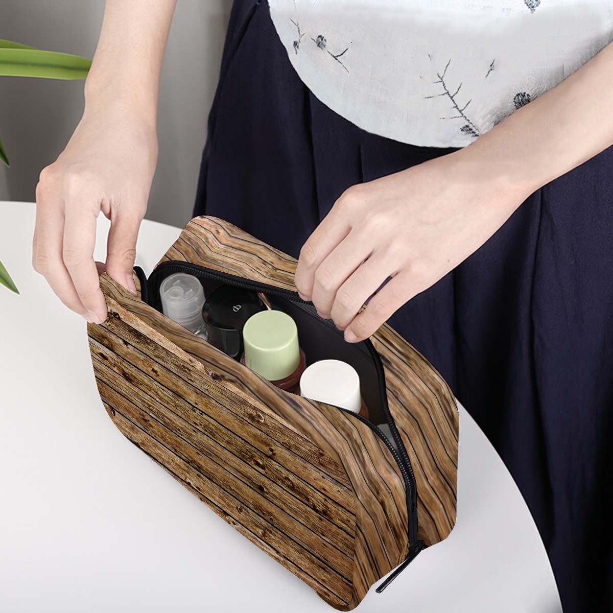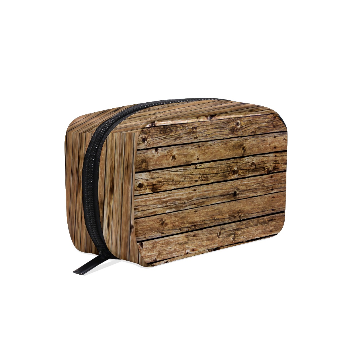 Cosmetic Bag for Women Girls Trave Makeup Bag Toiletry Case Pouch Accessories Organizer Retro Shabby Wood Board Brown