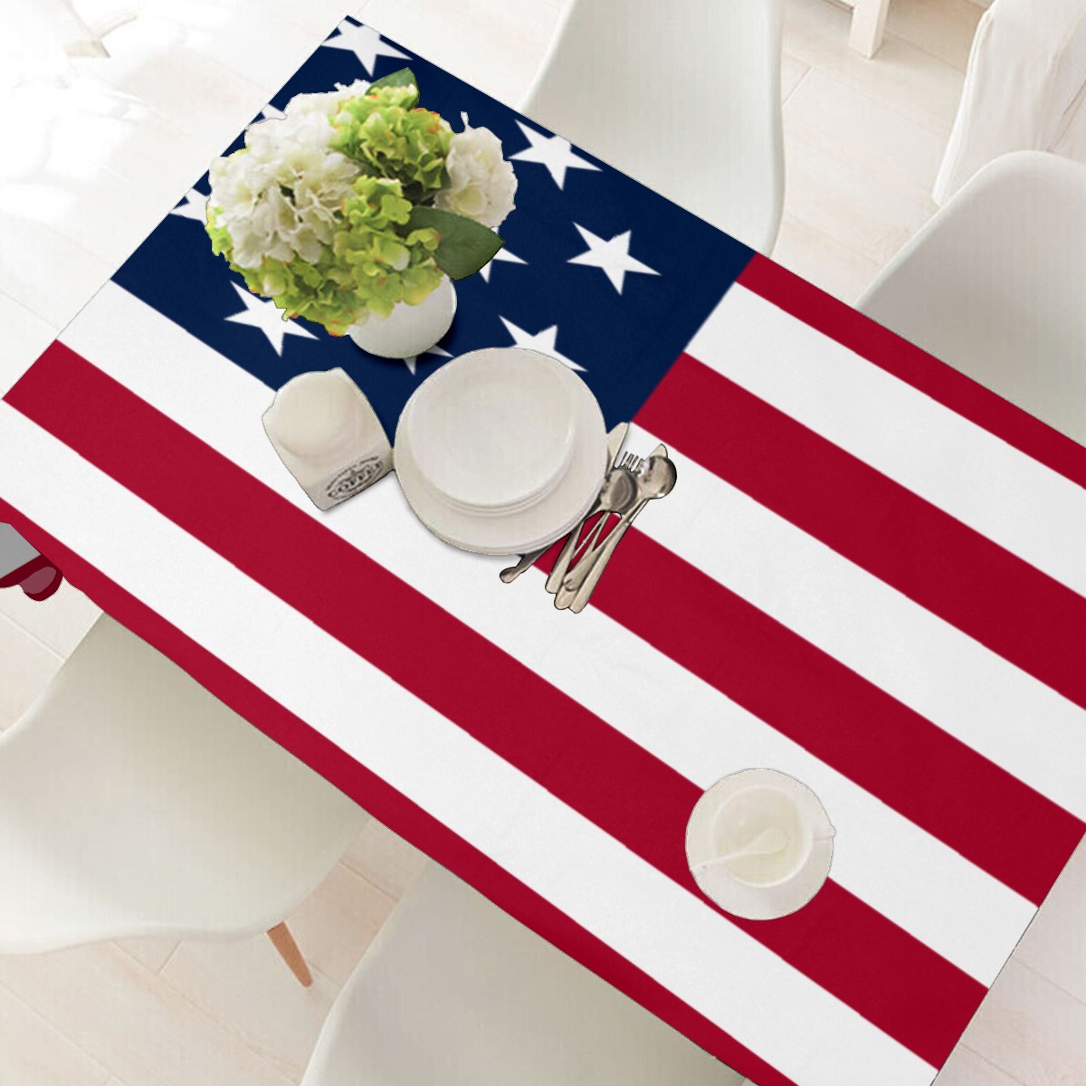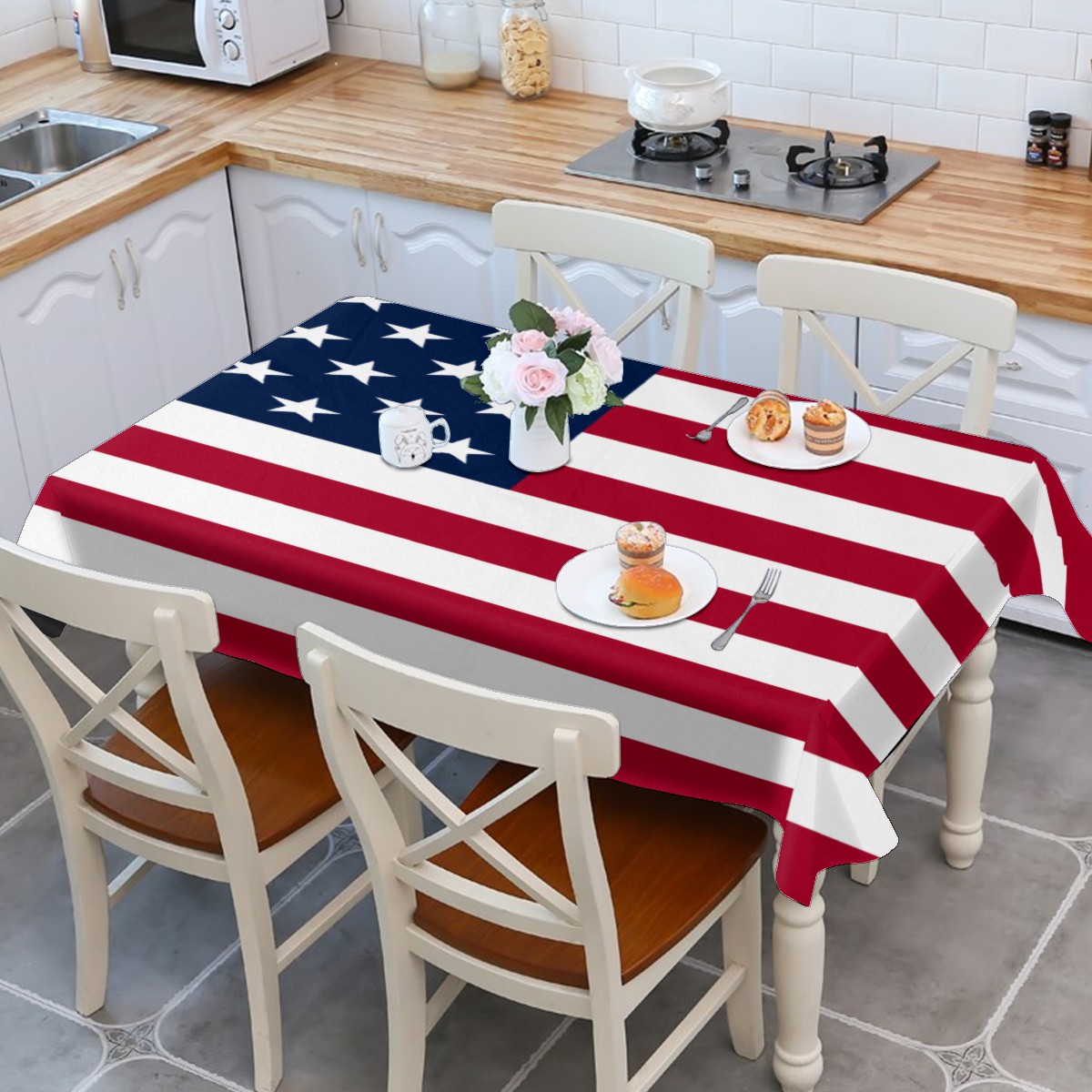 Rectangle Tablecloth USA American Flag Star Table Cloth 54x54in Table Cover for Kitchen Dining Table Party Home Decoration Washable Table Runner