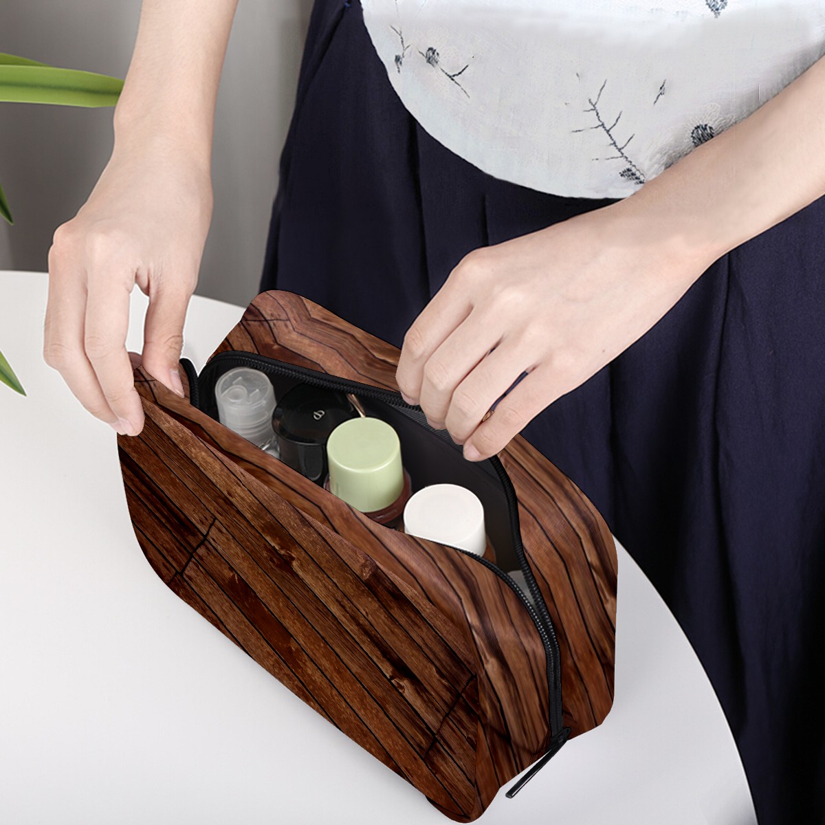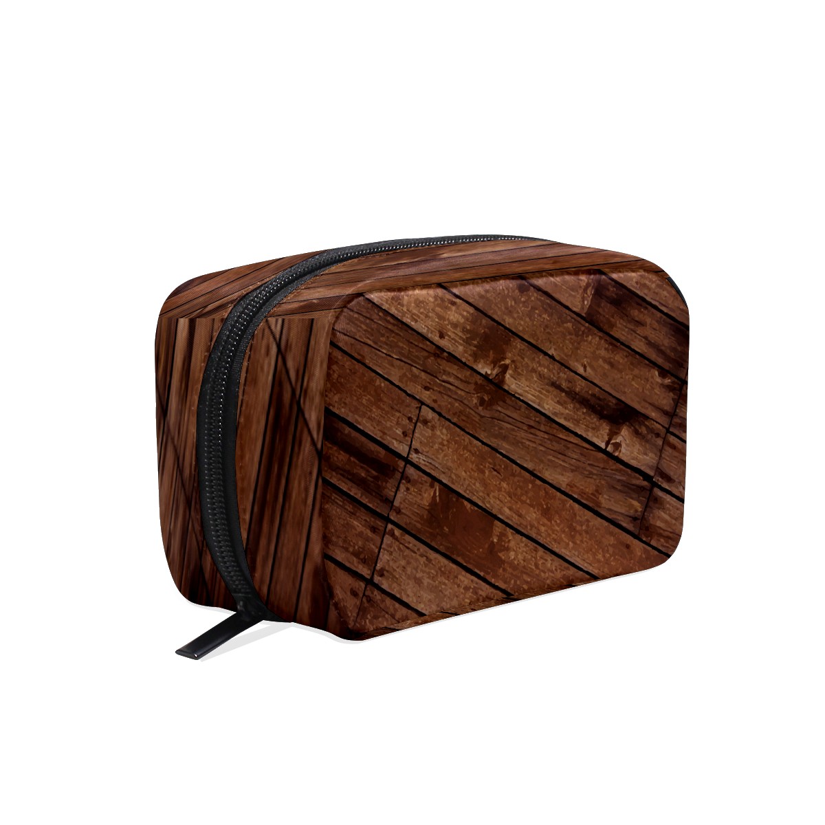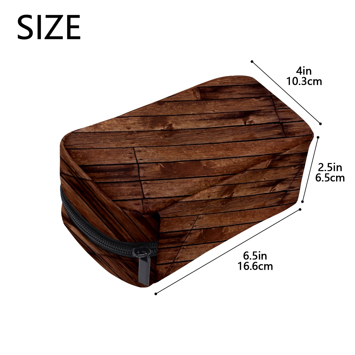 Cosmetic Bag for Women Girls Trave Makeup Bag Toiletry Case Pouch Accessories Organizer Retro Rustic Wooden Brown