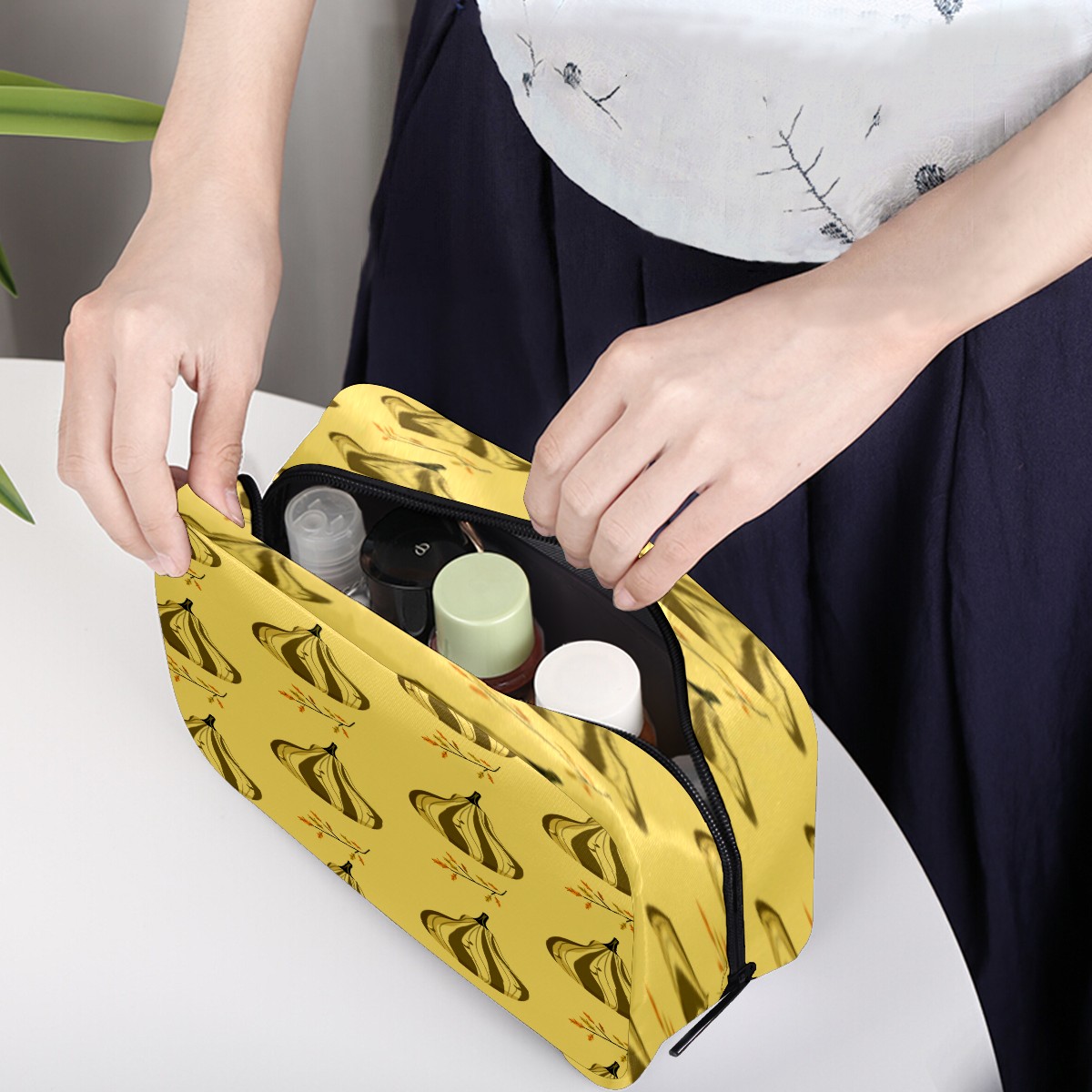 Cosmetic Bag for Women Girls Trave Makeup Bag Toiletry Case Pouch Accessories Organizer Retro Pears Fruit Yellow Pattern