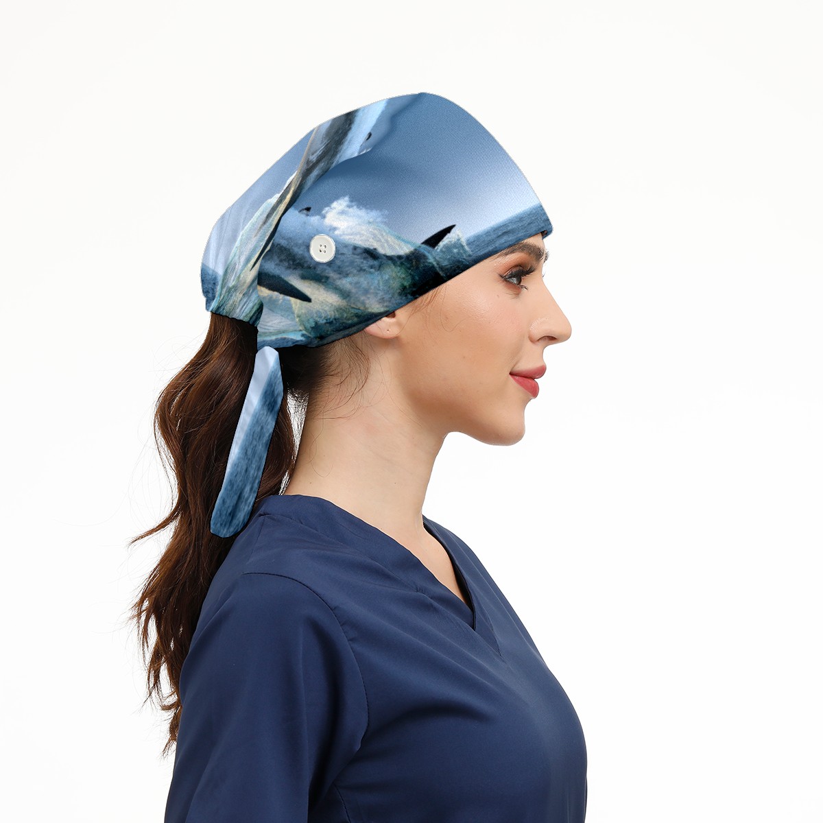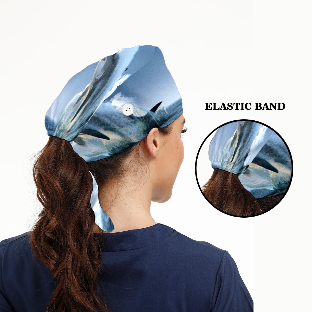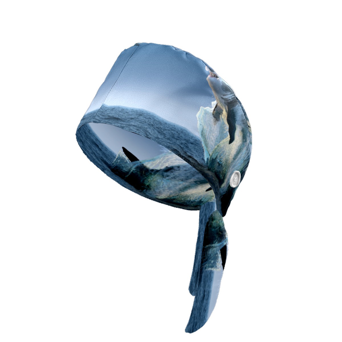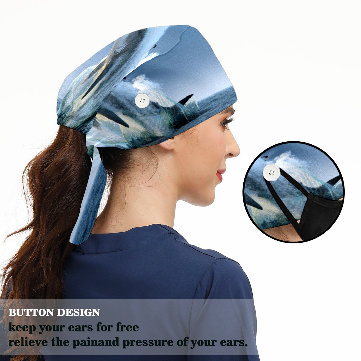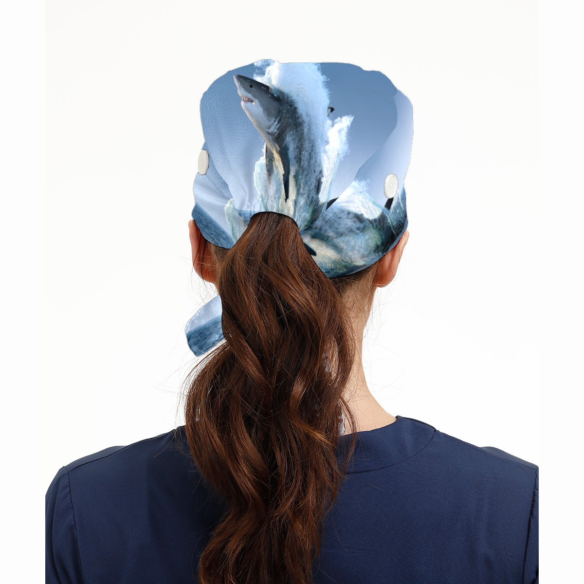 Shark Jumping Out Of Sea Working Cap Button and Sweatband Adjustable Elastic Head Cover Hair Tie Back Work Hats for Women Men