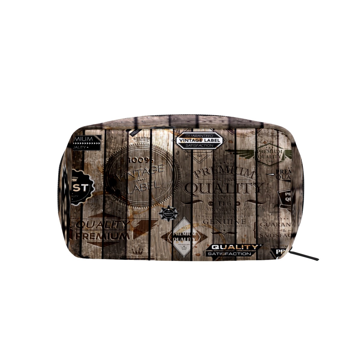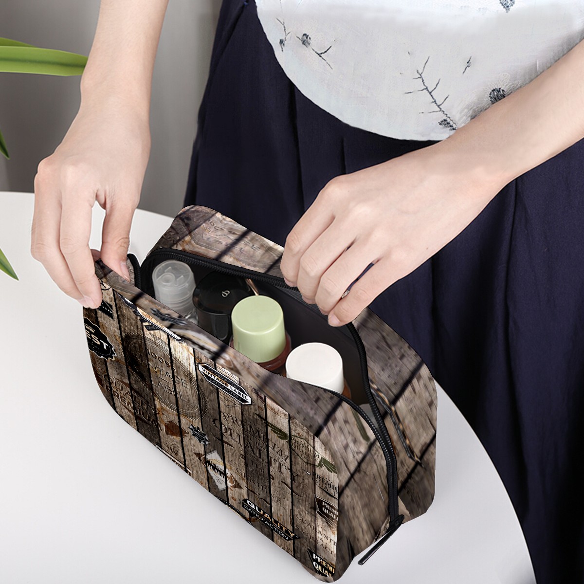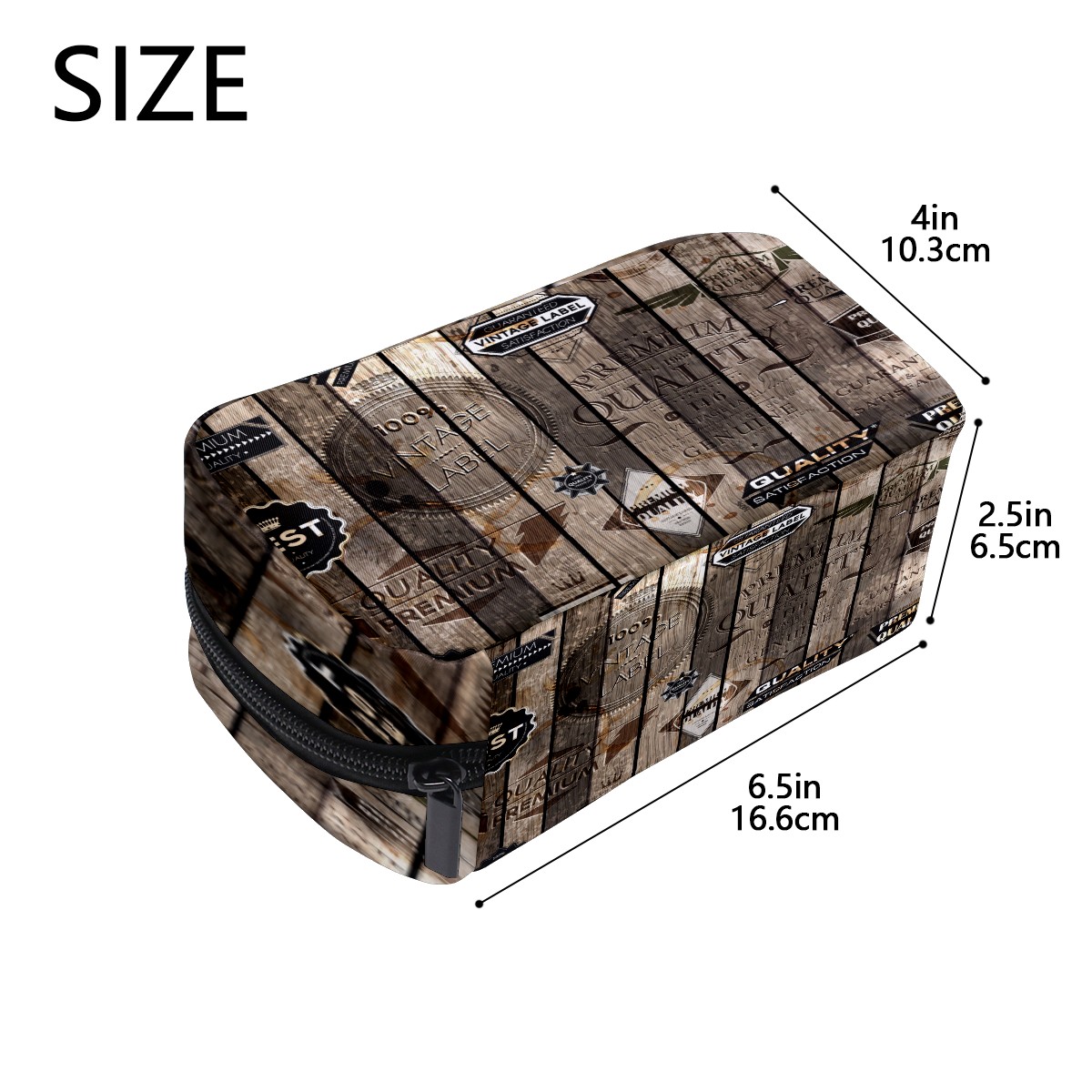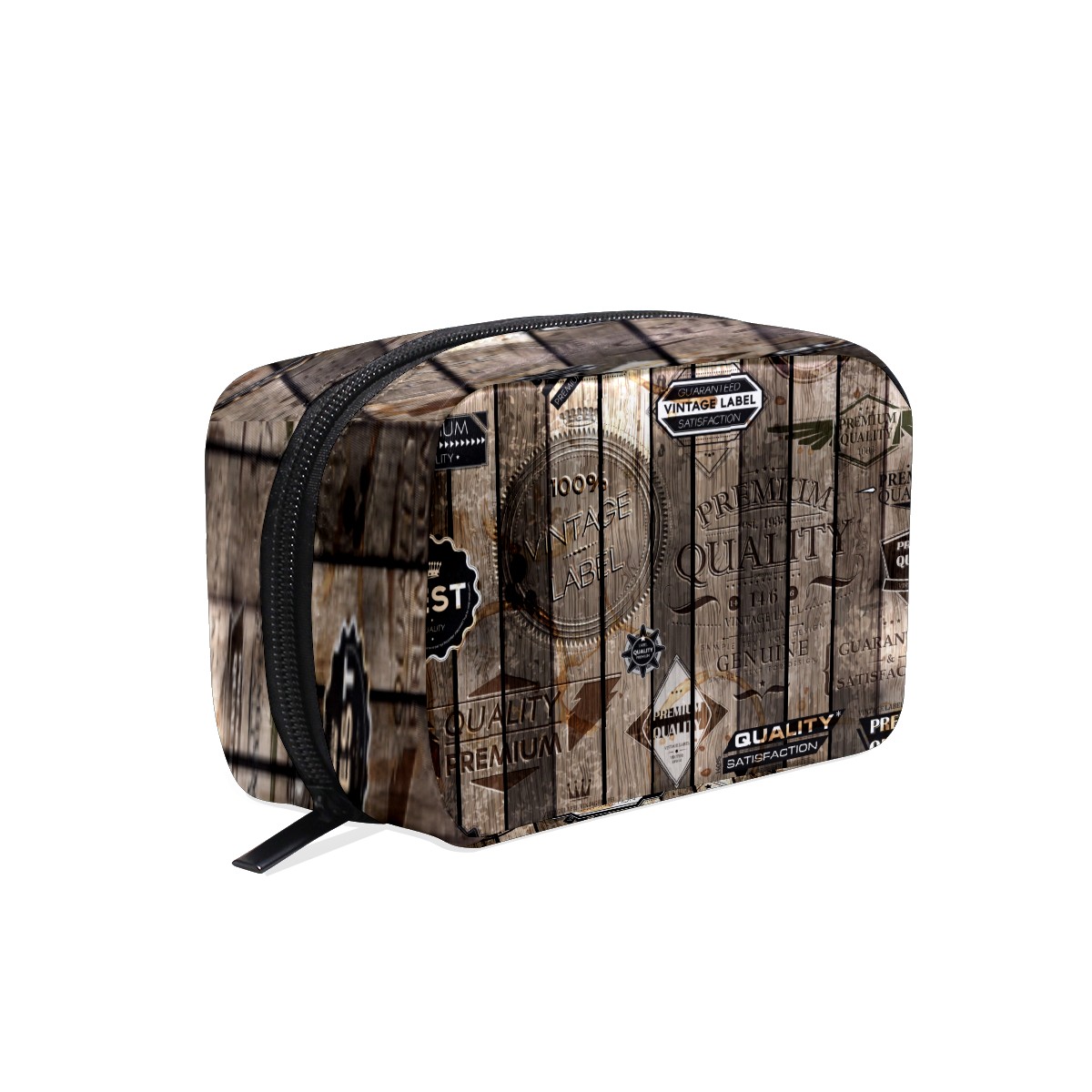 Cosmetic Bag for Women Girls Trave Makeup Bag Toiletry Case Pouch Accessories Organizer Retro Label Wood Board