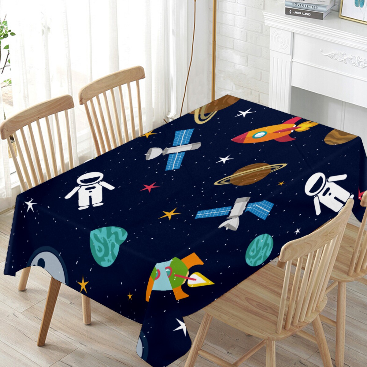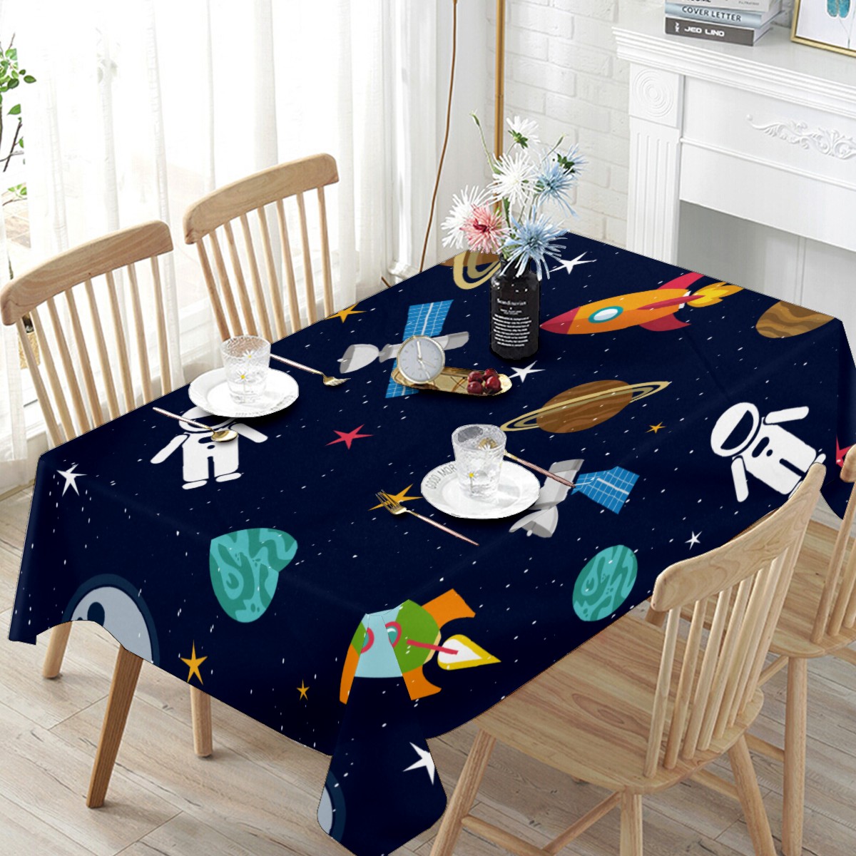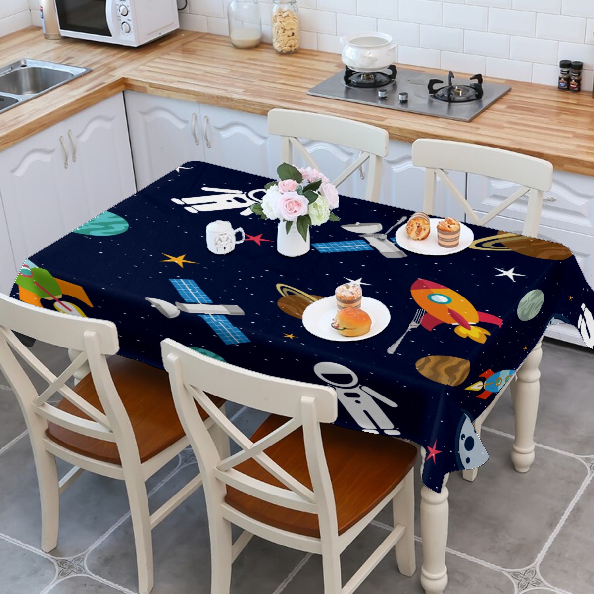 Rectangle Tablecloth Universe Planet Astronaut Rocket Cute Table Cloth 54x54in Table Cover for Kitchen Dining Table Party Home Decoration Washable Table Runner