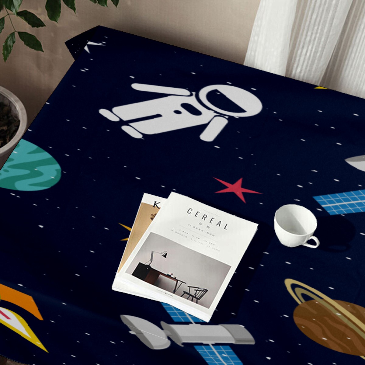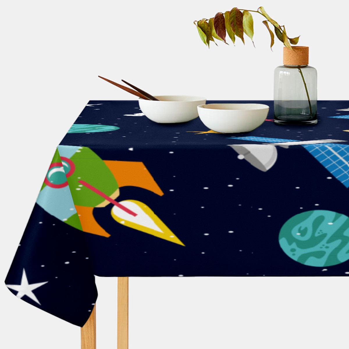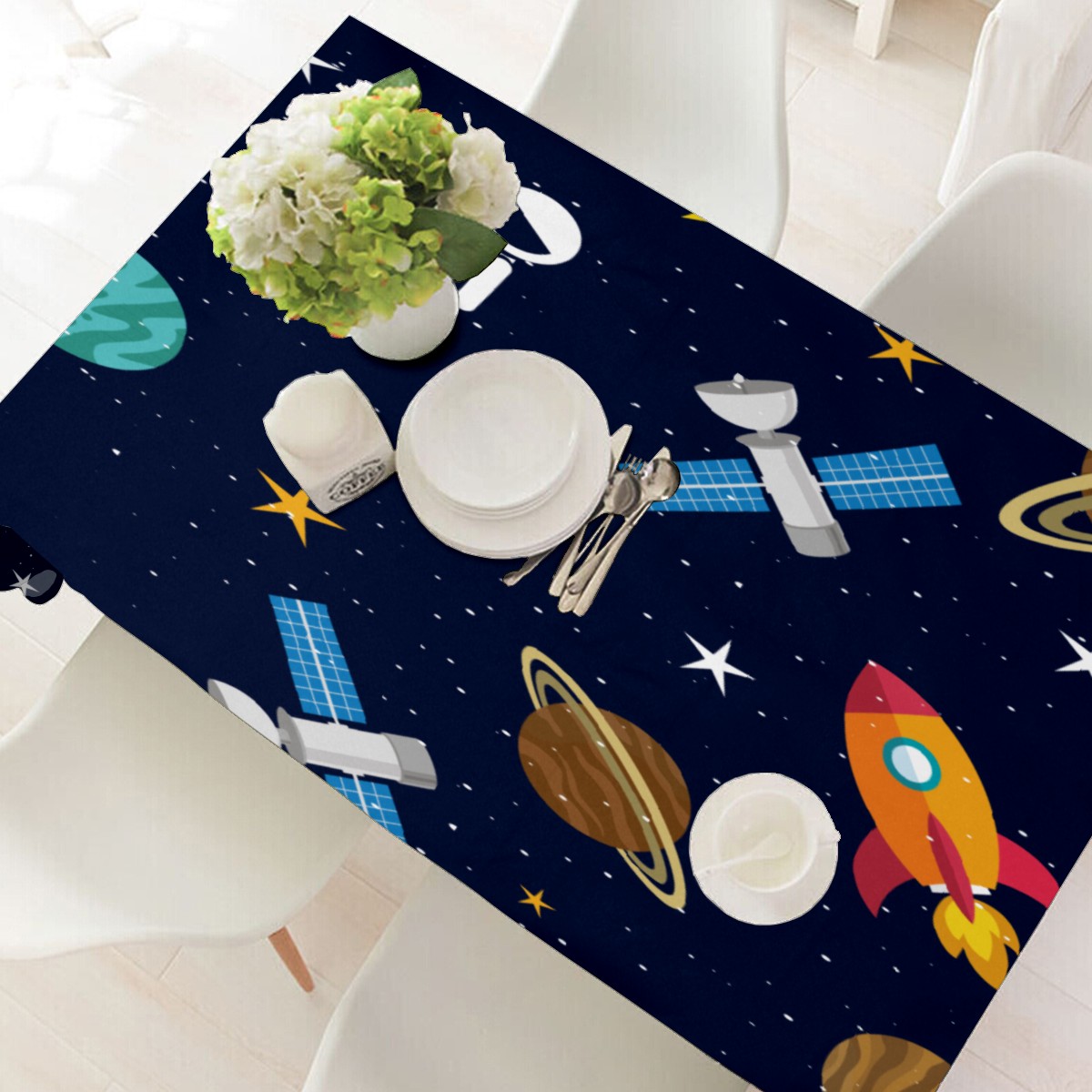 Rectangle Tablecloth Universe Planet Astronaut Rocket Cute Table Cloth 54x54in Table Cover for Kitchen Dining Table Party Home Decoration Washable Table Runner
