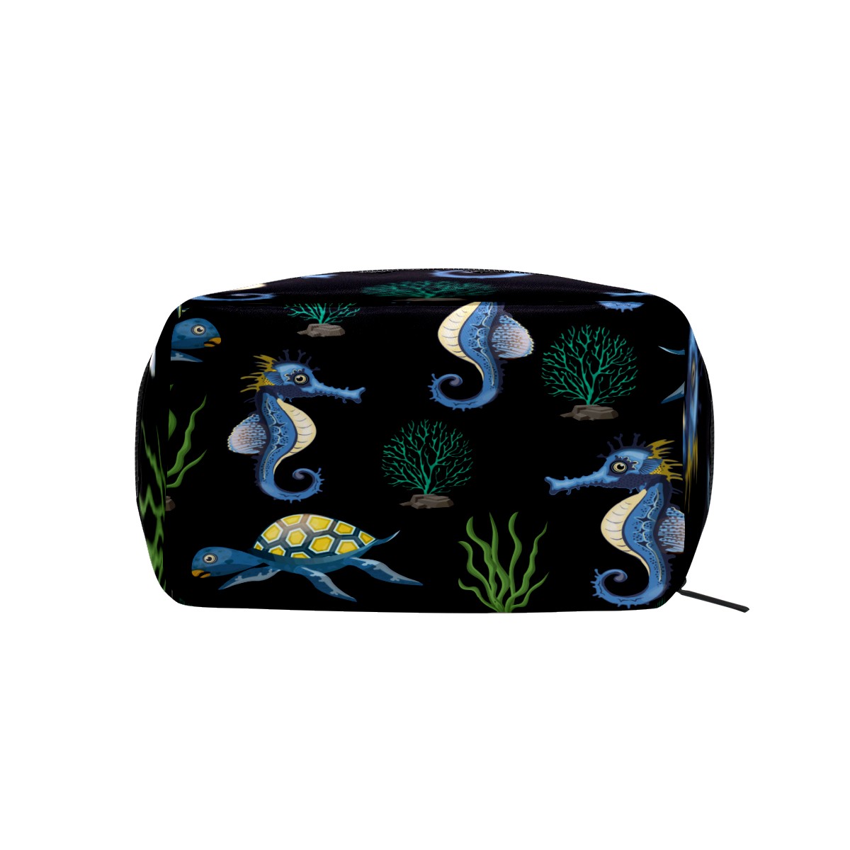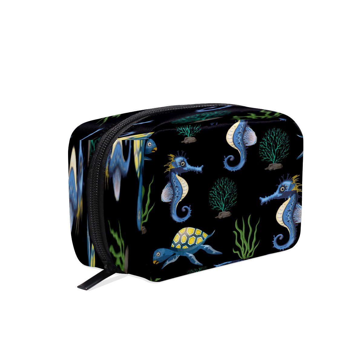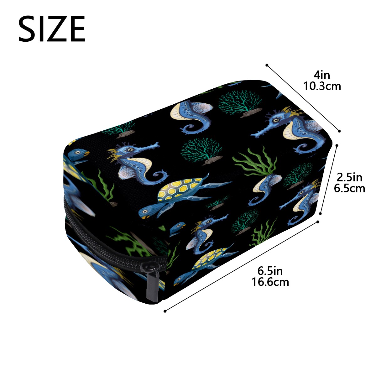 Cosmetic Bag for Women Girls Trave Makeup Bag Toiletry Case Pouch Accessories Organizer Retro Ocean Seahorse Turtle Seaweed