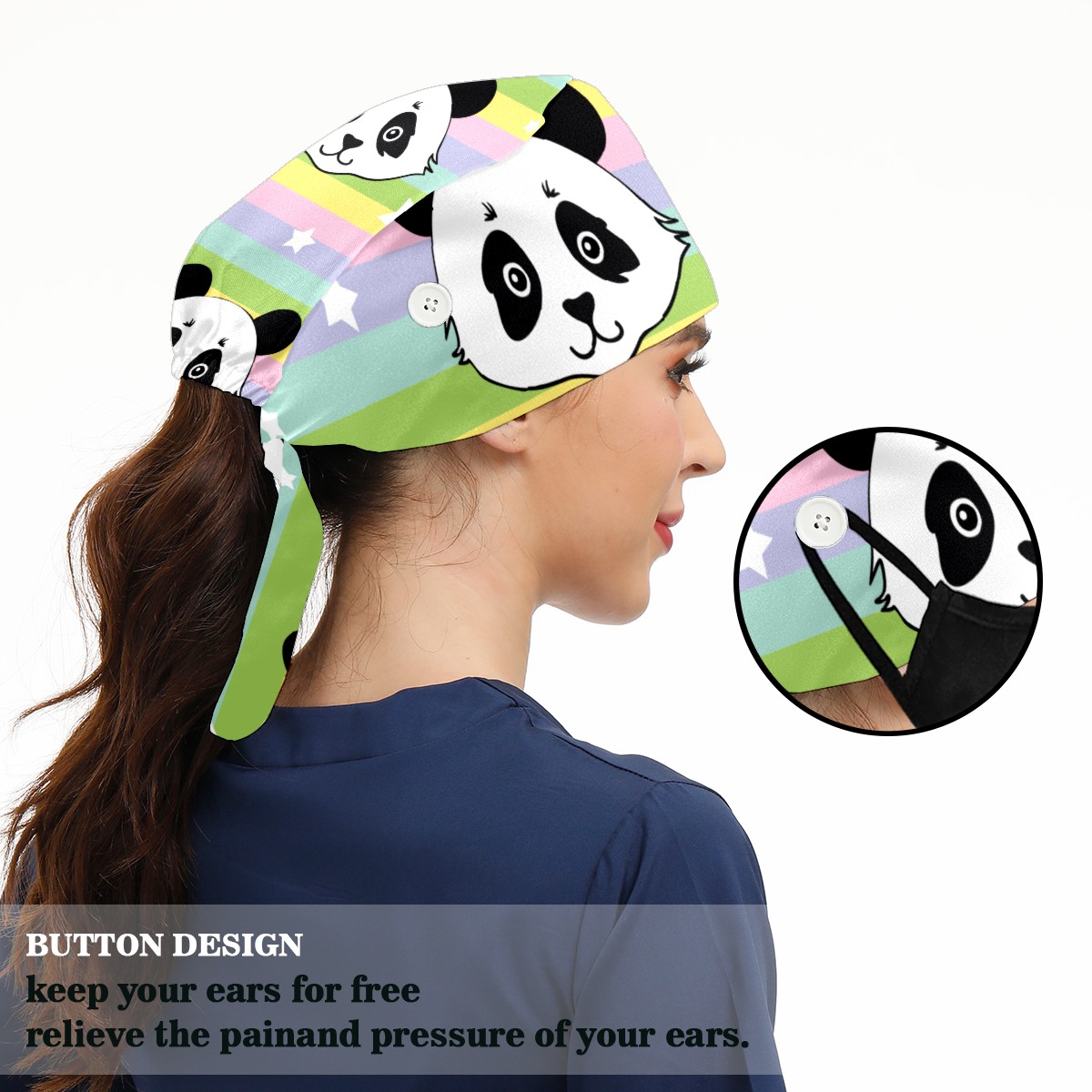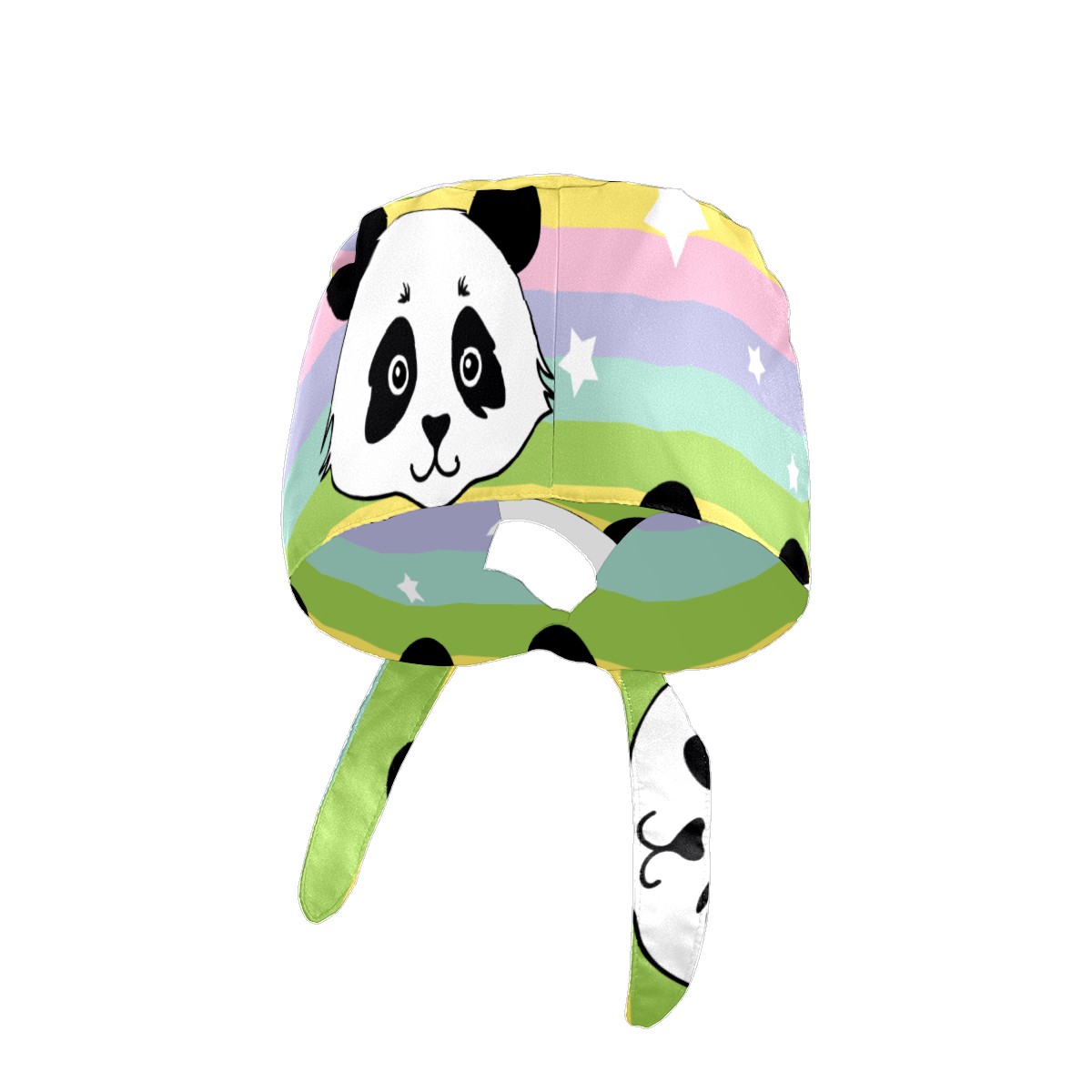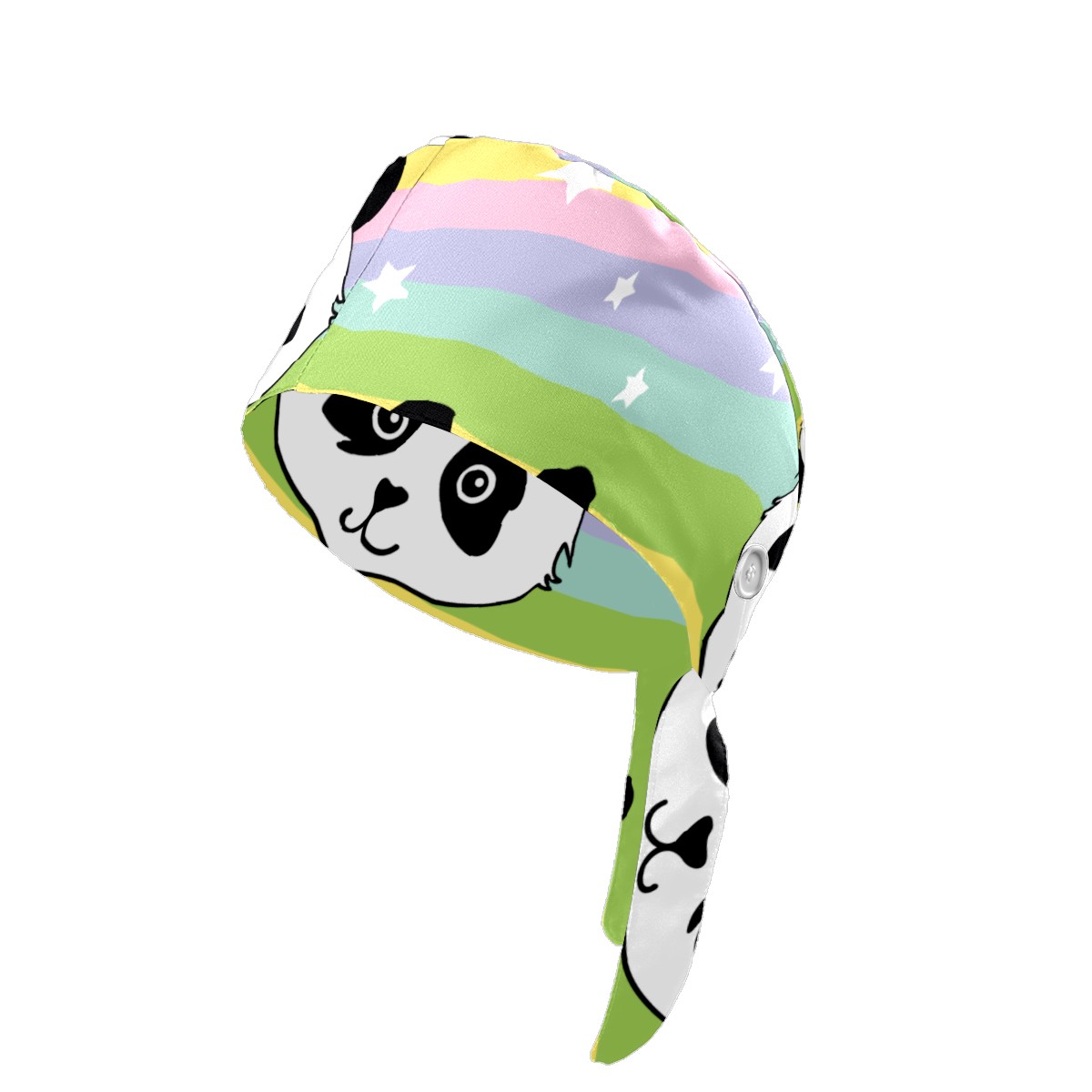 Colorful Rainbow Stripes Panda Stars Working Cap Button and Sweatband Adjustable Elastic Head Cover Hair Tie Back Work Hats for Women Men
