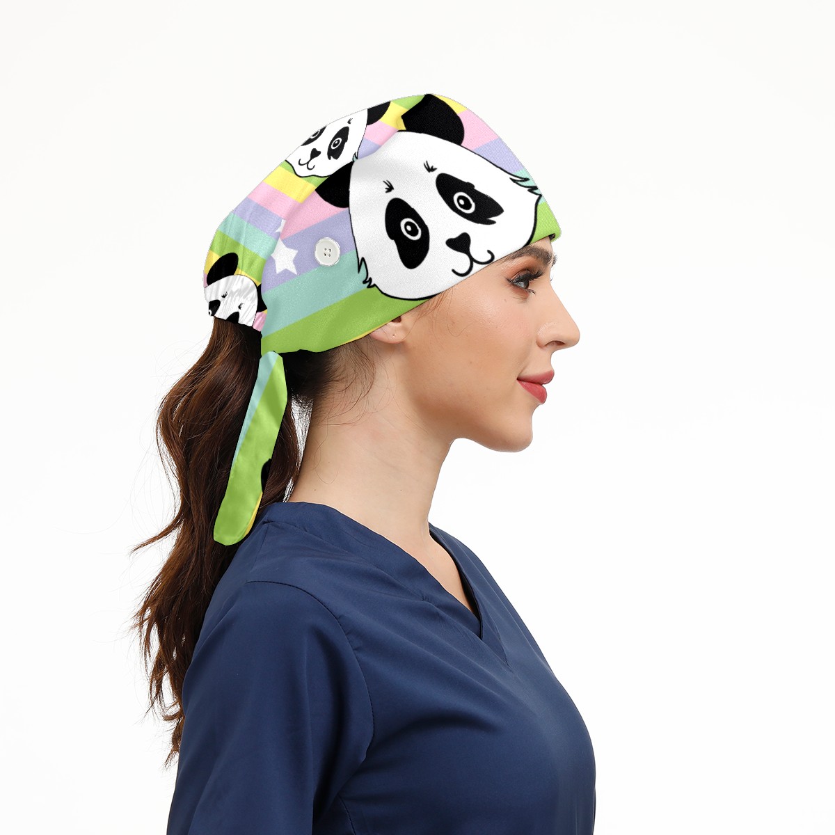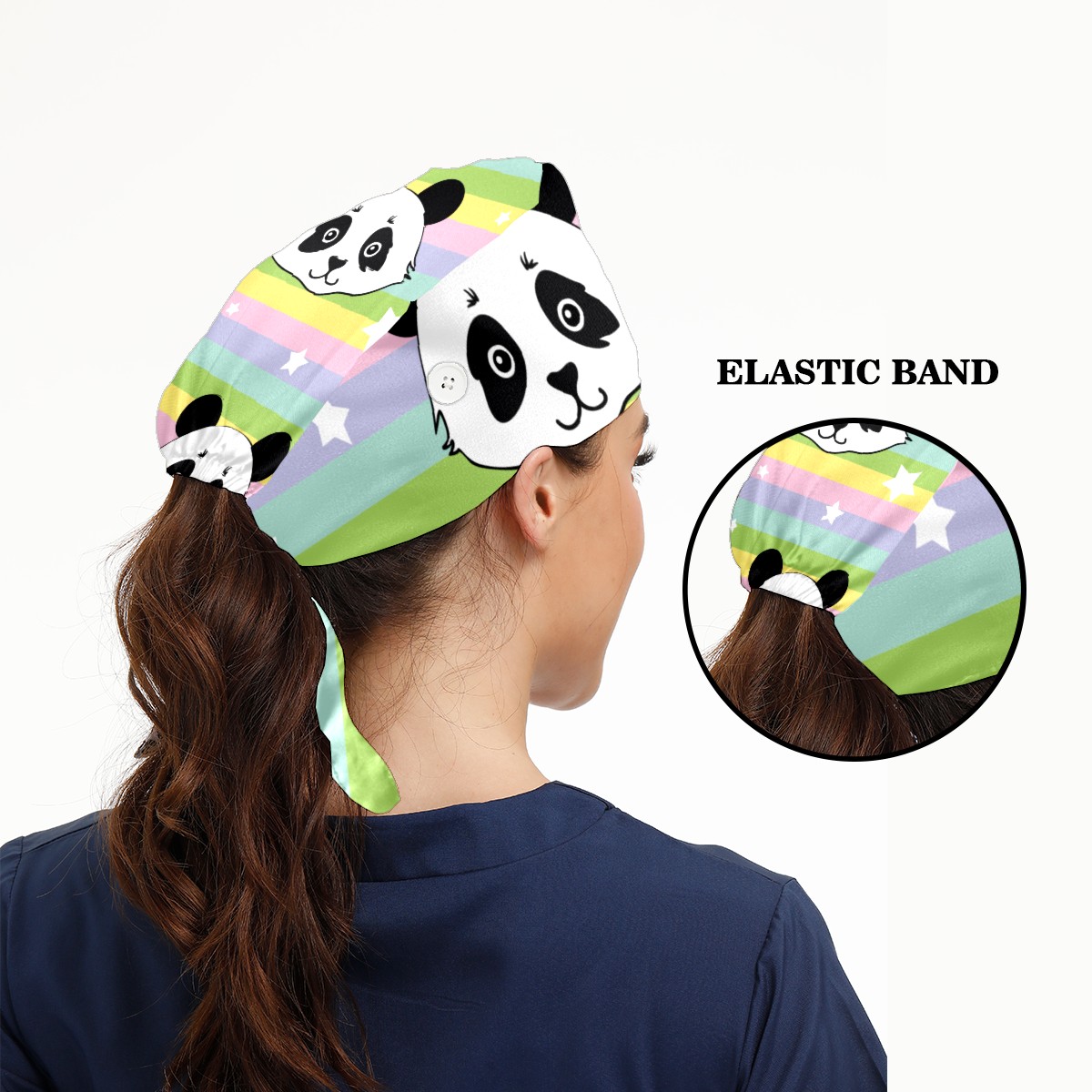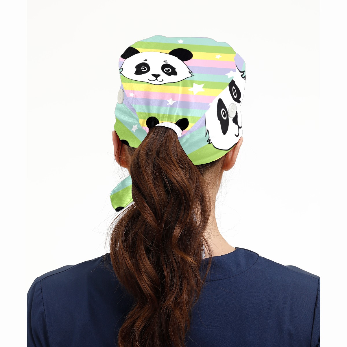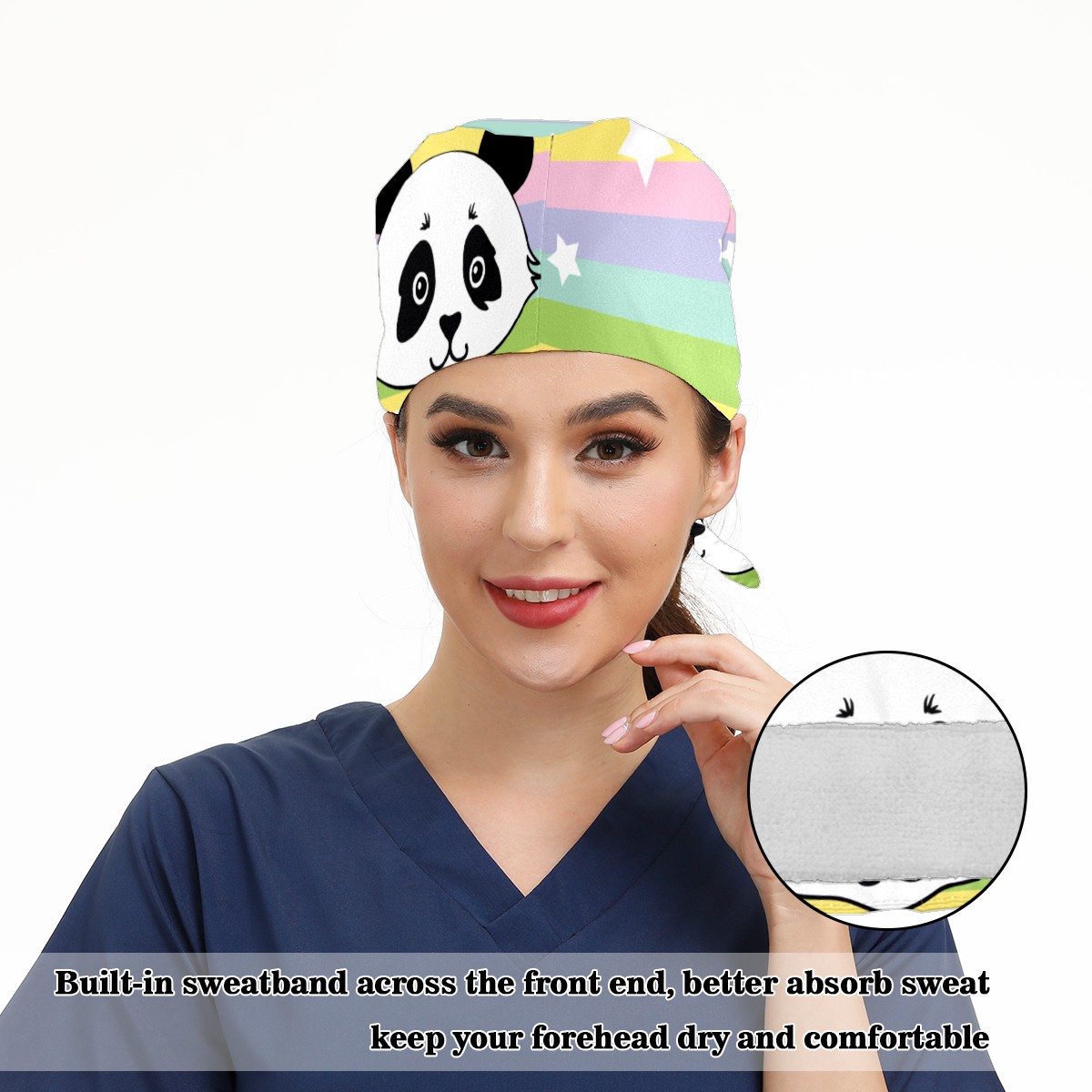Colorful Rainbow Stripes Panda Stars Working Cap Button and Sweatband Adjustable Elastic Head Cover Hair Tie Back Work Hats for Women Men