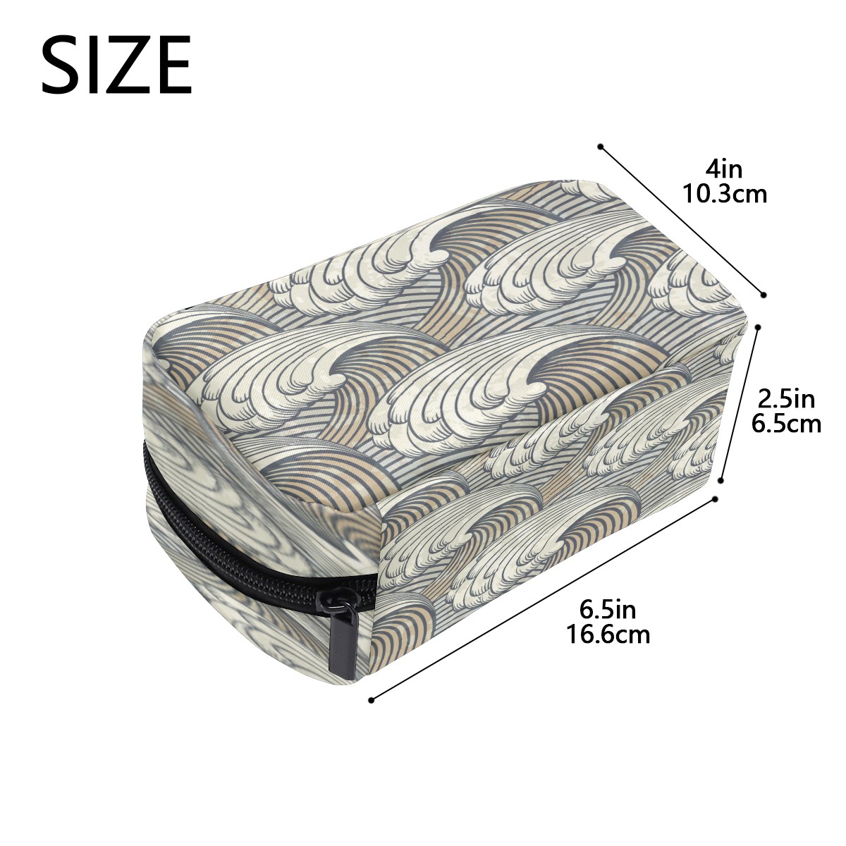 Cosmetic Bag for Women Girls Trave Makeup Bag Toiletry Case Pouch Accessories Organizer Retro Japanese Gray Wave Pattern