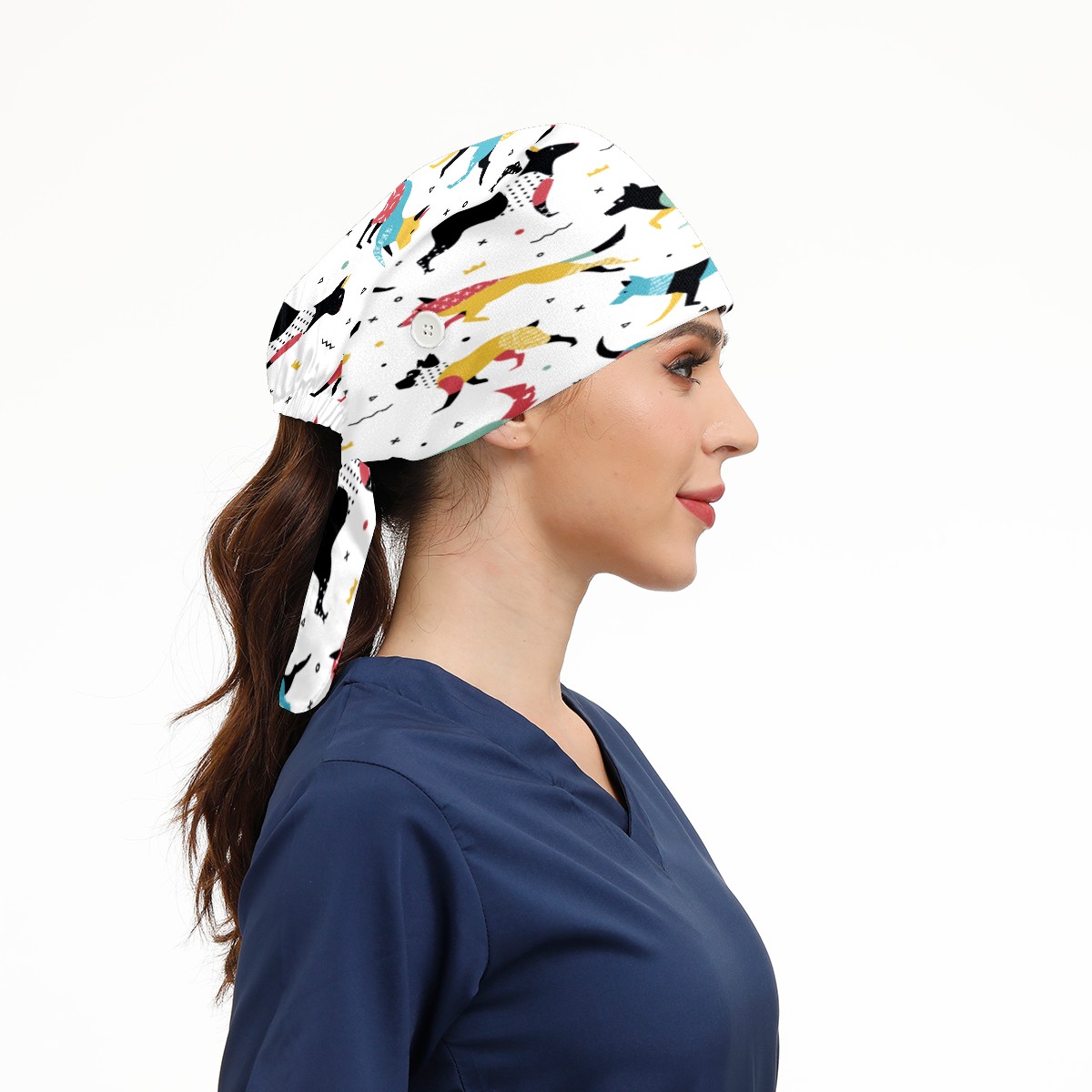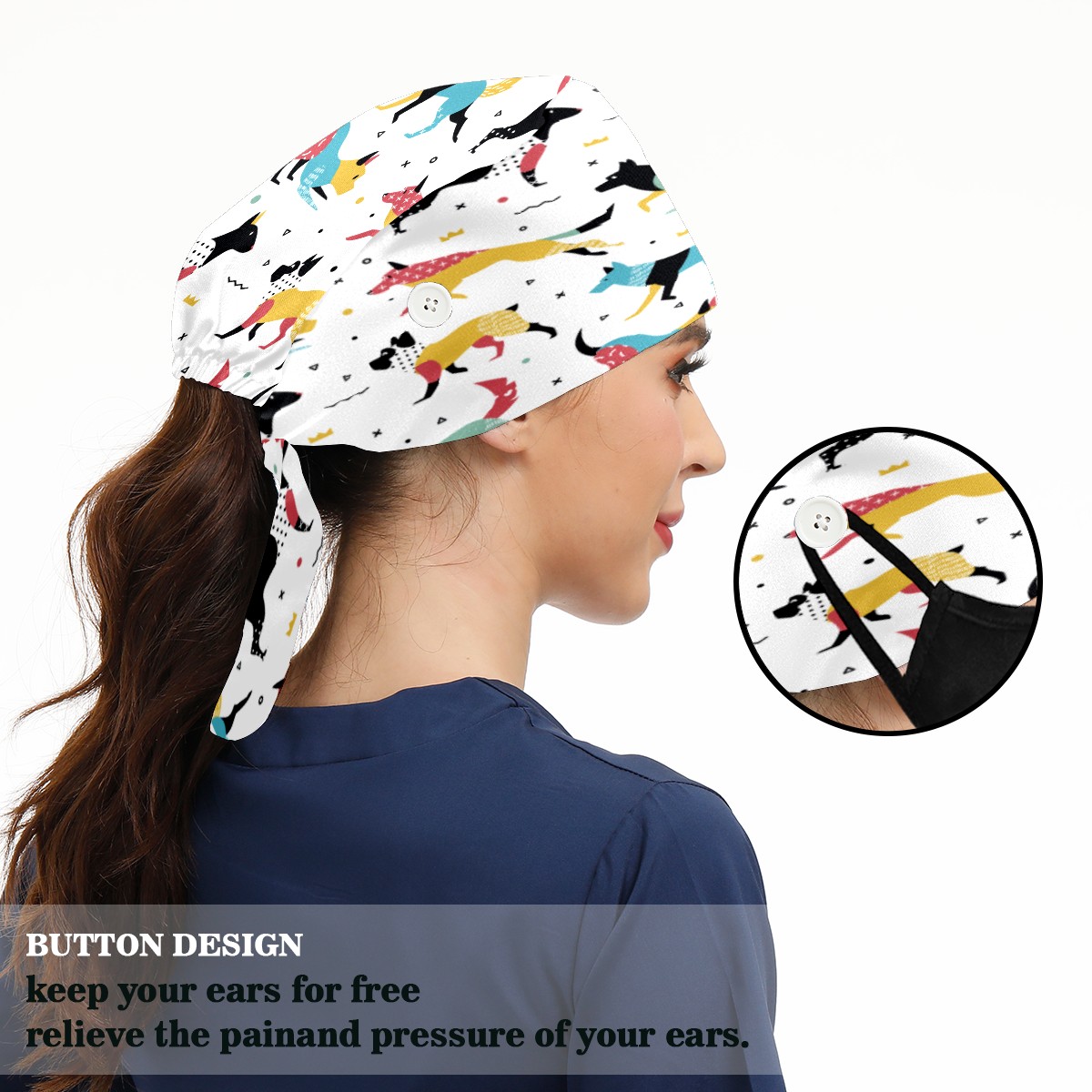 <p>Working cap with Sweatband and Button for Women Men</p><p>Material : 50% cotton+50% polyester</p><p>Size: One size fits most, suitable for both men and women.</p><p>Working Cap with Buttons Design:special design with buttons to protect ears for those who are wearing ma-sk. These new styles hats will allow you to put the straps around the buttons instead of your ears, make you feel more comfortable.</p><p>Sweat-absorbent towel cloth inside: Built-in 100% cotton sweatband, keep the forehead clean after long time working.</p><p>Widely occasion: Widely used in beauty spa, house cleaning, cooking, sleeping, or for cos-play party.</p><p>Lovely pattern: lovely 3D printed pattern, it's perfect for gift to you family and friends.</p>