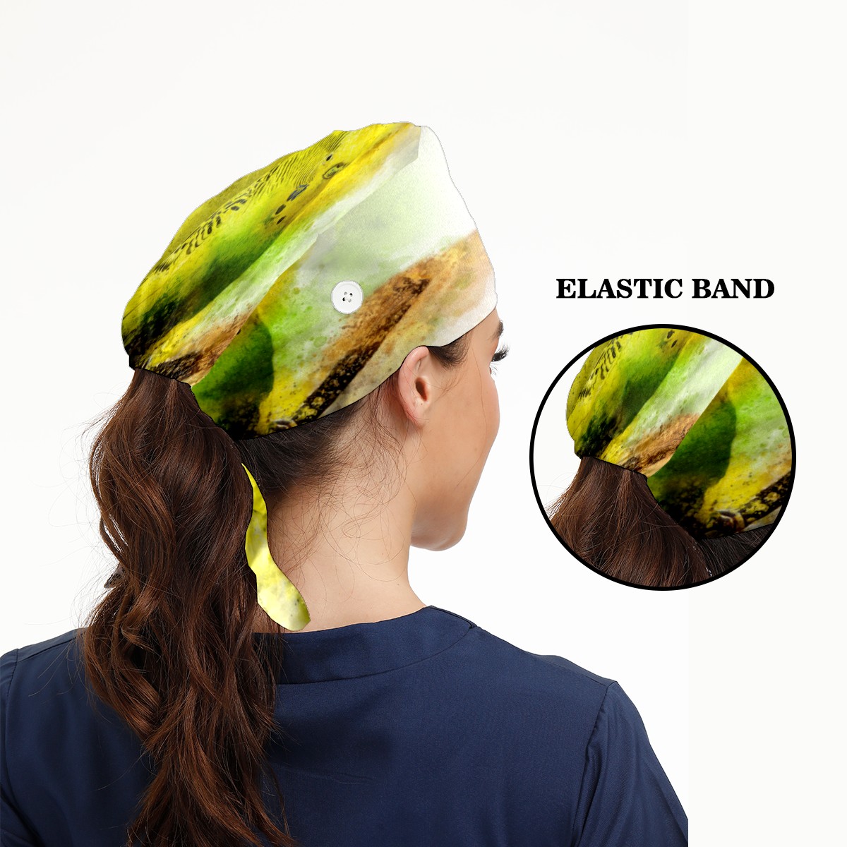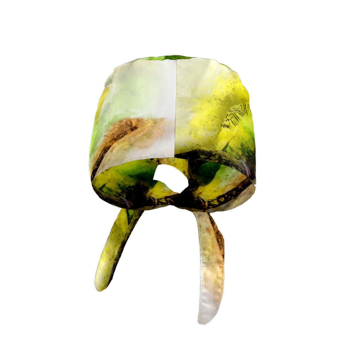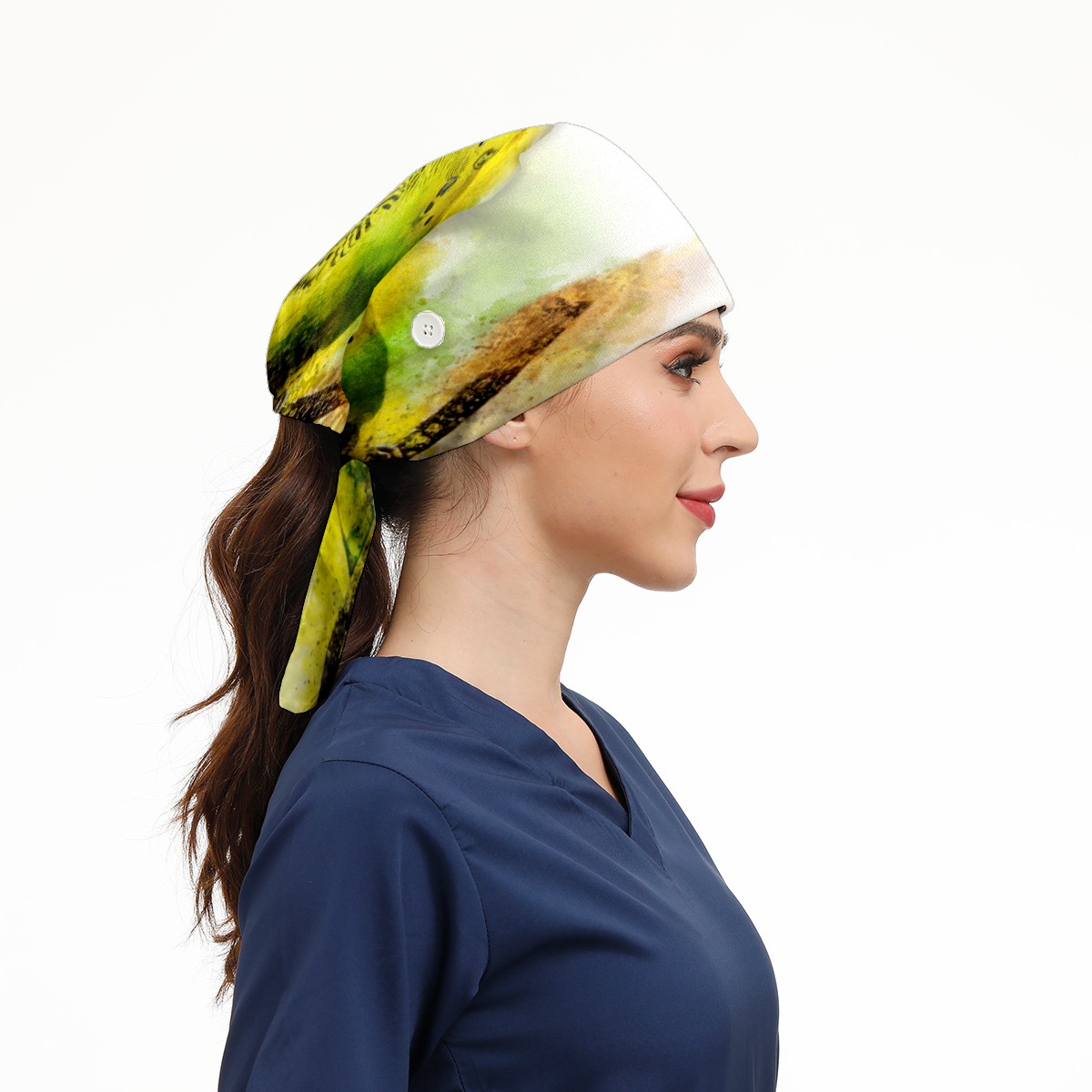 Yellow Watercolor Budgie Parrot Working Cap Button and Sweatband Adjustable Elastic Head Cover Hair Tie Back Work Hats for Women Men