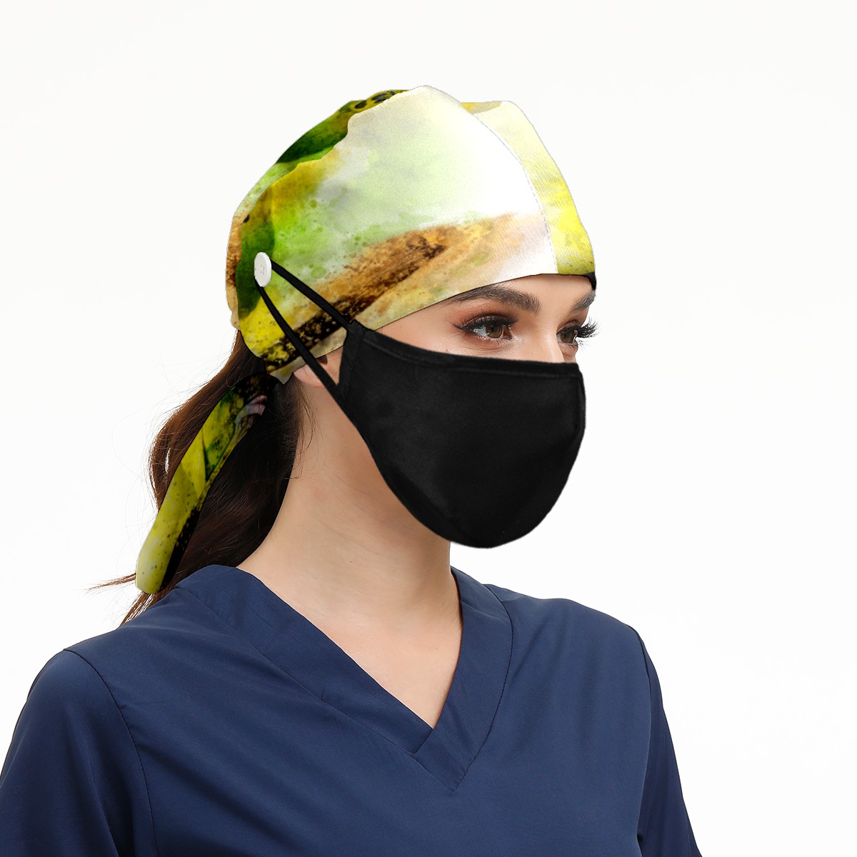 <p>Working cap with Sweatband and Button for Women Men</p><p>Material&nbsp;: 50% cotton+50% polyester</p><p>Size:&nbsp;One size fits most,&nbsp;suitable for both men and women.</p><p>Working Cap with Buttons Design:special&nbsp;design with buttons to protect ears for those who are wearing ma-sk. These new styles hats will allow you to put the straps around the buttons instead of your ears, make you feel more comfortable.</p><p>Sweat-absorbent towel cloth inside: Built-in&nbsp;100% cotton sweatband, keep the forehead clean after long time working.</p><p>Widely occasion: Widely used in beauty spa, house cleaning, cooking, sleeping, or for cos-play&nbsp;party.</p><p>Lovely pattern: lovely&nbsp;3D printed&nbsp;pattern,&nbsp;it's perfect for gift to you family&nbsp;and friends.</p>